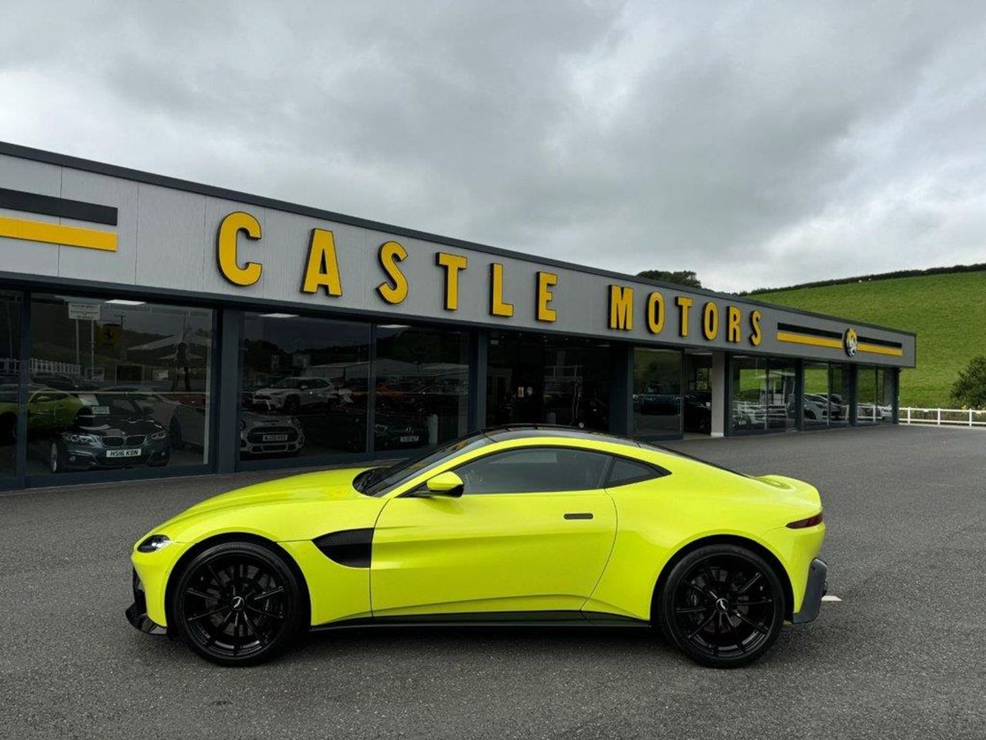 Metallic Lime Essence Paintwork with Alcantara Suede and Leather interior, very high specification Vantage with Quiksilver switchable sports exhaust in Black finish, Gloss Black exterior package, 20 inch Wheels in Black with matching Aston Martin branded calipers, Black roof, Black Satin side grills, Carbon Flash handles, Lime Essence interior finish, Heated and electric memory adjustable seats, 360 degree surround view cameras, Navigation, Vantage embroidered seats, Alcantara Dashboard and headlining, comfort entry, Tech Pack, Premium Audio, Comfort Pack, Glass switches, Sports seats, Tracker and much more. Only 22,500 miles from new with Aston Martin service history, previously supplied & freshly serviced before sale by ourselves. Beautiful condition throughout All of our vehicles are ready for same day drive away. CASTLE MOTORS purpose-built showroom & forecourt has a wide range of cars for sale, including some of the world's most prestigious automobiles. Founded in 1972, we are open 7 days a week. All of our vehicles are presented to the very highest standards possible having gone through our own comprehensive multi-stage preparation. Supplied finance figures are only a guide. Every effort has been made to ensure the accuracy of the above info but errors can occur please check with our sales team. . 20in Alloy Wheels - Vantage - Y Spoke - Silver,ABS - Anti Lock Braking System,ADS - Adaptive Damping System,Airbag - Dual-Stage Driver,Airbag - Dual-Stage Front Passenger,Alarm and Immobiliser,Auto Parking,Automatic Temperature Control with Dual Zone Climate Control,Base Floor Mats,Blind Spot Monitoring,Bonnet Vents - None,Boot Carpet - Obsidian Black,Brake Calipers - Dark Anodised,Cabin Carpet - Primary,Carpet Sill,Centre Console Open Stowage,Decklid Insert - Exterior Body Colour,Door Mirror Caps - Exterior Body Coloured,Door Mirrors - Heated and Electrically Retractable,DSC - Dynamic Stability Control,DTV - Dynamic Torque Vectoring,EBA - Emergency Brake Assist,EBD - Electronic Brakeforce Distribution,Electric 8-way Adjustable Seats,Electric Parking Brake,Electric Power Assisted Steering,Electric Steering Column Adjustment and Cruise Control,Electrically Controlled Exhaust,Electronic Differential - E-Diff,Enamel Wing Badges,Exhaust Tailpipes - Quad - Matte Black,Exterior Body Pack - Graphite,Exterior Door Ha