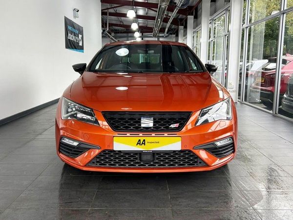 12V Power Supply in Centre Console, 19in Alloy Wheels - CUPRA Machined, 7 Airbags, ABS - Anti-Lock Braking System - TCS - Traction Control System, Active Front Head Restraints and 3 Rear Head Restraints, Black Interior Roof Lining, Body-Coloured Door Handles, Boot Storage Net, Brake Callipers - Red with Cupra Logo, Bumpers - Exclusive Cupra Front and Rear, CUPRA Performance Interface, Cargo Rings in the Boot, Convenience Pack Plus, Cruise Control, DCC - Dynamic Chassis Control, Dark Tinted Rear Windows, Digital Cockpit, Driver and Passenger Seat Height Adjustment, Driver and Passenger Sunvisor with Covered and Illuminated Mirrors, Drivers Seat Lumbar Adjustment, Dual Zone Climate Control, ESC - Electronic Stability Control and Tyre Pressure Warning Light Indicator, ESC Switch-Off Key, Electric Parking Brake Including Autohold Function, Electrically Folding Door Mirrors, Electro-Mechanical Progressive Power Steering, Flat Bottomed-Perforated Leather Steering Wheel with White Stitching and CUPRA Logo, Front Assist with City Emergency Braking, Front Parking Sensors, Front Seat Back Storage Pockets, Front Sports Seats, Front and Rear Electric Windows, Fuel Filler Flap linked to Central Locking, Full LED Headlights, Gearshift Indicator, Gloss Black Door Mirrors with Integrated LED Indicators, Gloss Black Interior Detailing, Head Restraints - Height Adjustable Front, High Centre Console, High Gloss Black B and C Pillars, Hill Hold Control, ISOFIX Points in Outer Rear Seats with Top Tether Anchorage Points, Illuminated Aluminium Front Door Sill with CUPRA Logo, Instrument Lighting with Brightness Control, LED Front Fog Lights, LED Interior Illumination Pack, Lights Left On Warning Buzzer, Low Fuel Warning Light, Lower Suspension - 15mm, Mechanical Limited Slip Differential, Media System Plus, Multi Coloured Ambient Lighting, Multi-Collision Braking System, Navigation System, Outside Temperature Gauge, Pedals in Aluminium, RPM Counter, Radiator Grille Frame in Glossy Black, Radiator Grille in Black, Rear Parking Sensors, Remote Central Locking with Deadlocks, SEAT Drive Profile, SEAT Full Link Smartphone Integration - Mirror Link - Apple CarPlay - Google Android Auto, Seatbelt Reminder - Front, Seats - Passenger Lumbar Adjustment, Space-Saving Spare Wheel, Split Folding Rear Seats 60-40 with Armrest, Steering Wheel-Mounted Gearshift Paddles, Storage Box Under Driver and Front Passenger Seat, Trip Computer, Two Remote Keys with Window Open-Close - Door Mirror Folding and Boot Opening Functionality, Visual Dual Exhaust Pipes