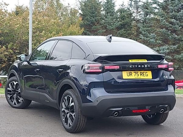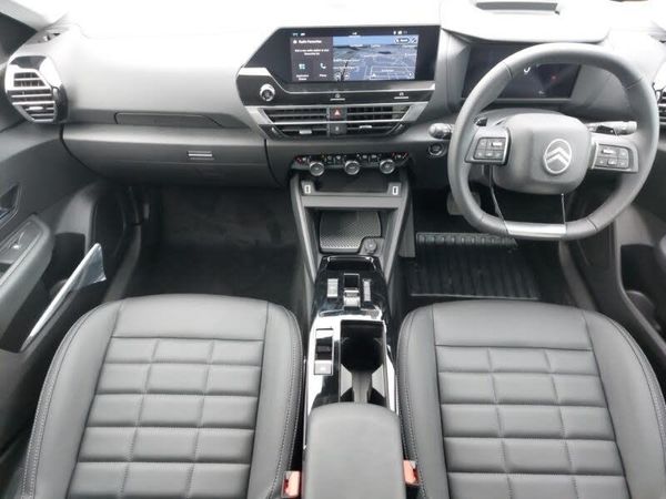 My Citroen Drive Plus: 10" high-resolution touchscreen user interface, controlling media, connectivity, vehicle settings + connected nav, Apple car play and Android auto, Electrically heated front seats, Dual zone automatic air conditioning, Active blind spot detection, 7 inch backlit full TFT driver's instrument cluster, Driver's colour head up display, 18" Bi-tone diamond cut Amber alloy wheels orbital black and Aluminium with anti-theft locking wheel nuts, Front, rear, lateral parking aid plus, LED front headlamps, Rain sensing automatic front windscreen wipers, Heated steering wheel, Keyless entry and start, DAB Digital radio, Bluetooth telephone and audio streaming, Advanced comfort suspension - double hydraulic stops on front and rear suspension, High level acoustic insulation pack - C4/C4 X/e-C4 X, Safety pack plus - C4/C-Series Edition/Max, Electrically heated, folding and adjustable external rear view mirrors with courtesy lighting, Electrochrome interior rear-view mirror with automatic day-night switching, Tinted front side windows, dark tinted rear side, rear quarter and tailgate windows with matt black detail, Hill start assist, Electric parking brake, Tyre underinflation detection