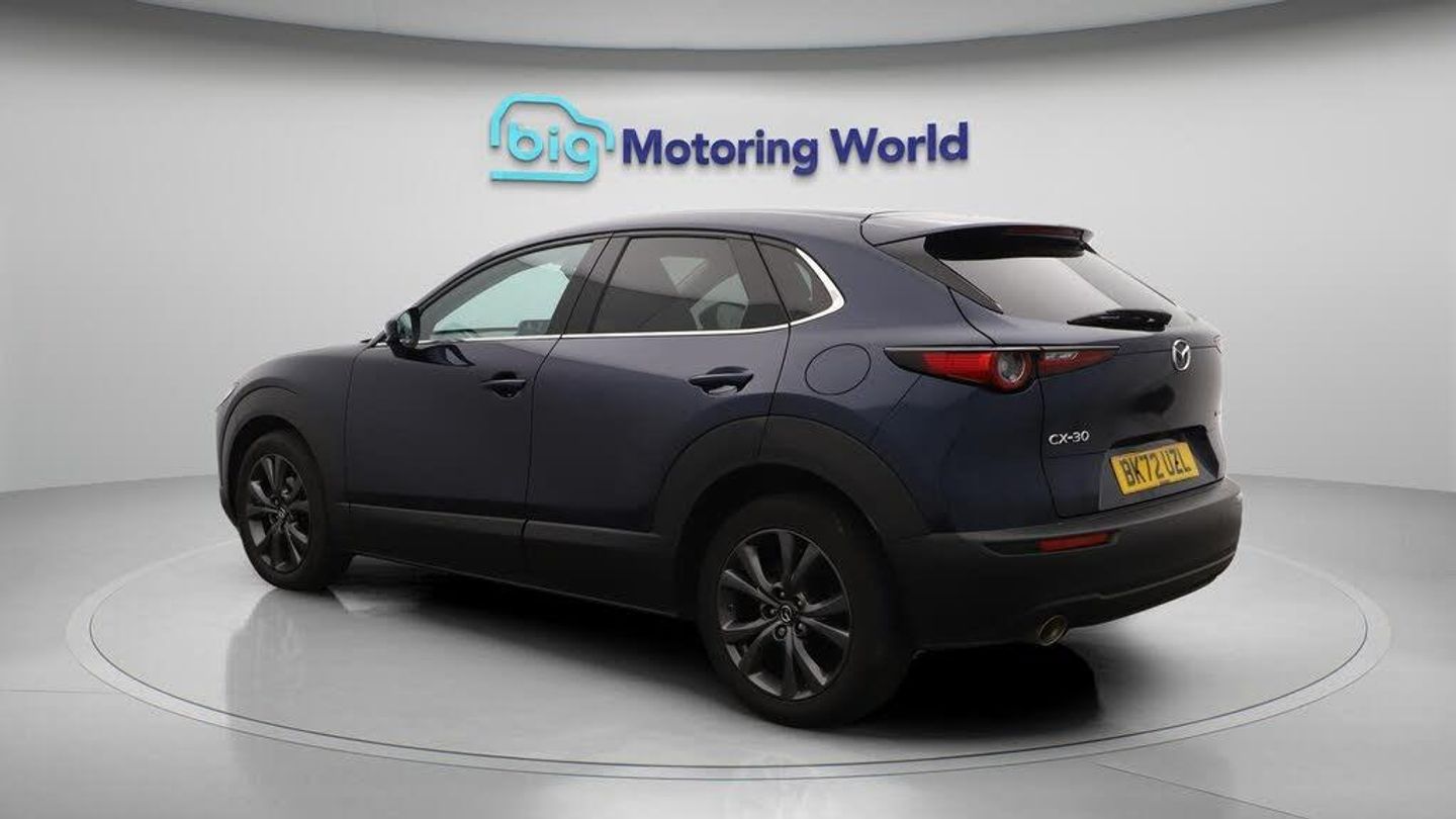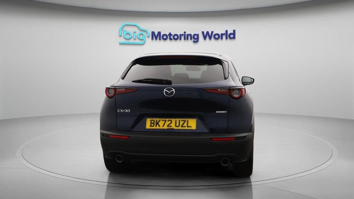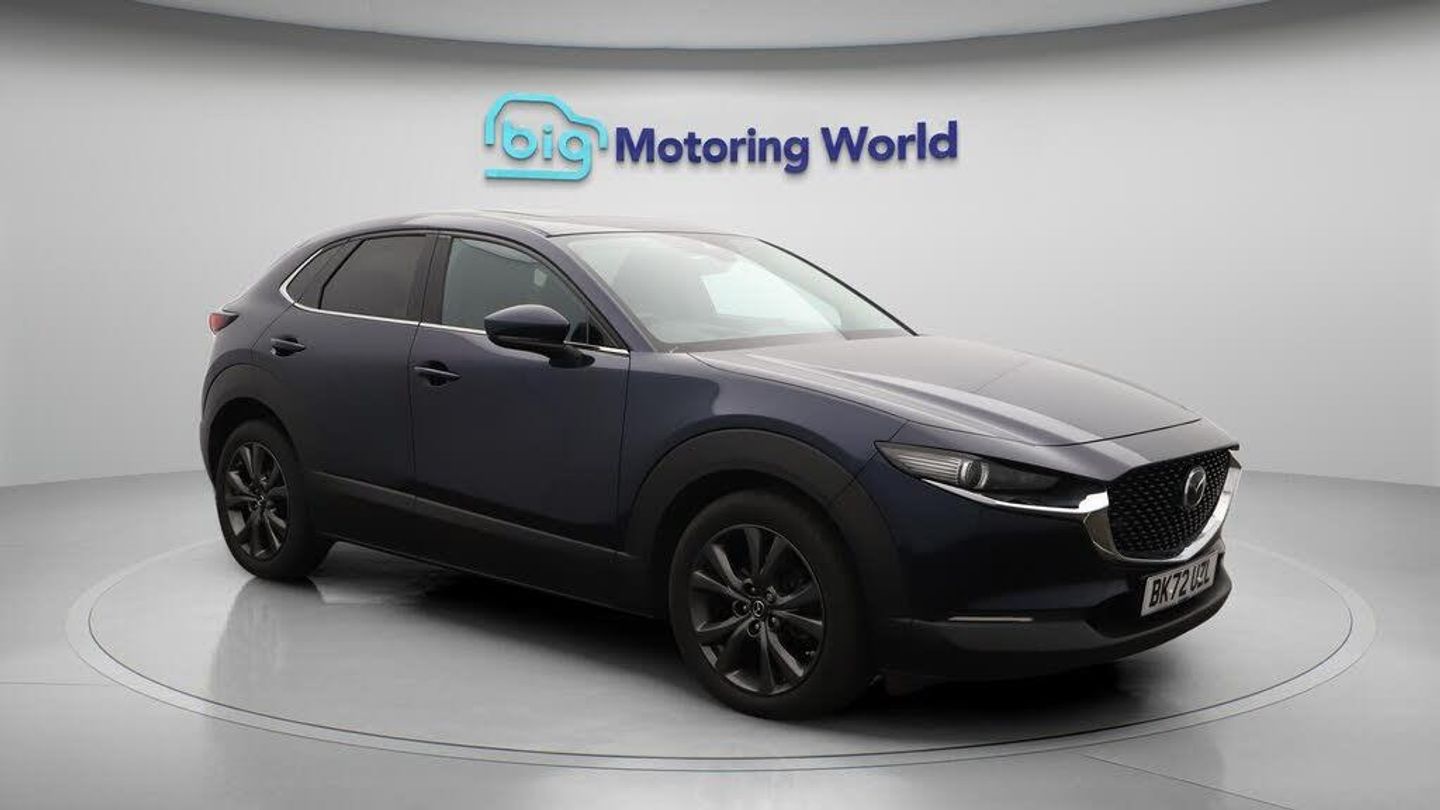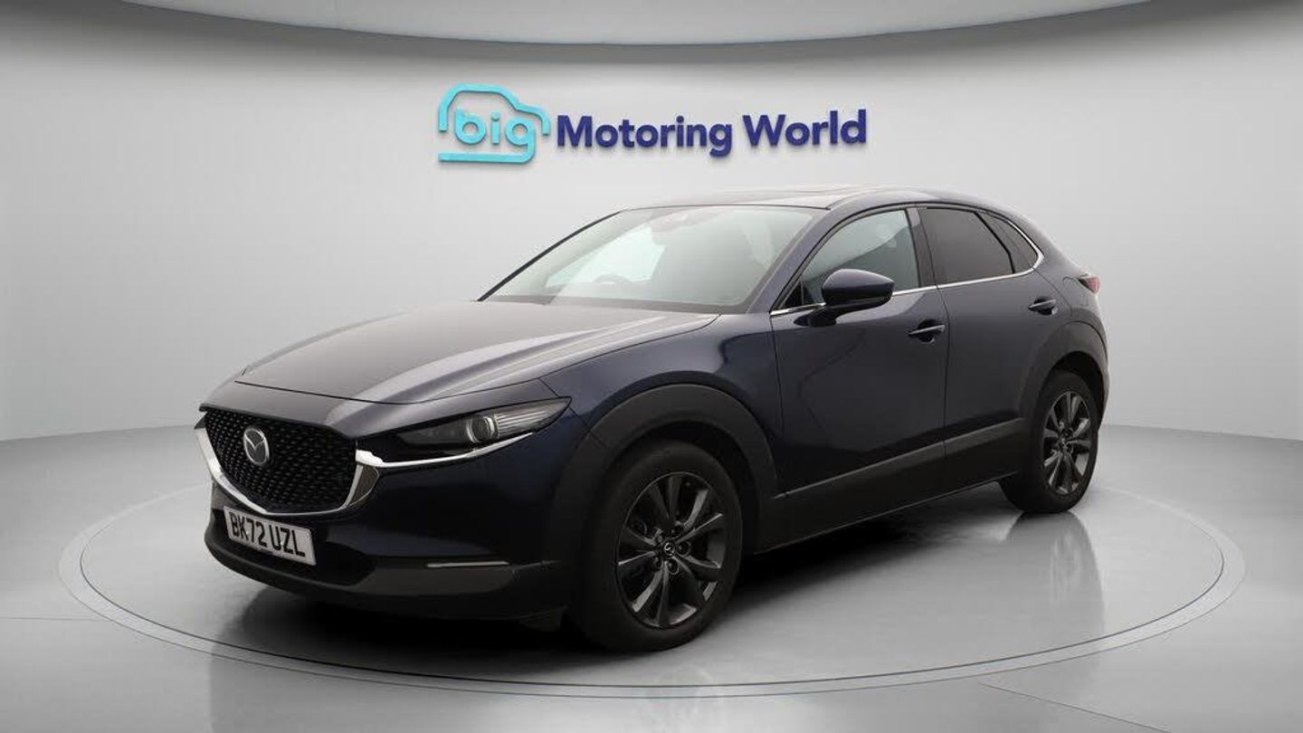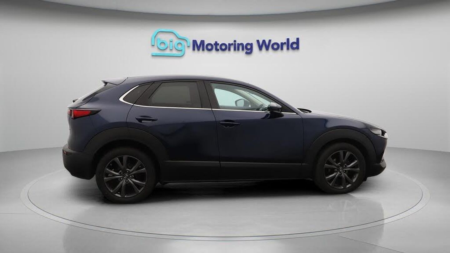Panoramic Roof,18'' alloy wheel-Our Mazda CX-30 is finished in Blue. Specification includes a range of fantastic features including Panoramic Roof, 18'' alloy wheels, Leather Seats, Apple CarPlay, Adaptive Cruise Control, Android Auto, Satellite Navigation, Privacy Glass, Heated Seats, Rear View Camera Specification information is supplied by CAPHPI and may vary to the actual car. This data does not form any part of a buying contact. Please check specification prior to purchase in-store. The MOT is valid until September 2026, visit bigmotoringworld.co.uk for more photos, a 360 tour, service history and a free HPI report.Were BIG on peace of mind and this Blue Mazda CX-30 has completed our comprehensive 200 point inspection and passed all checks. Its ready for you to drive away with immediate collection in-store. We include a 90-day warranty as standard plus an option to extend for up to 3 years.Reserve this car exclusively for you, safely and securely at bigmotoringworld.co.uk, with a fully refundable £99 deposit. Test drive before you buy, with no commitment, no hassle and a completely haggle free experience. Still searching and want to see thousands more cars? We are BIG on choice with over 8000 cars to choose from.Visit our award winning web site bigmotoringworld.co.uk.Were Big Motoring World and were BIG on what matters to you.