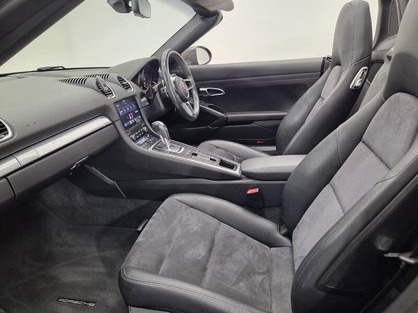 Automatically Dimming Mirrors with Integrated Rain Sensor,Colour to Sample Metallic,Electrically Folding Exterior Mirrors,Park Assist - Front and Rear,Seat Heating,Sports Tailpipes, 12-Volt Socket in Passenger Footwell, Connect Plus, Digital Radio, Instrument Cluster with Central Rev Counter and High Resolution 4.6inch Colour Display, Integrated 4G-LTE Compatible SIM, PCM - Porsche Communication Management - Include Navigation, Sound Package Plus, Digital Displays for Vehicle Speed - Chosen Gear - Odometer - Trip Odometer and Clock, SPORT Button to Activate Dynamic Driving Setting for Engine and Transmission, Tyre Pressure Monitoring - TPM, 18in Alloy Wheels - Boxster, Anti-Theft Wheel Bolts, Automatically Extending Rear Wing, Brake Calipers - Black, Convertible Top Colour - Black, Electric Windows Lifts with One Touch Operation and Door-Seal Protection, Electrically Adjustable Heated Exterior Mirrors on Door Waist Rails - Aspherical on Drivers Side, Electrically Operated - Fully Automatic Fabric Hood with Rigid Glass Rear Screen, Green Tinted Heat-Insulating Glass, Heated Rear Screen, Net Wind Deflector, PORSCHE Logo on Accent Strip and Model Designation in High-Gloss Chrome on Rear End, Separate Auxiliary Lights in the Front End with LED Indicators and Position Lights, Twin-Tract Exhaust System with Central Tailpipe in Stainless Steel, Tyre Sealing Compound and Electric Air Compressor, Windscreen Washer System with Two Wiper Speeds and Washer Jets, Windscreen with Top-Tint, Automatic Headlight Activation including Welcome Home Lighting, Bi-Xenon Headlights with Integrated LED Daytime Running Lights, LED Tail Lights with Integrated Four-Point Brake Lights and Reversing Lights, Adjustable Fan with Air Recirculation and Defroster Functions, Air Conditioning with Integrated Active Carbon Filter, Clothes Hooks on Seat Backrests, Door Sill Guards - Model Designation Logo, Elevated Centre Console with an Open Storage Compartment and a Closed Storage Compartment, Floor Mats, Hood Lining in Black Fabric, Instrument Dials and Rev Counter in Black, LED Reading Lights, Luggage Compartments at Front and Rear, Smooth-Finish Leather on Steering Wheel Rim - Gear Lever and Door Handles, Sports Seats - Electrical 2 Way, Sports Steering Wheel - Diameter 375mm with Manual Fore-Aft and Height Adjustment, Storage Compartment in Each Door, Two Individual Cupholders, Electromechanical Power Steering with Variable Steering Ratio and Steering Pulse Generator, Anti-Theft System including Radar Passenger-compartment Monitoring, Electric Parking Brake, Engine Immobiliser with in-Key Transponder - Central Locking with Remote Control, Full Size Airbags for Driver and Front Passenger, Porsche Side Impact Protection - POSIP, Porsche Stability Management - PSM with ABS with Advance Brake Functions