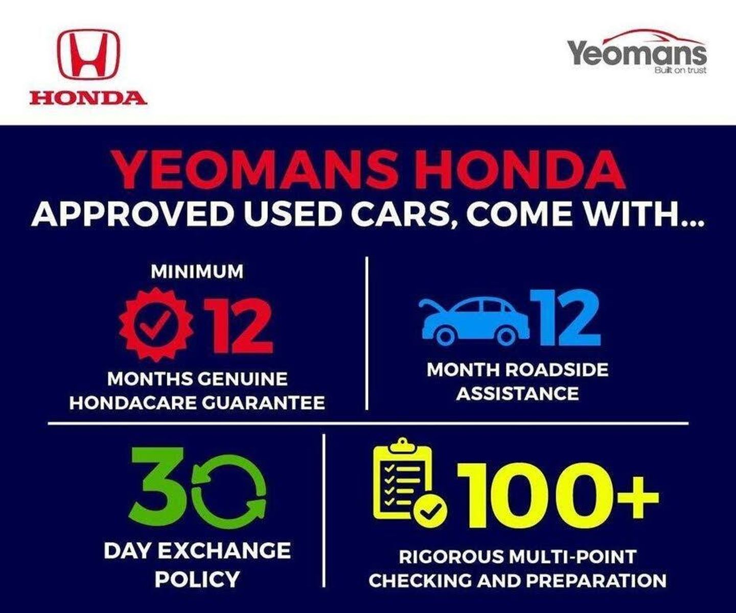 Automatic rain sensing wipers, Drivers window one touch up/down, Electric front windows, One touch passenger window, Rear electric windows, Rear privacy glass, Rear screen wiper - intermittent, Vehicle stability assist, Body colour door handles, Body coloured bumpers, Automatic coming/leaving home lighting function, Automatic headlights with dusk sensor, Front fog lights, High beam assist, LED daytime running lights, LED high level brake lights, ABS/EBD, Active city braking, Brake assist function, Hill start assist, Cruise control, Electric power steering, Forward collision warning, Front and rear parking sensors, Intelligent speed assist, Lane departure warning system, Rear view camera, Speed limiter, Traffic sign recognition, Electric heated + adjustable door mirrors, Electrically retractable door mirrors, Anti-whiplash front headrests, Deflation detection system, Dual front SRS airbags, Front and rear curtain airbags, Front side airbags, Passenger airbag cut-off device, Bluetooth hands free telephone connection, 'Shark fin' mobile antenna, 2x USB and HDMI, 6 speakers, Steering wheel mounted audio controls, Connect with 7" touchscreen, Digital Radio CD/Mp3, Aha app integration, internet browsing, Multi-information display, Automatic climate controlled air conditioning, Centre console accessory socket, Cloth upholstery, Front accessory power socket, Gear shift indicator, Leather gear knob, Leather steering wheel, Rear parcel shelf, Tilt/telescopic adjustable steering wheel, Boot light, Front map lights, Front/rear courtesy lights, Driver/passenger sunvisors and vanity mirrors, Driver seat back pocket, Driver's seat height adjustment, Height adjustable passenger seat, Isofix child seat restraint mechanism, Magic seat flexibility system, Passenger seat back pocket, Reclining rear seats, Honda super locks, Immobiliser, Remote central locking with 2 remote folding keys, Security alarm, Smart entry + Smart start, 16" alloy wheels, Tyre repair kit