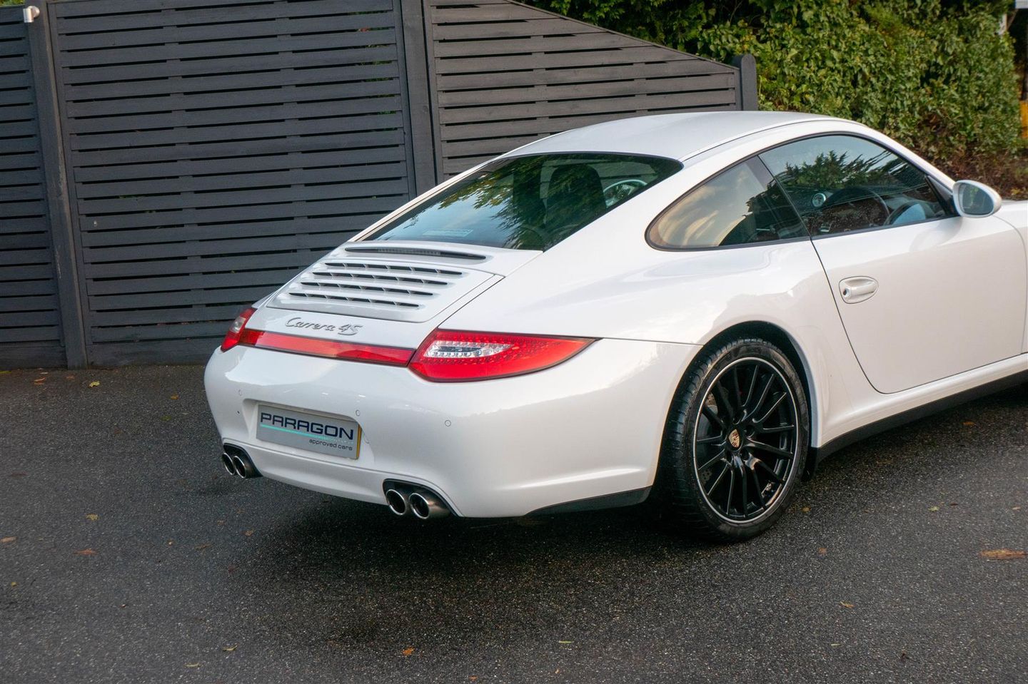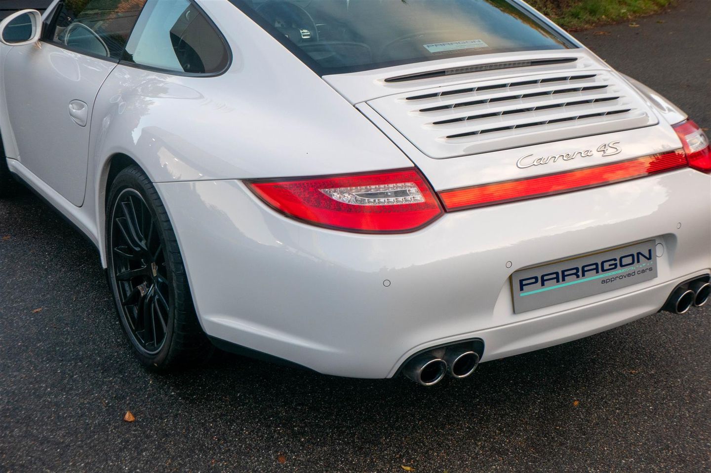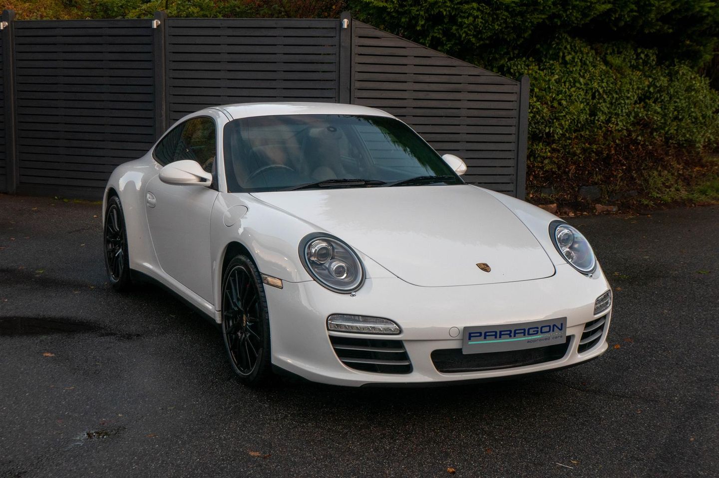 Porsche 911 Carrera 4 S Coupe (997.2) 6-speed manual, Carrara White, Black leather seats, four wheel drive, touchscreen satellite navigation, Porsche active suspension management & Porsche stability management, on board computer, silver dials, LED daytime running lights, sport button for increased throttle response.