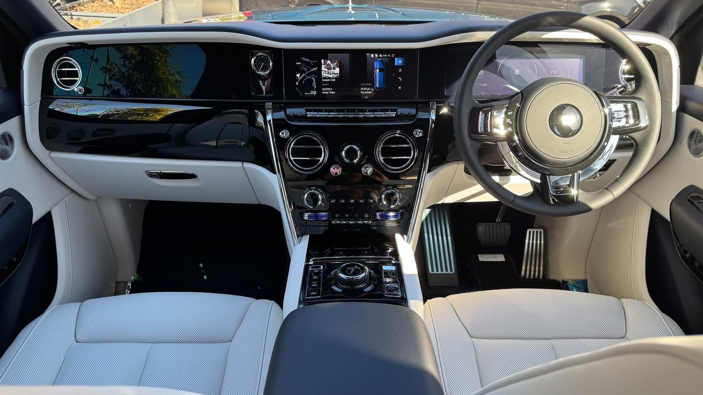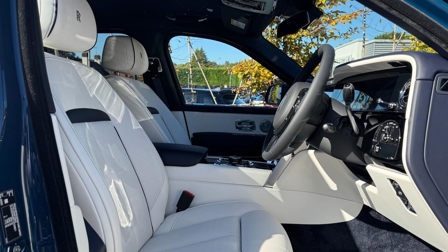 VAT Qualifying Vehicle,Illuminated Grille,Starlight/Shooting Star Headliner,Rolls-Royce Bespoke Audio,Rear Theatre Configuration,Illuminated 'CULLINAN' Treadplates,Front Massage Seats,Coloured Instrument Dials in Lapis Blue,Picnic Tables,Rear Privacy Glass,Visible VIN Plaque,Heated Passenger Surround,RR Monograms to all Headrests in Navy,Rear Headrest Cushions,Front Ventilated Seats,Coloured Stitching in Navy,Coloured Seat Piping in Navy,Lambswool Footmats in Navy,Single Coachline in Grace White,Tyre Pressure Monitor,Universal Garage Door Opener,Comfort Entry System,23" Part Polished Alloy Wheels,Extended Centre Veneer Line,Ambient Air Package,High-Beam Assistance,Camera Based Safety System,Active Cruise Control with Stop/Go Function,DAB Digital Tuner,Apple Car Play,Wireless Telephone Charging,Personal eSIM,Signature Key in Navy,Automatic Door Closure