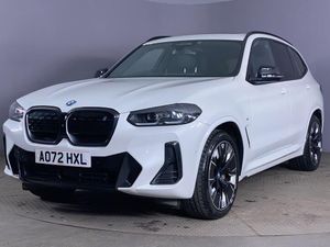 20in Alloy Wheels - M Aerodynamic - Bi-Colour, ABS - Anti Lock Braking System, Acoustic Glazing, Active Guard Plus, Active Protection, Adaptive LED Headlights, Adaptive Suspension, Air Breather with BMW M logo, Air Conditioning - Automatic, Airbags - Driver and Front Passenger, Airbags - Front Side for Driver and Passenger, Airbags - Head - Front and Rear, Alarm System, Ambient Lighting, Armrests, Attentiveness Assistant, Automatic Operation of Tailgate, Automatic Start-Stop Button, Backrest Width Adjustment for Driver, Blue Ring Around BMW Logos, BMW Connected Package Professional, BMW ConnectedDrive Online Services, BMW Gesture Control, BMW Iconic Sounds - Electric, BMW iDrive, BMW Individual Lights - Shadowline, BMW Legal Emergency Call, BMW Live Cockpit Professional, BMW TeleServices, Brake Pad Wear Indicator, Bumper System Front and Rear - Replaceable Deformation Elements for Impacts Up to 15kmh, CBC - Cornering Brake Control, Centre Lock Switch, Charging Cable - Mode 3 - 5m, Closing System with Central Locking, Comfort Access, Condition Based Service, Crash Sensor, Cup Holders - Front x2, DAB Digital Radio, Door Sill Strips, Drive Recorder, Driving Assistant Professional, Driving Experience Switch, DSC - Dynamic Stability Control Plus, DTC - Dynamic Traction Control, Dynamic Brake Lights, eDrive Exterior Sound, Electric Memory Seats, Electric Windows - Front, Electro Mechanical Parking Brake, Electronic Vehicle Immobiliser, Enhanced Bluetooth with Wireless Charging, Extended Storage, Exterior Mirrors - Electrically Folding with Anti Dazzle, Exterior Trim - Extended High Gloss Shadowline, Exterior Trim - High-Gloss Shadowline, Floor Mats - Velour, Follow Me Home Headlight Function, Front and Rear Parking Sensors, Front Bumper - M Sport with iX3 Specific Design with Blue Contents, Galvanic Embellisher for Controls, Glove Compartment - Lockable, Head-Up Display, Headlights - Beam Throw Control, Headlining - M Anthracite, Heated Seats for Driver and Front Passenger, Heated Steering Wheel, High-Beam Assistant, Instrument Panel in Sensatec, Interior Rear-View Mirror with Automatic Anti-Dazzle Function, Interior Trim - Aluminium Rhombicle with Pearl Chrome, Lashing Eyes in Luggage Compartment, Loudspeaker System - Harman Kardon, Luggage Compartment Lights, Luggage Net, Lumbar Support - Drivers, M Aerodynamic Exterior, M Badging on Front Side - Left and Right, M Seat Belts, M Sport Leather Steering Wheel, Mineral White, Multiple-Control-Arm Rear Axle, Non Smoker Package, Panoramic Glass Sunroof, Parking Assistant, Parking Assistant Plus, Power Sockets, Power Steering - Electric, Preparation for Adaptive M Suspension, Rain Sensor with Automatic Headlight Activation, Rear Centre Armrest including Two Cupholders, Rear Diffuser in Blue, Reversing Assist Camera, Reversing Light, Roof Rails - Shadow Line High Gloss - Black, Runflat Indicator, Safety Battery - Terminal Clamp, Seat Backrest Adjustment for Rear Seats, Seats - Front Sports, Servotronic Steering, Side Impact Protection, Split Folding Rear Seat, Steering Column Adjustment, Storage Options, Sun Protection Glass, Sun Visors with Vanity Mirrors and Ticket Holder, Third Brake Light Using LED Technology, TPMS - Tyre Pressure Monitoring System, Tyre Repair Kit, Vernasca Leather - Black with Blue Contrast Stitching, Warning Triangle, Washer Jets - Heated, Welcome Lighting, Widescreen Display, WiFi Hotspot