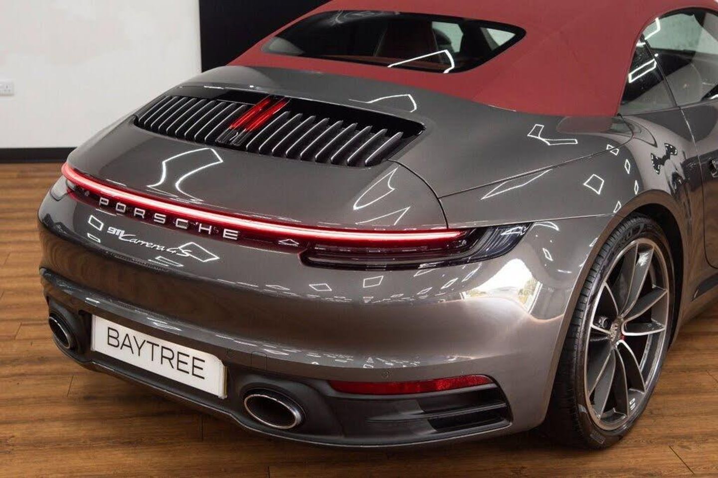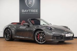 Agate Grey, 2 USB-C Ports in Centre Console Main Storage Compartment Lid - 12V Socket in Passenger Footwell, 20in Front 21in Rear Alloy Wheels - Carrera S, Ascending Centre Console with Storage Compartment, Auto-Deployed Rear Spoiler, Auto-Deploying Roll-Over Protection System, Automatic Headlight Activation including Welcome Home Lighting, Clothes Hooks on Seat Backrests, Convertible Top Colour - Black, Cruise Control, Dashboard Trim Strip - Centre Console Trim and Door Panel Trim Strips in Diamar Darksilver, Digital Display for Selected Gear in Rev Counter, Digital Radio, Door Sill Guards - Model Designation Logo, EU eCall Emergency System, Electric Parking Brake, Electrically Operated Rear Side Windows, Electrically Operated, Fully Automatic Fabric Roof, Electromechanical Power Steering with Variable Steering Ratio and Steering Pulse Generator, Embossed Leather on Front Seat Centres - Front Side Bolsters - Front Seat Head Restraints, Engine Compartment Cover Grille with Vertical Slats in Silver Colour - High-Gloss, Engine Immobiliser, Exhaust System with 2 Dual-Tube Tailpipe Trims Fixed to the Bumper in High Gloss Silver Stainless Steel, Exterior Mirrors on Door Waist Rails - Electrically Adjustable and Heatable - Aspherical on Drivers Side, Floor Mats, Full-Size Airbags for Driver and Front Passenger, Glove Compartment - Lockable and Storage Compartment in Each Door, Green Tinted Thermally Insulated Glass, Heated Rear Screen, Hood Lining in Black Fabric, ISOFIX Child Seat Mounting Points on Front Passenger Seat, Illuminated Vanity Mirrors in Sun Visors - Driver and Passenger Sides, Instrument Cluster with Central Analogue Rev Counter - Two 7in TFT Display, Integral Electrically Powered Wind Deflector, Intelligent Lightweight Construction in Aluminium-Steel-Composite Construction, Interior LED Lighting - Reading Lights - Orientation - Ignition Lock - Luggage Compartment - Footwell - Glove Compartment and Door Lighting, Keyless Go, LED Auxiliary Lights Units in Front Apron with Position Lights - Direction Indicators and Side Indicators, LED Main Headlights - Daytime Running Lights with 4-Point LED Spotlights, Luggage Compartment - Front, McPherson-Strut Suspension with Anti-Roll Bar at Front, Model Designation on Rear Trim in Light Silver, Multi-Link Suspension with Anti-Roll Bar at Rear, Multifunction Steering Wheel with Shift Paddles and Manual Height-Reach Adjustment, PASM - Porsche Active Suspension Management, PCM - Porsche Communication Management - Include Navigation, PORSCHE Lettering Integrated in Taillight Strip, PTM - Porsche Traction Management, PTV Plus - Porsche Torque Vectoring Plus, PVTS - Porsche Vehicle Tracking System, ParkAssist - Front and Rear with Reversing Camera, Particle-Pollen Filter with Active Carbon Filter, Porsche Connect Online Navigation, Porsche Side Impact Protection - POSIP, Porsche Stability Management - PSM Including ABS with Extended Brake Functions, Porsche WET Mode, Power Windows with One-Touch Operation and Door Seal Protection Function, Remote Control for Central Locking and Luggage Compartment Lid Release, Retractable Door Handles, SPORT Button to Activate Dynamic Driving Setting for Engine and Transmission, Seats - Heated Front, Seats - Split-Folding Rear, Side Air Intakes at the Front with Active Cooling Air Flaps and Air Blades, Side Skirt Trim in Black, Six-Piston Closed Type Aluminium Monobloc Fixed Brake Calipers at Front and Four-Piston Closed Type Aluminium Monobloc Fixed Brake Calipers at Rear - Brake Calipers with Red Finish, Smartphone Integration - Apple Carplay and Android Auto, Smooth-Finish Leather on Steering Wheel Rim - Door Handles - Door Panel Armrests and Centre Console Storage Compartment Lid, Sound Package Plus, Sports Seats - 4-Way Electric, Sports Seats in Front with Electric Backrest Angle - Seat Height Adjustment - Manual Adjustment of Fore/Aft Position, Stationary Management with HOLD Function, Storage Compartment in Each Door, Taillight Strip including integrated Parking Lights and Rear Fog Light, Three-Dimensional LED Taillights and Integral Third Brake Light, Two Individual Cupholders, Two-Zone Automatic Climate Control, Tyre Pressure Monitoring - TPM, Warn and Brake Assist including Pedestrian Protection, Windscreen Washer System with Aero Wiper Blades and Washer Jets
