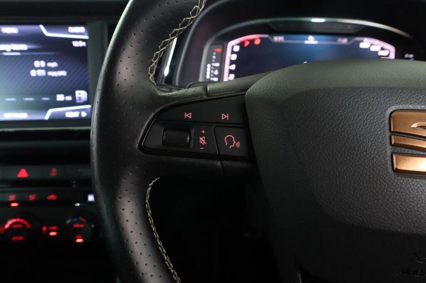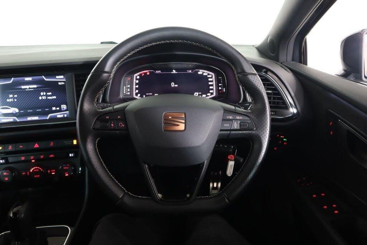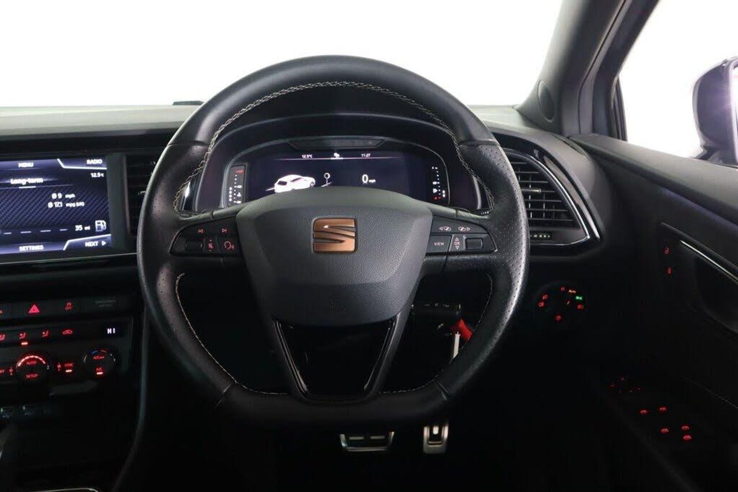12V Power Supply in Centre Console, 19in Alloy Wheels - CUPRA Machined, 7 Airbags, ABS and Traction Control System - TCS - Electronic Stability Control - ESC - and Electronic Differential Lock System - XDS, Alarm - Volumetric, Armrest - Front with Storage Compartment, Black Interior Roof Lining, Boot Storage Net, Brake Callipers - Black, Bumpers - Exclusive Cupra Front and Rear, Cargo Rings in the Boot, Convenience Pack Plus, Cruise Control, Dark Tinted Rear Windows, Digital Clock, Digital Cockpit, Driver and Passenger Seat Height Adjustment, Driver and Passenger Sunvisor with Covered and Illuminated Mirrors, Drivers Seat Lumbar Adjustment, Dual Zone Climate Control, ESC - Electronic Stability Control and Tyre Pressure Warning Light Indicator, ESC Switch-Off Key, Electric Parking Brake Including Autohold Function, Electrically Adjustable and Heated Door Mirrors, Electrically Foldable Exterior Mirrors with Parking Position and Passenger-Side Mirror with Lowering, Electro-Mechanical Progressive Power Steering, Emergency Tyre Repair Kit, Flat Bottomed-Perforated Leather Steering Wheel with White Stitching and CUPRA Logo, Front Assist with Pedestrian Protection, Front Seat Back Storage Pockets, Front and Rear Electric Windows, Front and Rear Parking Sensors, Full LED Headlights, Gearshift Indicator, Gloss Black Door Mirrors with Integrated LED Indicators, Hill Hold Control, ISOFIX Points in Outer Rear Seats with Top Tether Anchorage Points, Illuminated Aluminium Front Door Sill with CUPRA Logo, Instrument Lighting with Brightness Control, Interior CUPRA - Black, Interior Detailing - Black, LED Interior Illumination Pack, Lights Left On Warning Buzzer, Low Fuel Warning Light, Lower Suspension - 15mm, Mechanical Limited Slip Differential, Media System Plus, Multi Coloured Ambient Lighting, Multi-Collision Braking System, Navigation System, Outside Temperature Gauge, Pedals in Aluminium, RPM Counter, Radiator Grille Frame in Glossy Black, Radiator Grille in Black, Remote Central Locking with Deadlocks, SEAT Drive Profile, SEAT Full Link Smartphone Integration - Mirror Link - Apple CarPlay - Google Android Auto, Seatbelt Reminder - Front, Seats - Passenger Lumbar Adjustment, Space-Saving Spare Wheel, Split Folding Rear Seats 60-40 with Armrest, Steering Wheel-Mounted Gearshift Paddles, Storage Box Under Driver and Front Passenger Seat, Trip Computer, Two Folding Keys with Window Open-Close - Door and Boot Opening Functionality, Two Height-Adjustable Front and Rear Headrests, USB Cable for Apple and Android Compatibility, Visual Dual Exhaust Pipes