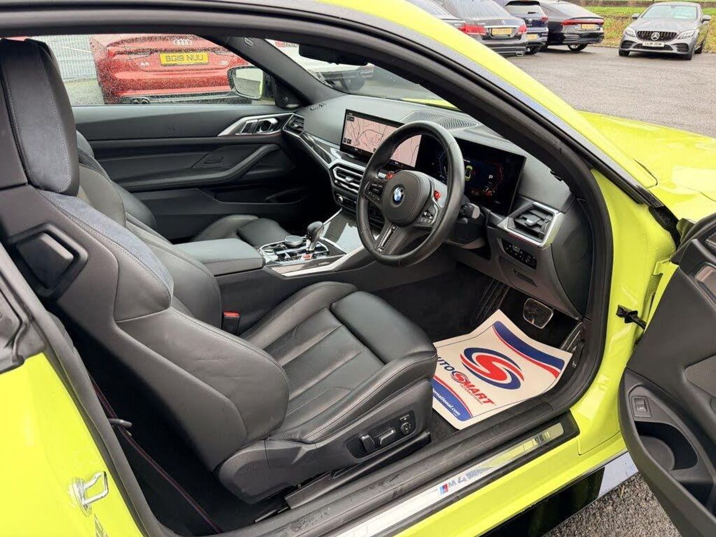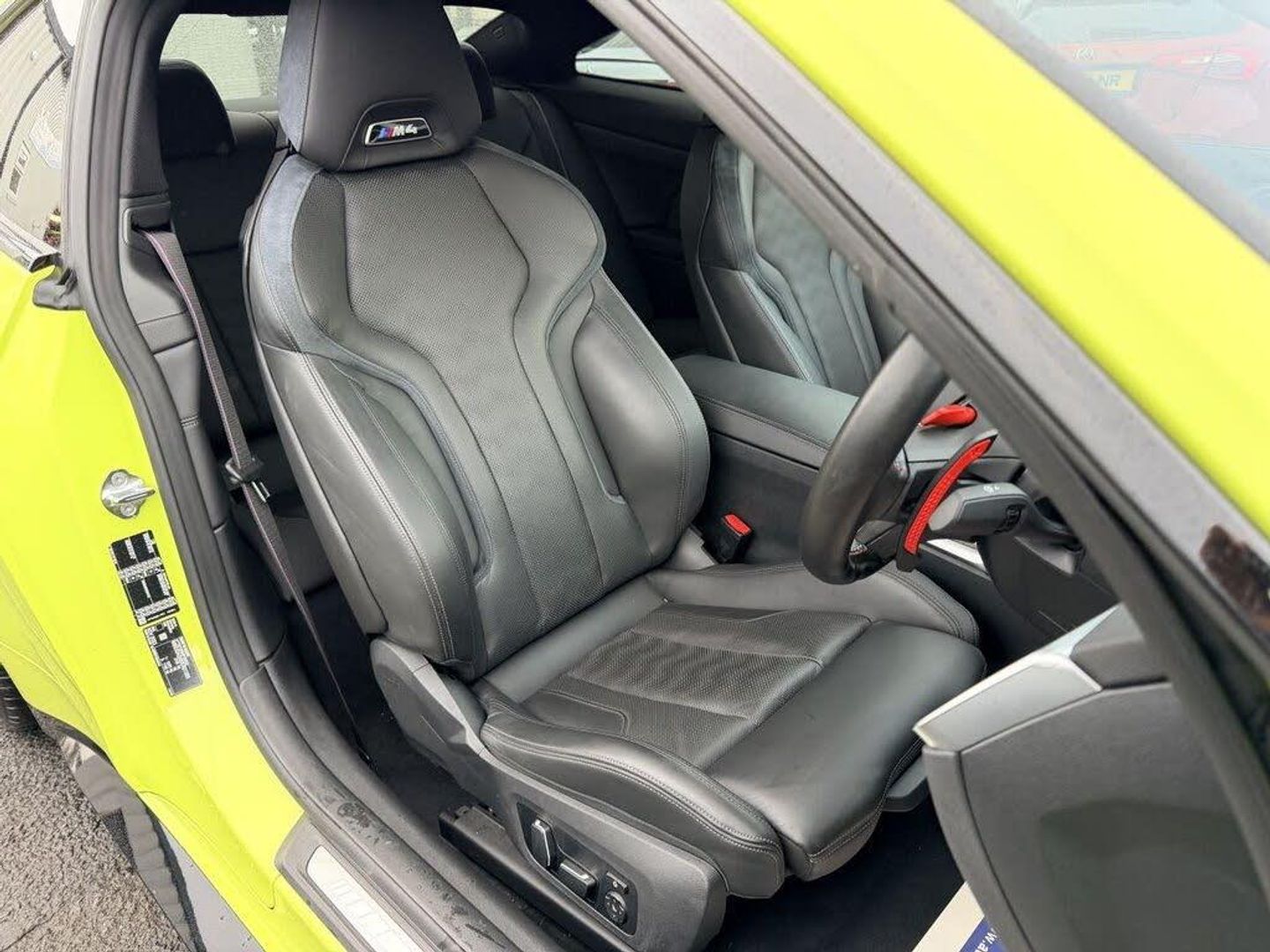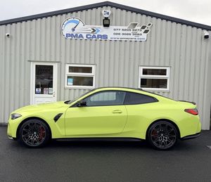 19in Front - 20in Rear Alloy Wheels - M Double Spoke - 826 - Forged - Bicolour Black with Mixed Tyres, Active Guard Plus, Adaptive M Suspension, Air Conditioning - Automatic with Three-Zone, Airbags, Alarm System, Ambient Lighting, Armrests, Automatic Start-Stop Button, Battery in Luggage Compartment, BMW ConnectedDrive Online Services, BMW Emblem on Engine Compartment Lid and Tailgate, BMW Emergency Call, BMW Individual Lights - Shadowline, BMW Kidney - Frameless with Horizontal Double Grille Slates - Black High-Gloss with Model Badge, BMW Live Cockpit Professional, BMW TeleServices, Bumper System - Front and Rear, Centre Lock Switch, Closing System with Central Locking, Comfort Package, Condition Based Service, Connected Package Professional, Crash Sensor, Cruise Control including Speed Limiting Function - LIM Button, Cupholder, DAB Radio, Door Sill Finishers with Aluminium Inserts and Model Inscriptions, Door Sill Strips, Double-Jointed Spring-Strut Front Axle, Driving Assistant, Driving Experience Switch, DSC - Dynamic Stability Control Plus, Electric Memory Seats, Electric Window, Electronic Differential Lock, Electronic Engine Immobiliser, Extended Merino Leather - Black, Extended Storage, Exterior Mirror Caps and Rear Spoiler in High-Gloss Black, Exterior Trim - Extended High Gloss Shadowline, Exterior Trim - High-Gloss Shadowline, Floor Mats - Velour, Folding Wing Mirrors with Auto-Dimming, Front and Rear Apron Plastic in Body Colour, Front Heated Seats, Front Lumbar Support, Galvanic Controls, Glove Compartment - Illuminated, Harman Kardon Surround Audio Sound System, Headlight Beam-Throw Control, Headlining - Anthracite, Heat Protection - Sun Protection Glazing, High-Beam Assistant, Illuminated Bow-Type Door Handles - in Body Colour - Drivers Side with Door Lock, Interior Lighting, Interior Trim - Carbon Fibre, Interior Trim Finishers - Black High Gloss, Language Version English, LED Rear Lights, Lower Edges of Bumpers - Side Sills - Edge Binding of Diffuser and Diffuser in Black High-Gloss, Luggage Compartment Lights, M Compound Brakes with Red High Gloss, M Drive, M Drive Professional, M Seat Belts, M Sport Differential, M Sport Seats, M Steering Wheel, Model Badges in Black, Model Logo - Rear Right M4 Competition Inscription, Multifunction for Steering Wheel, Oil Sensor For Level and Grade, Parking Assistant, Parking Brake - Electromechanical, Power Socket 12v, Power Sockets, Rear Backrest - Foldable and Dividable by 40-20-40, Rear-View Mirror with Auto-Dimming, Reversing Light, Roof Aerial Bulge and Roof Mouldings in Black High-gloss, Runflat Indicator, Safety Battery Terminal Clamp, Sao Paulo Yellow, Shifting Point Display, Side Impact Protection, Smartphone Integration, Steering Column Adjustment, Steering Wheel - Heated, Strakes in Front Side Panel - Black Matt-Black High-Gloss with Model Badge, Sun Protection Glass, Sun Visors with Ticket Holder and Illuminated Vanity Mirror, Third Brake Light, Through-Loading System, Tool Kit Located in Luggage Compartment, Tyre Pressure Sensors, Tyre Repair Kit, Variable Sport Steering, Visibility Pack, Warning Triangle, Washer Jets - Heated, Welcome Light, Wireless Charging Tray