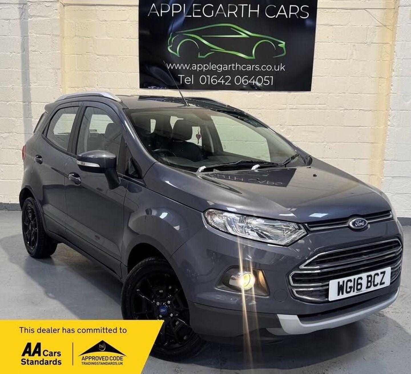 FOR SALE: 2016 Ford EcoSport 1.0T EcoBoost Titanium SUV – WG16 BCZ 35,787 miles | Petrol | Manual | 2WD | Euro 5 | 125 PS | Grey Looking for a compact SUV that offers style, efficiency, and reliability? This 2016 Ford EcoSport 1.0T EcoBoost Titanium delivers all that and more. With just 35,787 miles on the clock and finished in a sleek grey, this vehicle has been well cared for and maintained to a high standard. Powered by Ford's award-winning 1.0-litre EcoBoost engine, this SUV combines excellent fuel economy with impressive performance, producing 125 PS while remaining cost-effective to run. The manual gearbox offers a smooth, engaging drive, and the 2WD configuration is perfect for urban environments and longer journeys alike. The Titanium trim brings a host of premium features, including: Full climate control Keyless entry and start Cruise control Rear parking sensors SYNC infotainment system with Bluetooth connectivity Leather-trimmed steering wheel Alloy wheels Electrically adjustable and heated door mirrors Automatic headlights and rain-sensing wipers Inside, the elevated driving position provides excellent visibility, while the cabin offers ample space and comfort for both driver and passengers. The rear seats fold flat for enhanced practicality, making it a versatile choice for commuting, weekend trips, or small family duties. HPI clear, with a low mileage for its age, this EcoSport is ready to drive away. Don't miss the opportunity to own this well-equipped, reliable, and stylish compact SUV. Contact us today to arrange a test drive or for more details. Applegarth Cars is a trusted used car dealership dedicated to providing high-quality, pre-owned vehicles at competitive prices. With a strong commitment to customer satisfaction, we offer a diverse selection of cars, from reliable family vehicles to performance and luxury models. At Applegarth Cars, we pride ourselves on transparency, fair pricing, and exceptional service. Our knowledgeable team is here to help you find the perfect vehicle to suit your needs and budget. Whether you’re buying, selling, or looking for financing options, we make the process smooth and hassle-free. Visit Applegarth Cars today and drive away with confidence!