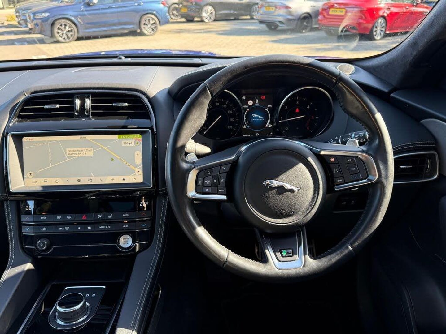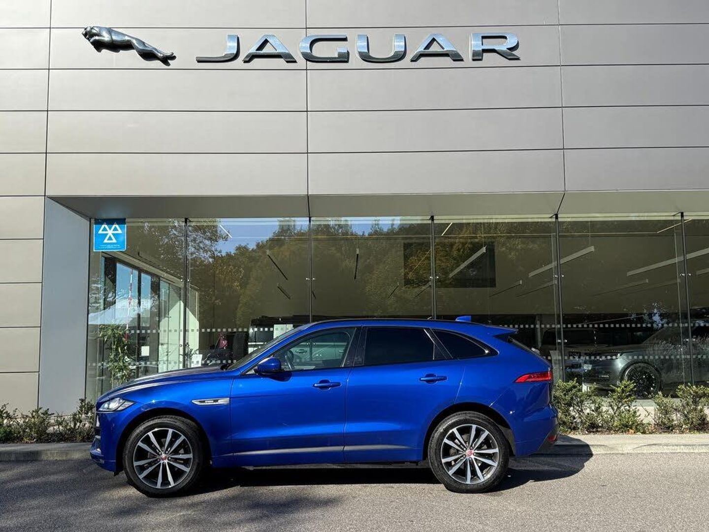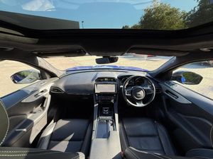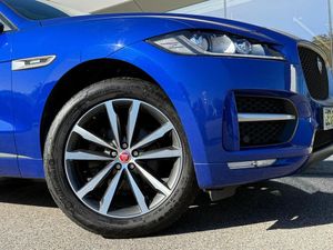 10in Touch Pro, 19in Alloy Wheels - 5 Split-Spoke Style 5038 - Grey Diamond Turned, 2-Zone Climate Control, 20d AWD Badge, 3-Flash Lane Change Indicators, 325mm Front Brakes, 40-20-40 Split Fold Rear Seat, 8-Way Manual Front Seats, ABS - Anti-locking Braking System, AM-FM Radio, ASPC - All Surface Progress Control, Airbags - Front Side, Airbags - Full Length Side Window Curtain, Ambient Interior Lighting, Analogue Dials with Central TFT Display, Approach Illumination, Auto-Dimming Interior Rear View Mirror, Bluetooth Connectivity, Bluetooth Streaming, Body-Coloured R-Sport Door Claddings with Satin Black Finishers, Brake Pad Wear Indicator, Bright Metal Pedals, Centre Console - Side Stowage, Centre Console - Storage Surround Finishers - Satin Chrome, Centre Console with Armrest, Connect Pro, Cruise Control with Speed Limiter, Digital Audio Broadcast - DAB - Radio, Door Trim - Luxtec, Driver Condition Monitor, Dynamic Stability Control - DSC, Dynamic Volume Control, EBA - Emergency Brake Assist, ECO Driving Style Assistant, EPAS - Electric Power Assisted Steering, EPB - Electronic Parking Brake, Ebony Morzine Headlining, Ebony Suedecloth Headlining, Electric Windows - Front and Rear with One-Touch Open-Close and Anti-Trap, Electrically Adjustable Heated Door Mirrors, Emergency Braking, Etched Aluminium Trim Finisher, F-PACE Badge, Front Airbags with Passenger Seat Occupant Detector, Front Bumper - R Sport, Front Fog Lights, Front Headrests, Front Windscreen with Non-acoustic Layer, Front and Rear Parking Aid, Gloss Black Roof Rails, Gloss Black Side Window Surround, Glovebox Finisher with Jaguar Script, Grained Black Grille with Satin Chrome Surround, Green Tinted Glass, Headlight Power Wash, Heated Front Seats, Heated Rear Window, Hill Launch Assist, Hook in Loadspace, ISOFIX Rear, Illuminated Metal Treadplates with Brand-Name Script, InControl Apps, Interior Front Door Handles with Separate Locking Switches, Jaguar Script and Leaper, Jaguar Sound System, Jaguar Tyre Repair System, JaguarDrive Control, LED Tail Lights, Lane Keep Assist, Loadbay - Luggage Tie Downs, Lockable Glovebox, Luxtec Wrapped Instrument Panel Topper with Wrapped Binnacle, Manually Adjustable Steering Column, Metal Loadspace Scuff Plate, Navigation Pro, No Loadspace Storage Rails, Open Differential with Torque Vectoring by Braking, Outside Temperature Gauge, Overhead Lighting Console, Passive Front Head Restraints, Power Operated Child Locks, Power Sockets, Powered Tailgate - Boot Lid, Premium Carpet Mats, Pro Services and Wi-Fi Hotspot, Protect for Warranty Period, R-Sport Rear Bumper, Rain Sensing Windscreen Wipers, Rear Air Vents, Rear Armrest with Twin Cupholders, Rear Camera, Rear Centre Headrest, Rear Fog Lights, Rear Metal Treadplates, Remote Premium for Warranty Period, Rotary Shifter, Satin Chrome Side Vents with R-Sport Badge, Satin Chrome Touchscreen Surround, Seat Belt Reminder, Seats - Sports, Speed Proportional Steering, Start Up Sequence with Movement - Dials and Lighting, Steering Wheel - Multi-Function, Steering Wheel - R Sport Branded Soft Grain Leather, Steering Wheel - Satin Chrome Paddles, Torque Vectoring, Traffic Sign Recognition with Adaptive Speed Limiter, Trailer Stability Assist, Trip Computer, Twin Front Cupholders with Cover, Tyre Pressure Monitoring System, Unpainted Brake Calipers, Valet Mode, Variable Intermittent Wipers, Voice Control, Xenon Headlights with LED Signature, 20in Alloy Wheels - 5 Split-Spoke Style 5031 with Grey Diamond Turned Finish, Caesium Blue, Fixed Panoramic Roof, Heated Front and Rear Seats, Heated Front Windscreen, Heated Steering Wheel