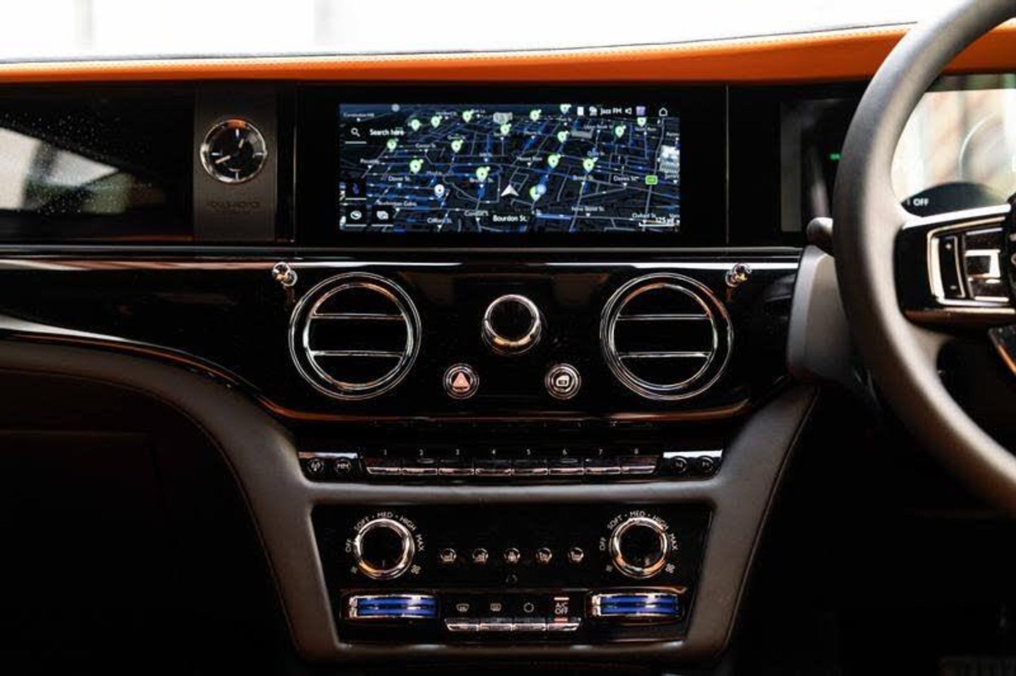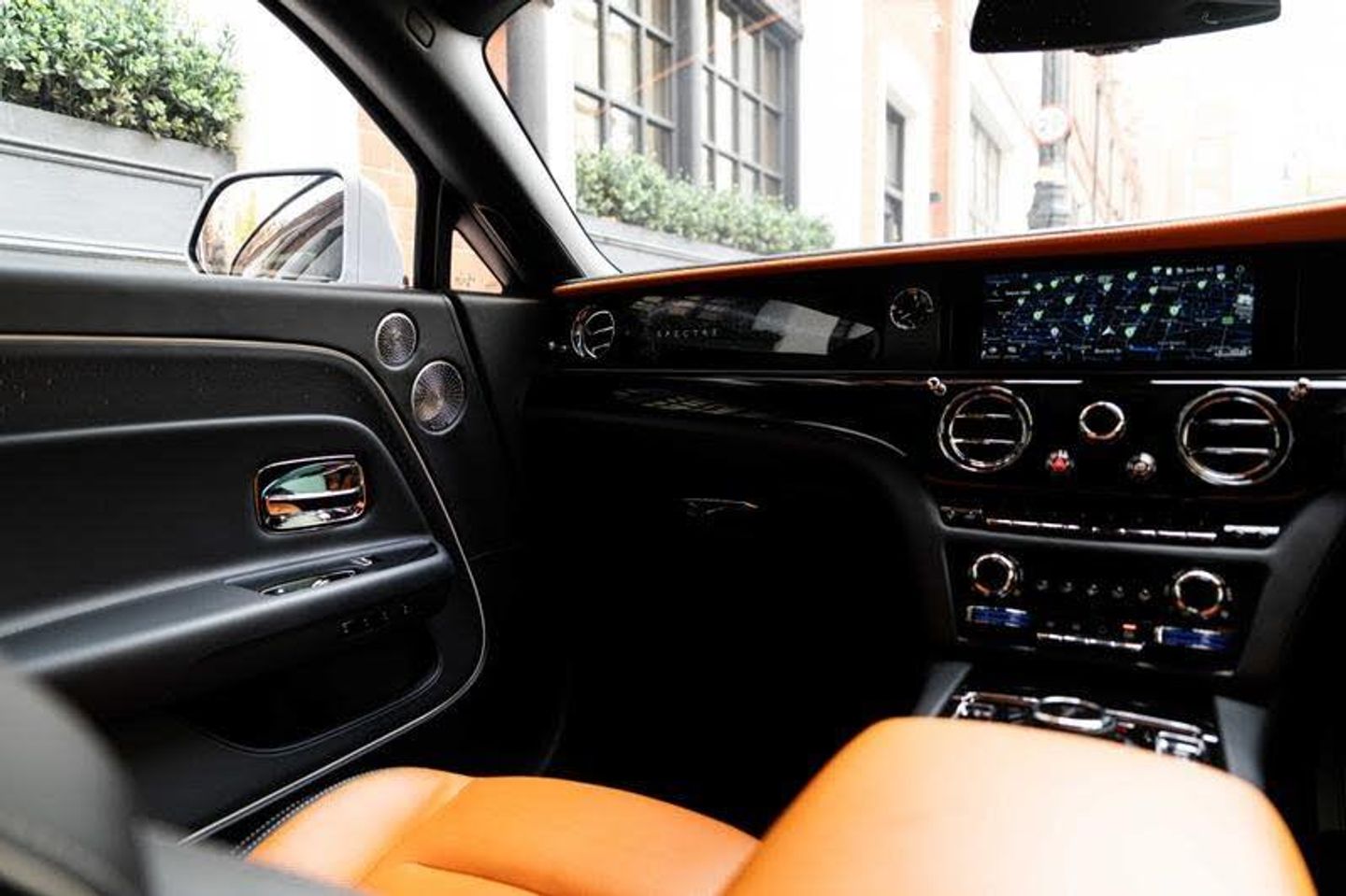 Tyre Pressure Monitor, Universal Garage Door Opener, Rear Privacy Glass, Ventilated Massage Seats, Heated Passenger Surround, Ambient Air Package, AC Public Charging Cable (Mode 3), Occasional Use Charging Cable, AC Charging Professional, Acoustic Protection For Pedestrians, Advanced Driver Assistance Systems, Parking Assistant Plus, Stolen Vehicle Tracking, DAB Tuner, Teleservices, Legal Emergency Call, Apple CarPlay, Storage For Wireless Charging, Personal ESIM, Spirit - Digital Interface, Active Protection For Pedestrians, Control E System, Signature Key - Cashmere Grey, Visible VIN Plaque, Coloured Instrument Dials - Fire Opal Orange, Alternate Clock 3, Illuminated Fascia, Starlight Doors, Leather Finishing Pack - Cashmere Grey, Coloured IP Inner Stitch - Cashmere Grey, RR Monogram To All Headrests - Cashmere Grey, Coloured Seat Piping - Cashmere Grey, Coloured Stitching - Cashmere Grey, Extended Piping - Cashmere Grey, Pinstripe Applied To Wheel Centre - Mandarin, Single Coachline, Coachline Colour - Mandarin, Bespoke Interior Scheme, Lambswool Footmats, Extended Leather Headlining, Illuminated Treadplates - Spectre, Polished Stainless Steel Treadplates, 23inch Wing Spoke Part Polished Wheel, Rolls-Royce Bespoke Audio, Starlight Headliner, Illuminated Grille, Veneer - Piano Black, Tempest Grey, Spirit Of Ecstasy, Black Boot Trim, Black Steering Wheel, Spectre Launch Package