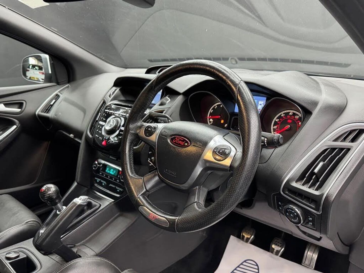 12V Power Socket - Additional Front, 12V Power Socket - Additional Rear, 12V Power Socket - Front, 18in Alloy Wheels, 4.2in TFT Display, ABS - Anti-lock Braking System, AUX Connection, Airbags - Curtain, Airbags - Front Passenger, Airbags - Side Impact, Armrest - Centre Console, Automatic Dimming Rear View Mirror, Automatic Rain Sensing Wipers, Body Colour Side Skirts, CD storage, Centre Console with open Stowage Bins, DAB Digital Radio, DDS - Deflation Detection System, DEATC - Dual-Zone Electronic Automatic Temperature Control, Drivers Airbag, EBA - Emergency Brake Assist, EBD - Electronic Brakeforce Distribution, EPAS - Electric Power Assisted Steering, ESP - Electronic Stability Programme, Emergency Brake Lights, Ford Easy-Fuel Capless Refuelling System, Ford Power Engine Start-Stop Button, Ford SYNC, Front Fog Lights, Front Grille - Chrome, Headlights - Automatic, Heated Front Windscreen, Heated Washer Jets, Heated Windscreen, IPS - Intelligent Protection System, LED Daytime Running Lights, Locking Wheel Nuts, Mini Steel Spare Wheel, Open Stowage Bins, Rear Spoiler - Body Colour, Remote Central Locking, ST Front Door Scuff Plates, ST Full Body Styling Kit, Seats - Drivers Power Height and Fore-Aft Adjustment, Seats - Front Recaro Sports, Seats - ISOFIX Mounting Brackets for Child Seats, Sony Radio-CD, Sports tuned suspension, Steering Wheel - 4 Spoke Leather Trimmed, TVC - Torque Vectoring Control, Thatcham Category 1 Alarm, Traction Control - TC, Trip Computer, USB Connection, Unique ST Floor Mats - Front and Rear, Unique ST Instrument Cluster Binnacle, Unique ST Leather Gearshift Knob, Unique ST Rear Spoiler, Unique ST pedals, Voice Control - Audio, Z-Shape Handbrake, Rear Privacy Glass, Partial Leather - Charcoal Black/Smoke Storm