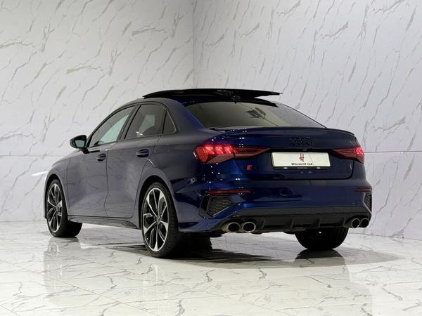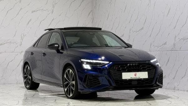 Black interior.This 2023 Audi S3 TFSI Vorsprung is presented with a clear vehicle history, offering peace of mind for its next owner. This sophisticated model boasts a powerful 2.0 litre petrol engine paired with a four wheel drive system, ensuring dynamic performance and assured handling. As a Euro 6 compliant vehicle, it meets stringent emission standards. Inside, you'll find a host of premium features designed for comfort and convenience, including a Bluetooth interface, a 360 degree camera system for effortless parking assistance, and dual zone electronic climate control to maintain your ideal cabin temperature. The electrically adjustable front seats come with a memory function for the driver's side, and the Audi Smartphone Interface seamlessly integrates your Apple CarPlay for easy access to your digital life. The Audi S3 TFSI Vorsprung truly excels with its impressive performance figures, accelerating from 0 to 60 miles per hour in a remarkable 4.8 seconds. This rapid acceleration demonstrates its superior capability compared to many other vehicles in its class. The combination of its advanced engineering, luxurious Vorsprung trim, and cutting edge technology makes this 2023 Audi S3 a compelling choice for those seeking a blend of performance, comfort, and advanced features.