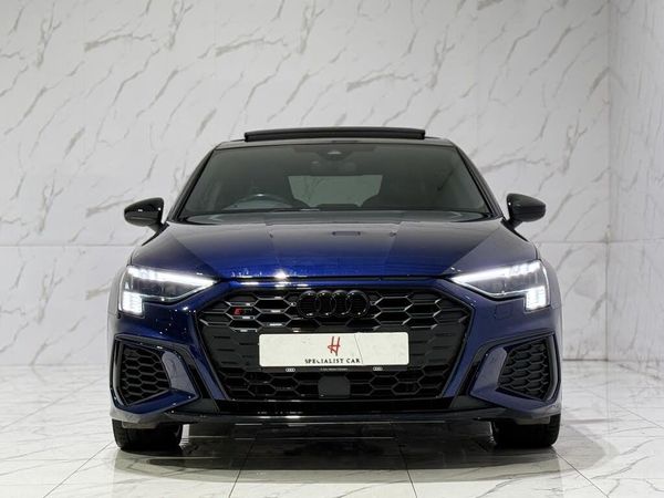 Navarra Blue,12v Socket and Storage Compartment in Front Centre Console,19in Alloy Wheels - 5-Twin Spoke Edge - Anthracite Black - Diamond Cut Finish,2 USB-C Ports with Charge and Data Functions,360 Camera,4-Way Lumbar Support for Front Seats,Airbags - Driver and Front Passenger with Passenger Airbag Deactivation,Aluminium Interior Elements,Anti Theft Locking Wheel Bolts,Anti-Theft Alarm,Audi Beam,Audi Connect Navigation and Infotainment Services Plus (3 Year Subscription From New),Audi Drive Select,Audi Pre-Sense Front with Pedestrian and Cyclist Recognition,Audi Smartphone Interface,Audi Virtual Cockpit Plus,Auto Dimming and Frameless Rear View Mirror,Black Styling Pack,Bluetooth Interface,Brake Calipers Painted in Glossy Black,Cloth Headlining in Black,Collision Avoidance Assistant,DAB Digital Radio,Door Mirrors - Carbon Housing,Door Mirrors - Electrically Adjustable - Heated - Folding - Automatically Dimming with Memory Function and Integrated LED Indicators with Kerb View Function for Passenger Side,Dual-Branch Oval Twin Tailpipes in Chrome-Plated Finish,Dual-Zone Electronic Climate Control,ESC - Electronic Stabilisation Control inc ABS - ASR and EDL,Electric Windows - Front,Electrically Adjustable Front Seats with Memory Function for Drivers Side,Electronically Operated Child Locks,Emergency Call - E-Call,Extended Ambient Lighting Pack,First Aid Kit and Warning Triangle and 2 Safety Vests,Front Side Airbags with Head Airbags and Interaction Airbag,Front Sports Seats,Front and Rear Centre Armrest in Artificial Leather,Front and Rear Floor Mats,Head-Up Display,Hill Hold Assist,I-Size and Top Tether Child Seat Mounting for the Outer Rear Seats,Illuminated Door Sill Trims with Aluminium Inserts and S Logo,Inlays - Carbon,LED Interior Light Package,Lane Change Assistant with Exit Warning System and Rear Cross Traffic Alert,Lane Departure Warning,Light and Rain Sensor,Luggage Compartment Floor Covering,MMI Navigation Plus with High Resolution 10.1in Touchscreen Colour Display,Pedals in Stainless Steel and Footrest in Black,Power Operated Tailgate,Privacy Glass - Dark-Tinted Rear Window - Rear Door and Side Window.,Progressive Steering,Remote Central Locking,S Suspension with Damping Control,S3 Design Body Styling,Seat Belt Monitoring,Split-Folding Rear Seat Bench - can be Split 40-60 or Fully Collapsed,Steering Wheel - 3-Spoke Leather-Multi-Function,Storage Package,Technology Pack Pro,Tool Kit,Tyre Pressure Loss Indicator,Tyre Repair Kit,Voice Control System with Natural Language Interaction,Windscreen with Acoustic Glazing,Windscreen with Heat-Insulating Glass