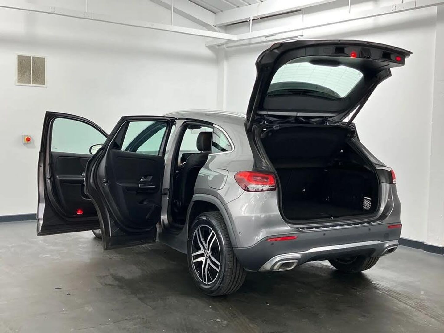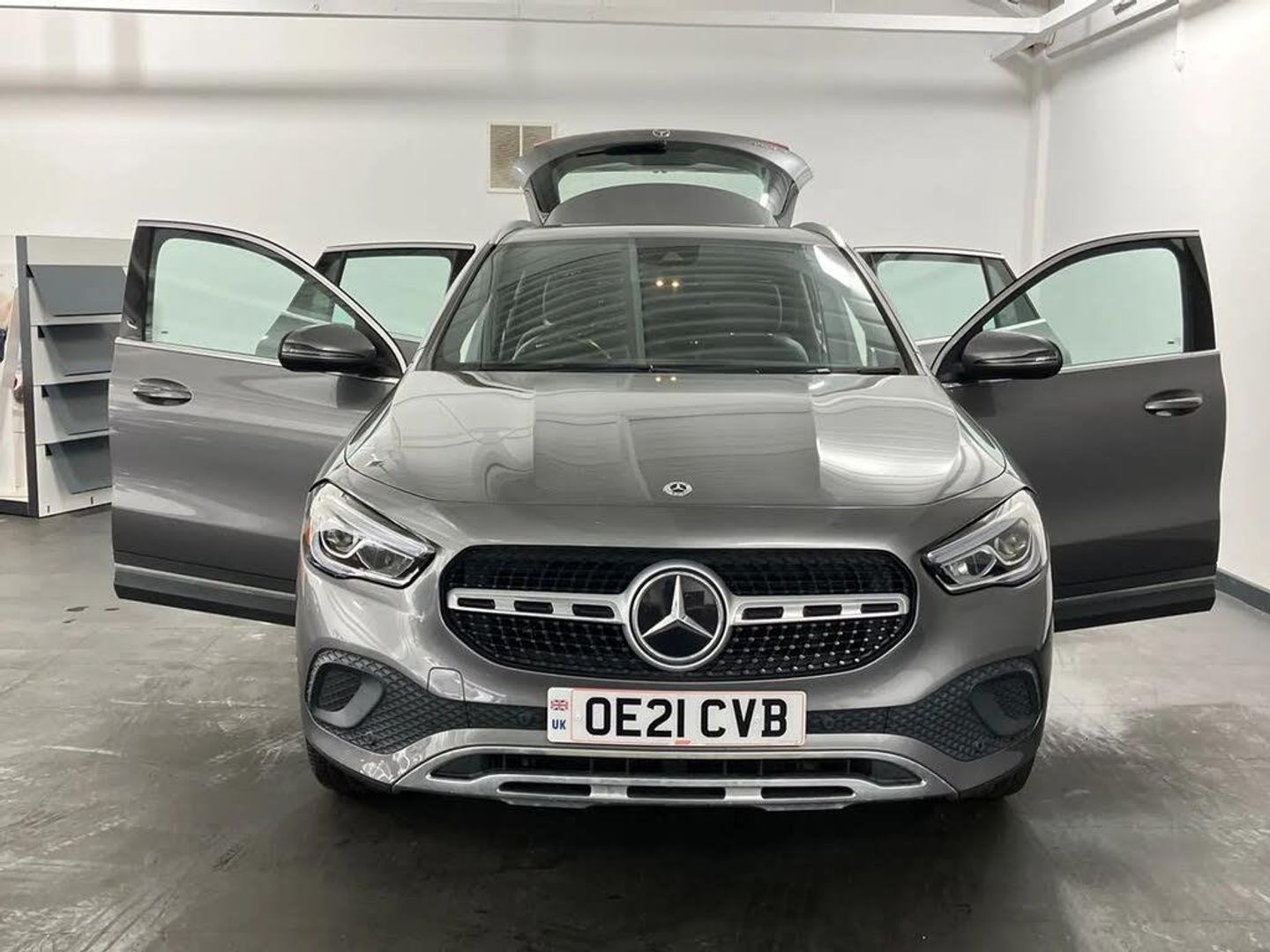 10.25 inch touchscreen central media display,7 inch digital instrument cluster display,Active lane keeping assist,Attention assist,Cruise control + speed limiter,DYNAMIC SELECT with a choice of driving modes (ECO, Comfort, Sport and Individual),ECO start/stop function,Fluid level warning indicator for fuel, oil, coolant and washer fluid,Hard-disk navigation,Hey Mercedes Voice activation,Lamp failure indicator,Mercedes me connect including emergency call system, accident recovery, breakdown and maintenance management,Mercedes me remote services,Multi function trip computer,Outside temperature gauge,Owners manual and service booklet in English,Pre-installation of private car share,Radio aerial integrated into front and rear windshields,Service indicator (ASSYST),Smartphone integration with Apple CarPlay and Android auto,Speed limit assist,Speed sensitive power steering,Status display for rear seat belts in instrument cluster,Comfort suspension,Rear axle multi-link,2 USB ports (type C) in rear stowage compartment and one in front of center console,Bluetooth connectivity including audio streaming,DAB Digital radio,MBUX multimedia system,Media interface,Mercedes-Benz sound system - 100W,Adaptive brake lights,Aerial for GPS,Aluminium roof rails,Automatic headlamp activation,Beltline strips and weather strip in chrome,Black grained claddings with chrome parts,Body colour bumpers,Body colour door handles,Body colour door mirrors,Car wash function,Dark chrome front and rear apron trim,Electric front windows,Electric rear windows,Electrically adjustable and heated door mirrors with integrated LED indicators,Exhaust system with dual flow exhaust pipes (non-functional),Front bumper with underride guard in high gloss chrome,Front door sills with Mercedes-Benz lettering,Heated glass rear windscreen + timer control,Heated windscreen wash system,Interior mirror with black reading lamps and frameless,LED high performance headlamps with integrated LED daytime running lights,LED tail lights in two piece design,LED third brake light,Rain sensor windscreen wipers,Rear fog lights,Rear side wing doors,Rear wiper,Roof spoiler,Simulated body styling underguard in matt chrome,Single lamella radiator grille painted in silver matt with chrome inlay and black dots,12V power socket in centre console,3 seat bench in 2nd row,3 spoke leather multifunction sports steering wheel,40:20:40 split folding rear seat backrests,Adjustable head restraints,Air conditioning - Two zone thermotronic luxury automatic climate control with display,Artico man-made leather/Fleron fabric upholstery,Auto Mercedes-Benz child seat recognition sensor,Black roof lining,Comfort seats,Courtesy light in boot,Floor mats in velour,Front centre armrest with stowage,Gearshift paddles,Heated front seats,Illuminated glovebox,Leather trimmed gearknob,Luggage net on driver/front passenger seat backrest,Manually height and reach adjustable steering column,Multi-gesture touchpad control on center console,Single front passenger seat,Stowage compartment in centre console,Stowage compartment with retractable cover,Sunvisors with illuminated vanity mirrors,Twin front cup holders,Two outer rear seat isofix and top tether child seat fixing points,Comfort seat pack - GLA Class,Interior lighting with light and sight pack - GLA,Load compartment pack - GLA,Mirror pack - GLA Class,Parking pack - GLA,3 rear 3 point seatbelts,ABS with Brake Assist,Active bonnet pedestrain safety measure which detects an impact and raises bonnet by 65mm,Active brake assist includes forward collision warning system with autonomous braking,Adaptive brake assist with hold function and hill start assist,Bonnet with power domes,Brake pad wear warning indicator,Childproof locks manually operated for rear doors and electrically operated for rear power windows,Crash responsive emergency lighting,Driver and passenger head and side airbags,Drivers knee airbag,Dual stage driver/passenger airbags,Electronic parking brake,ESP curve dynamic assist,ESP with ASR,Front and rear seatbelt reminder,Front passenger seat occupancy sensor,Tyre pressure monitoring system,Warning triangle and first aid kit,Window airbags,Alarm system with immobiliser and interior protection -Thatcham category 1,Keyless Go starting function,Remote central locking and crash sensor with emergency opening function,Urban guard vehicle protection,Vehicle key with decorative surround in chrome,Chrome air vent surrounds,Spiral look trim,18" 5 twin spoke light alloy wheels aerodynamically optimised painted in black with a high sheen finish,Summer tyres,Tirefit tyre sealant kit