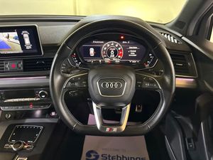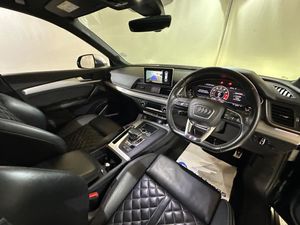 2 x SDXC Card Readers, 2 x USB Charging Ports and 1 x AUX-IN, 20in Alloy Wheels - 5-Twin-Spoke Star Design Contrasting Grey - Diamond Cut, 4-Way Electric Lumbar Support, 6-Airbag System, Aluminium Roof Rails, Aluminium-Effect Door Mirror Housings, Anti Theft Locking Wheel Bolts, Anti-Theft Alarm, Audi Beam, Audi Connect Infotainment Services - 3 Month Trial, Audi Connect Safety and Service - e-call, Audi Drive Select, Audi Parking System Plus, Audi Pre-Sense City, Audi Smartphone Interface, Audi Sound System, Auto-Dimming Rear-View Mirror, Automatic Headlight Adjustment, Bluetooth Interface, Brake Calipers Painted in Black with SQ5 Logo at the Front, CD Drive, Cloth Headlining in Black, Colour Drivers Information System with 7in Display, Contrast Stitching on Seats - Steering Wheel and Gear Lever Gaiter, Cruise Control with Speed Limiter, DAB Digital Radio, Deluxe 3-Zone Climate Control, Door Mirrors - Electrically Adjustable and Heated with Integrated LED Side Indicators, Dynamic Suspension, ESC - Electronic Stabilisation Control inc ABS - ASR and EDL, Electric Boot Lid Release, Electric Windows - Front and Rear, Electrically Adjustable Front Seats, Electromechanical Parking Brake, Electromechanical Power Steering, Email - Calendar and Text Messages can be Displayed on your Vehicles MMI, Extended Interior Upholstery Pack, First Aid Kit and Warning Triangle, Front Centre Armrest, Front Sports Seats with S Embossed Logo, Front and Rear Floor Mats, Gear-lever with Diamond S Badge in Black Leather, Headlights - High-Beam Assist, Heated Front Seats, High Multi-function 3-Spoke Leather Steering Wheel with S Badging and Aluminium Effect Paddles, High-Gloss Package, Hill Descent Control, Hill Hold Assist, ISOFIX Child Seat Mounting and Top Tether, Illuminated Door Sill Trims with S Logo, Inlays - Matt Brushed Aluminium, Key with SQ5 Logo, Keyless Go, LED Headlights with LED Rear Lights and Dynamic Rear Indicators, LED Interior Lighting Pack, LED Rear Lights, Light and Rain Sensor, MMI Navigation Plus including MMI Touch, Pedals in Stainless Steel, Pop-Up Bonnet for Pedestrian Protection, Power Operated Tailgate, Privacy Glass with Acoustic Glazing For Front Windows, Quattro with Self-Locking Centre Differential, Rear Bench Seat Plus, Rear Spoiler, Remote Central Locking, Removable Luggage Compartment Floor, Removable Net Partition, S Dual-Branch Tailpipe Design in Matt Aluminium, S Instrument Dials, S Line Front and Rear Bumpers, S Line Side Skirts, S Lower Front Air Inlet, S Radiator Grille in Matt Twilight Grey with Horizontal Matt Aluminium Struts, S Rear Diffuser in Body Colour with Matt Aluminium Surrounds with Honeycomb Grille in Black, S Side Air Inlet Grille in Matt Titanium Black with Horizontal Inlays in Matt Aluminium, S Suspension - Damper Control, Seat Belt Monitoring, Side and Rear Windows in Heat-Insulating Glass, Split Folding Rear Seat Bench - 40-20-40 with Rear Seat Armrest, Stainless Steel Loading Sill Protector, Tool Kit and Car Jack, Tow Bar Preparation, Tyre Pressure Warning Light, Tyre Repair Kit, Underbody Protection in Body Colour, Voice Control System, Windscreen with Acoustic Glass, quattro On Demand, Audi Phone Box with Wireless Charging, Tour Pack, 21in Alloy Wheels - 5-Twin V Design Contrasting Grey - Diamond Cut, Brake Calipers - Red, Mythos Black, Panoramic Glass Sunroof, Comfort and Sound Package, Fine Nappa Leather - Black with Rock Grey Stitching, Flat-Bottomed 3-Spoke Leather High Multi-Function Steering Wheel, Door Mirrors - Folding, Pre-Sense Basic
