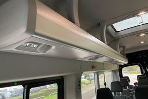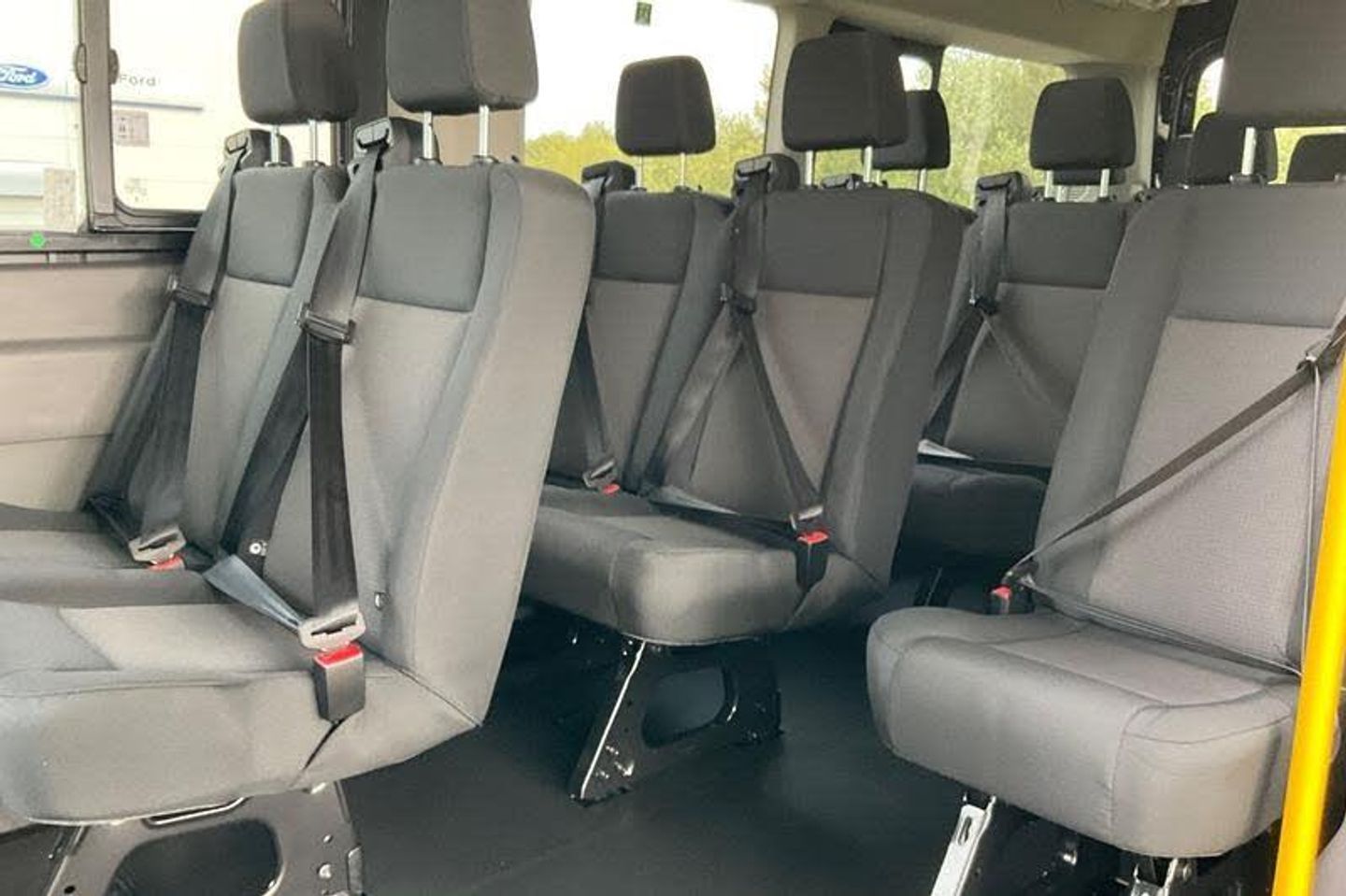 12 touch screen with new SYNC 4 system, REAR VIEW CAMERA shows whats behind you on a screen in front of you on the dashboard - the system activates when you select reverse gear and using virtual guidelines can help you park, QUICKCLEAR HEATED WINDSCREEN uses ultra thin filaments that superheat to de-ice and de-mist your windscreen as well as help de-freeze the wipers and works in seconds, FRONT AND REAR PARKING SENSORS are designed to help you park more confidently helping you judge the distance between your vehicle and obstacles both in front and behind you, Dual power heated signal mirrors, Automatic windshield wiper, Vehicle maintenance monitor, DAB/AM/FM radio with 2 x USB, emergency assistance, Electric windshield defroster, Driver large head/short arm mirror, Electric rear window defroster, Remote central locking, Door open tire carrier drop, Adaptive front lighting system, Front fog lights, Heavy duty battery, Adaptive cruise control, PAS, Centre console, Trip computer, Driver's armrest, 16 steel wheels, Roof mounted aerial, Tool kit, 6 speakers, 2 x 12V power outlets, bluetooth, Tyre pressure monitor, Driver Assistance pack #6P - Transit minibus, Halogen headlamps, Quickclear windscreen, Intelligent Speed Assist, Kerbside side load doors, 8 Part digital instrument cluster, Rake and reach steering adjustment, Part body colour front bumper, Daytime running lights, PTC heater, Power door locks, Configurable unlocking 2, Fixed 3rd row side windows, Side marker lamps, Non limited slip differential front axle, Wheel hub caps, Auto start/stop system, Premium feel steering wheel, Selectable drive mode, Electronic dynamic cornering control, Driver one touch up/down power windows, Lane departure warning system, Two step door unlock system, Dual rear wheel pack 2 - Transit minibus, Header courtesy light with 2 map lights, Complete molded headliner, Load compartment light, Mechanical parking brake, Non locking lug nuts, Rear courtesy light and map light with dim, Exhaust exit behind muff down, Driver front seatbelt buckle pretensioner, Power folding door mirrors, Overhead console, Lane keeping aid, Fire extinguisher fixings, ABS + ESP + Hill start assist, Overhead LED reading lights, Overhead airconditioning vents, Driver and passenger seatbelt reminder, Wide bodyside grey mouldings, Conventional steel spare wheel, Molded gear shift knob, Glove box lid, Rear splash guards, Side/Rear door trim panel - Level 2, Ford easy fuel, Quad beam headlamps, High roof line, Emergency hammer, Plastic rear bumper, Wrong way alert, Flip open 4th row side windows, Rear axle Alt A, Less load compartment loops, 5G Modem, Multi channel door entry remote, Roof mounted radio antenna, Roof Markers Lamps, Standard grille, Auto high lamp headlamp, Wireless beltminders, LED High mounted stop lamp, 62 mph engine governor, LONG WHEEL BASE, HIGH ROOF, Minibus, ULEZ COMPLIANT, ULEZ, NATIONWIDE DELIVERY AVAILABLE, EURO 6, CAMERA