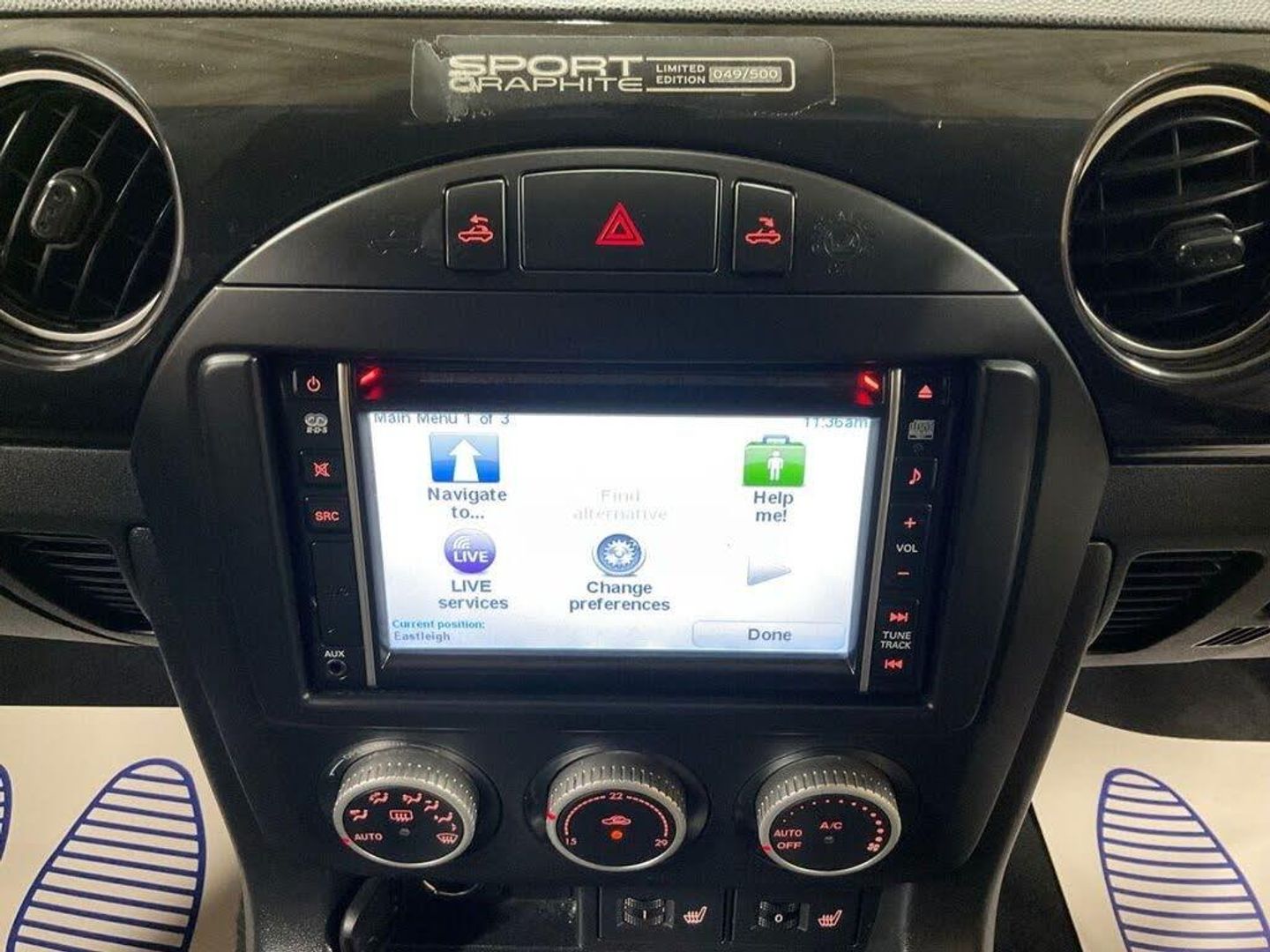 17in Alloy Wheels - Dark Gun Metal, ABS - Anti Lock Braking System, Air Conditioning - Climate Control, Airbags - Driver, Airbags - Front Passenger, Airbags - Front Passenger Deactivation System, Auto Dimming Rear View Mirror, AUX Socket, Bumpers - Body Coloured, Central Locking - Remote with Deadlocking, Cruise Control, Door Handles - Body Coloured, Door Mirrors - Electrically Adjustable - Heated - Body Coloured, Door Mirrors - Meteor Grey, DSC - Dynamic Stability Control, EBA - Emergency Brake Assist, EBD - Electronic Brakeforce Distribution, Electric Windows - Front, Exhaust Tailpipes - Twin, Front Fog Lights, Gear Knob - Leather, Glossy Dark Grey Fashion Bars, Handbrake - Leather Wrapped, Headlights - Black Insert, Headlights - Halogen, Integrated Bluetooth System, Leather Steering Wheel and Handbrake with Grey Stitch, LSD - Limited Slip Differential, Mazda Advanced Impact Distribution and Absorption System - MAIDAS, Pedals - Alloy, Pollen Filter, Power Assisted Steering, Premium BOSE Sound System, Remote Boot Release, Roof - Meteor Grey, Satellite Navigation - 5.8in TomTom System, Scuff Plates - Stainless Steel, Seatback Pocket - Passenger Side, Seats - Drivers Dial Reclining and Height Adjustment, Seats - Front Heated, Seats - Front Sports, Side Airbags, Speakers x7, Sport Suspension - Bilstein Damper, Steering Wheel - Mounted Remote Audio Controls, Strut Brace, Style Bar Trim, TCS - Traction Control System, Thatcham Category 1 Alarm and Immobiliser, Trip Computer, USB and AUX Connection, Windblocker - Standard