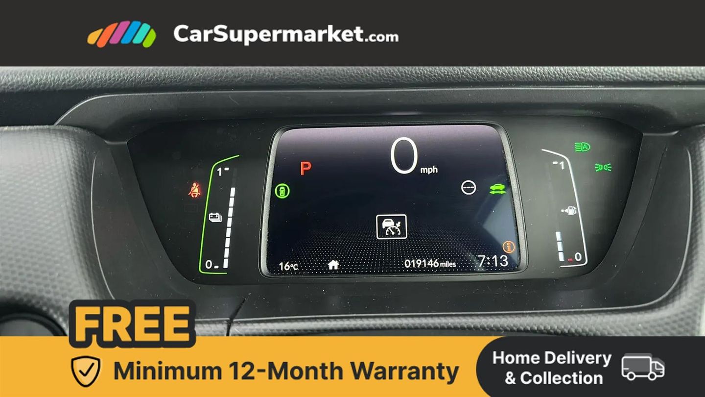 5" Monitor audio (AM/FM),Adaptive cruise control,Adjustable speed limiter,Agile handling assist,Bluetooth hands free telephone connection,eCall emergency call system,Econ mode,Electric power steering wheel with variable gear ratio steering,Emergency stop signalling system,Forward collision warning,Idle stop,Intelligent speed limiter,Lane departure warning system,Lane keep assist system,Low speed following,Multi-information display,Road departure mitigation,Traffic sign recognition,Vehicle stability assist,'Shark fin' mobile antenna,180w Power audio system with 6 speakers,DAB audio,Front USB socket,Remote audio controls on steering wheel,Aspheric door mirrors,Auto wipers,Automatic headlights with on/off timer, Coming/leaving home function,Body colour door handles,Body coloured bumpers,eHEV emblem,Electric adjustable door mirrors,Electric front windows,Heated door mirrors,High beam assist,LED daytime running lights,LED Headlights,LED rear lights,Rear side wing doors,Rear wiper,Silver headlight extension,Single exhaust tailpipe,Third brake light,3 seat bench in 2nd row,60/40 split rear bench seat,Cargo net hooks,Climate control air conditioning,Driver and front passenger seat armrests,Driver's seat height adjustment,Fabric upholstery,Front accessory power socket,Front head restraints,Front map lights,Front/rear courtesy lights,Isofix child seat restraint mechanism,Isofix points,Magic seat flexibility system,Painted door handles,Passenger front seat pockets,Rear head restraints,Rear parcel shelf,Single front passenger seat,Sunvisors with vanity mirrors,Tilt/telescopic adjustable steering wheel,Tonneau cover,Trunk light,3x3 point rear seatbelts,Anti-lock braking system (ABS),Brake assist function,Brake hold function,Child locks on rear doors,Collision mitigation braking system,Deflation warning system,Driver knee airbag,Driver SRS airbag (single stage inflation),Driver/Front Passenger airbags,Electric parking brake,Front and rear seat belt with emergency locking retractor,Front and rear side curtain airbag,Front centre airbag,Front side airbags,Hill start assist,Passenger SRS airbag cut-off device,Rear side airbags,Whiplash lessening front headrests,Honda super locks,Immobiliser,Mirrors key fob operation,Plastic interior panels,15" steel wheels,Tyre repair kit