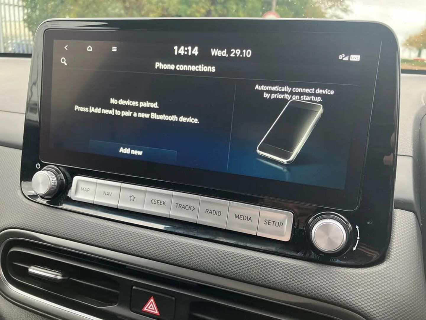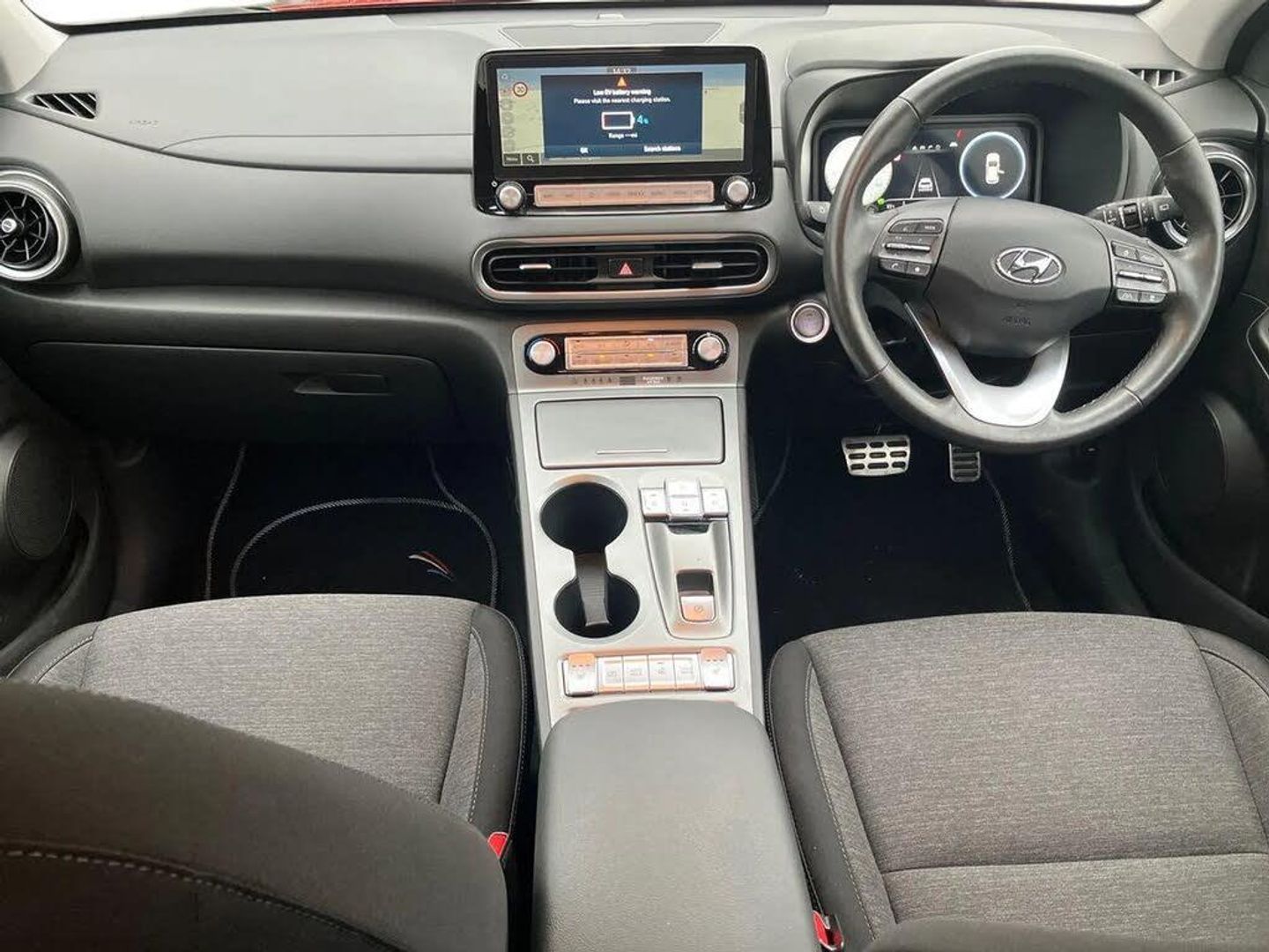 10.25" touchscreen satellite Navigation with Bluelink and Mapcare,Blind spot collision avoidance assist,Bluetooth connectivity with voice recognition,Cruise control - smart adaptive speed control with stop and go function,Digital clock,Drive mode selector,Driver supervision instrument cluster with 10.25" LCD display,eCall emergency call system,Forward collision assist with pedestrian monitoring and cycle detection,Front parking sensor,Intelligent speed limit warning,Lane follow assist,Lane keep assist,Parking system with rear camera and guidance system,PAS,Phone connection with apple carPlay and android auto,Rear cross traffic collision avoidance (RCCA),Rear parking sensor,Roadside assistance,Windscreen washer fluid sensor and warning indicator,Wireless phone charging pad,10.5 kWh 3 Phase On Board Charger,7 pin charging cable,Battery heater,Emergency 3 pin connector charging cable (ICCB),Single speed transmission,Vehicle Stability Control (VSC),Krell premium audio system with 8 speakers and subwoofer,RDS and Digital DAB,Steering wheel mounted audio/phone controls,USB/aux input socket,3rd brake light,Auto dimming rear view mirror,Automatic headlights with dusk sensor,Automatic windscreen wipers with rain sensor,Body colour door mirrors and handles,Door mirror integrated indicators,Electric front/rear windows with drivers one touch/anti-trap,Electrically adjustable and heated door mirrors,Full LED MFR headlights,LED daytime running lights,LED rear lights,Positioning Lights - LED,Power folding door mirrors,Privacy glass - Rear windows and tailgate,Rear side wing doors,Rear wiper,Roof rails,Solar glass with windscreen shade band,Variable front intermittent wipers,3 seat bench in 2nd row,60/40 split folding rear seat,Adjustable head restraints,Ambient lighting,Automatic climate control with defog system for front windscreen,CCS Combo rapid charge port (50kW),Centre interior light,Chrome interior door handles,Cloth upholstery,Door scuff plate,Driver and passenger front seat pockets,Driver's electric adjustable lumbar support,Driver's seat height adjustment,Driver's seat manual adjustment,Driver/passenger sunvisors and illuminated vanity mirrors,Front cup holders,Front interior light,Front passenger seat manual adjustments,Heated front seats,Heated steering wheel,Height/reach adjustable steering column,Leather wrapped steering wheel,Luggage compartment undertray,Rear centre console with air vents,Single front passenger seat,Sunglasses holder,USB charger in centre console,3x3 point rear seatbelts,Airbags - front, front side and curtain airbags,Anti-lock brake system (ABS),Autonomous Emergency Braking with pedestrian recognition,Childproof rear door locks,EBD + Brake Assist,Electric parking brake,Electronic stability control,Fasten seatbelt reminder,Front seatbelt pretensioners,Height adjustable front seatbelts,Hill start assist control (HAC),Passenger airbag deactivate switch,Regenerative brake shift paddles,Tyre pressure monitoring system with individual tyre pressure display,Alarm/immobiliser,Deadlocks,Folding key,Locking wheel nuts,Remote central locking,Smart Key - Keyless entry with Power On/Off button,17" Alloy wheels,Tyre repair kit