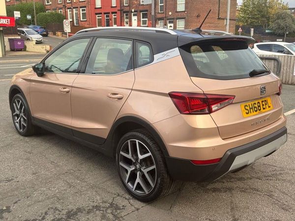 Seat Arona 1.6 TDI XCELLENCE LUX AUTO finished in Rose Gold with a contrast grey roof and sitting on 18" Performance alloy wheels. Only 2 owners from new with comprehensive service history. Excellent spec level includes adaptive cruise control, heated front seats, built-in touchscreen satellite navigation, Bluetooth connectivity, USB & AUX inputs, DAB digital radio, Apple CarPlay, Android Auto, Bose speakers, Wireless phone charge, blind spot warning system, air conditioning, ISOFIX, automatic headlights, push button start, auto headlights, rain-sensing wipers and much much more. Viewings welcome please call 0113 263 6003. FAMILY RUN BUSINESS FOR OVER 30 YEARS -- OVER 150 CARS ACROSS 3 SITES 1/2 MILE APART -- £2000 TO £20,000 STOCK -- ALL OUR CARS COME PDI SERVICED AND MECHANICALLY INSPECTED BY OUR WORKSHOP -- FREE WARRANTY AND 1 YEAR AA BREAKDOWN COVER -- HOME DELIVERY -- ALL CARS HPI CLEAR -- COMPETITIVE PRICE FOR ANY PART EXCHANGE -- LOW RATE FINANCE AVAILABLE -- £99 ADMIN FEE -- RESERVE YOUR CAR TODAY -- VISIT LEEDSMOTORCOMPANY.CO.UK