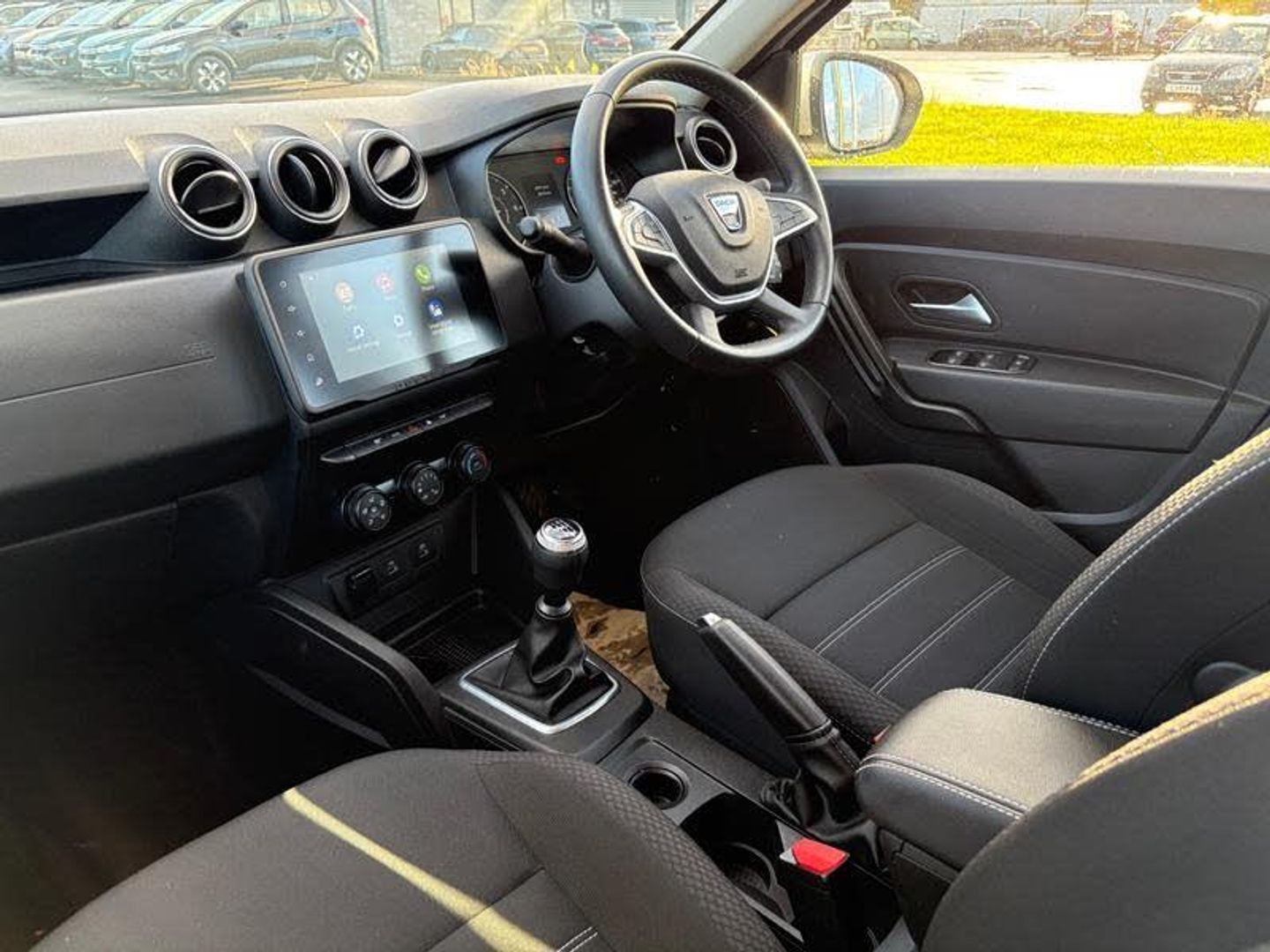 16in Alloy Wheels, 3-Point Rear Seatbelts x3, 3-Speed Front Windscreen Wipers, 7-Function On-Board Computer, 8in Media Display and Smartphone Replication with 2 USB Sockets and 6 Speakers, ASR - Traction Control with ESC - Electronic Stability Control, Air Vents - Satin Chrome, Airbags - Driver, Airbags - Front Passenger with Deactivation Function, Airbags - Front Side, Anti-lock Braking System - ABS and Emergency Brake Assist - EBA, Backlighted Steering Wheel, Body-Coloured Front and Rear Bumpers, Boot Light, Centre Console Fascia - Matt Black, Centre Console Surround, Child Locks in Rear Doors, Cruise Control and Speed Limiter, DRL - Daytime Running Lights, Dacia Plug and Radio - MP3 - USB - Bluetooth - DAB - Steering Wheel Control, Decorative Insert on Door Panels - Front, Door Handles - Body Coloured, Door Mirrors - Heated and Electrically Adjustable, Door Mirrors - Painted Black, Door Open - Visual and Audible Warning, Driver and Passenger Seatbelt Not Fastened - Visual and Audible Warning, Dusk Sensor, ECO Mode, Electric Front Windows with Impulse on Drivers Side, Electric Windows - Rear, Fabric Decorative Insert on Front and Rear Door Panels, Front Door Sill Protection Strip, Front Fog Lights, Front Grille with Hot Stamping, Front Passenger Reading Light, Front Seatbelt Pretensioners, Gear Shift Indicator, Glovebox Light, Headlights - Rear Lights - Front and Rear LED Lights - Y-Shape, Heated Rear Window, Height and Depth-Adjustable Steering Wheel, Height-Adjustable Drivers Seat, Height-Adjustable Front Seatbelts, Height-Adjustable Front and Rear Headrests, High Centre Console with Driver Armrest, High Level Third Brake Light, Hill Start Assist, ISOFIX Points for Child Seats in Both Outer Rear Seats, Interior Door Handles - Front and Rear - Satin Chrome, Lower Steering Wheel Insert - Satin Chrome, Lumbar Seat Adjustment, Manual Air Conditioning, Map Pockets on Front Seatbacks, Power Assisted Steering, Rear Parking Camera, Rear Parking Sensors, Rear Passenger Reading Light, Rear Wash and Wiper, Remote Central Locking, Rev Counter, Roof Bars - Longitudinal with Duster Inscription - Black, Roof Spoiler - CO2 Efficient, Seats - 60-40 Split Folding Rear, Side Sills - Black, Skid Plates - Underbody Protection, Soft Feel Leather Steering Wheel, Steering Wheel - Chrome Logo Surround, Sunvisor with Vanity Mirror - Passenger, Tailgate Trim with Duster Inscription - Black-Satin Chrome, Thatcham Approved Engine Immobiliser, Tinted Windows, Tyre Inflation Kit, Tyre Pressure Monitor
