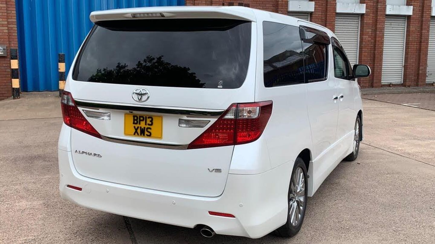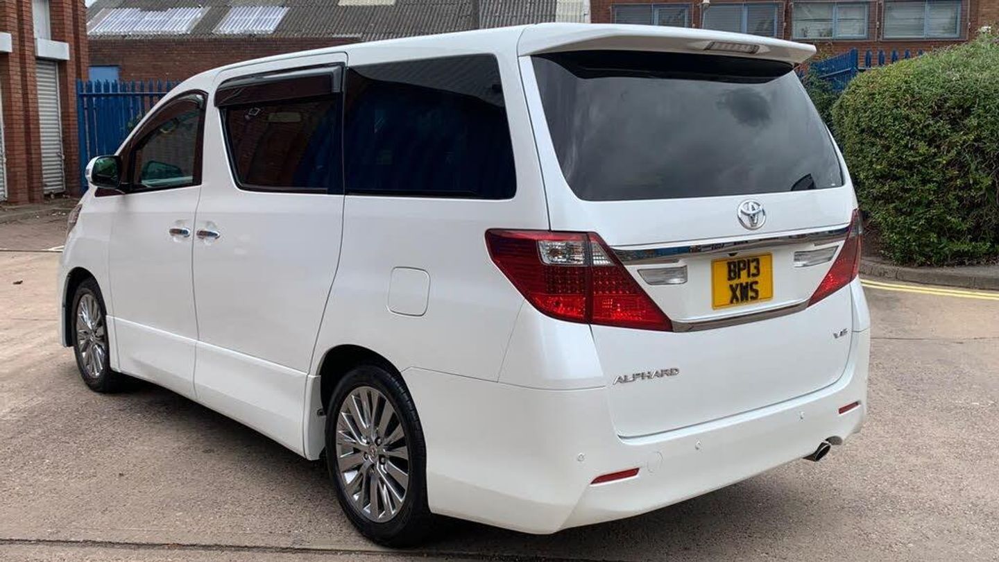 Toyota Alphard Type Gold 2 Edition, 2013 Registration, 3.5 V6 Petrol Engine, Auto, 7 Seats, Twin Sunroof, 42K Miles, Mileage Verified by Auction Sheet and Export Certificate, Car VX Report also can be obtained, Full Japanese Service History, Fresh Japanese Import, Grade 4B, Gold Suede Brown Fabric, Part Leather, Twin Sunroof, Cruise Control, Twin Electric Sliding Doors, Electric Power Boot, Keyless Entry, 2 Keys, Front and Rear Parking Sensors, Alpine Stereo System with Flip Down Alpine Monitor Screen, Storage Boxes, Curtains All Around, Room Lights, 12 Months MOT, ULEZ Compatible, Superb Condition, Drives Very Well, Any Trial Inspection PX Welcome, 6 Months Platinum Warranty with Auto Select Warranties.