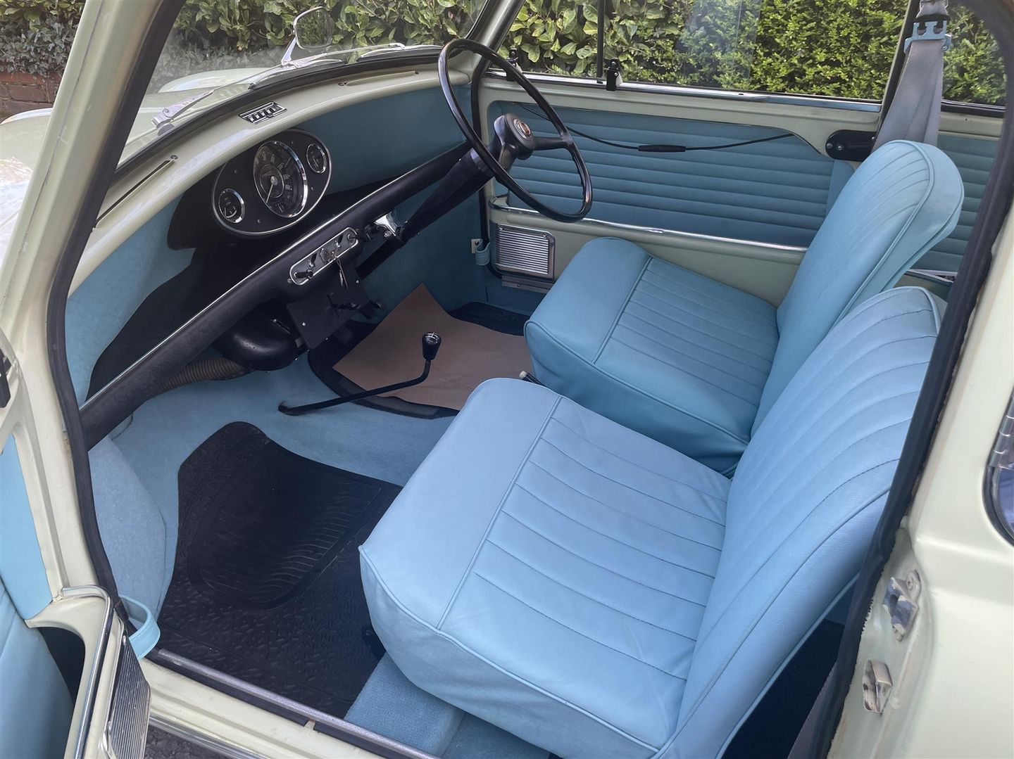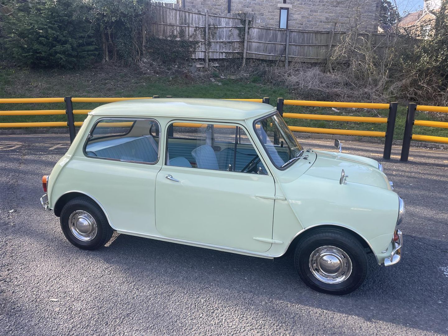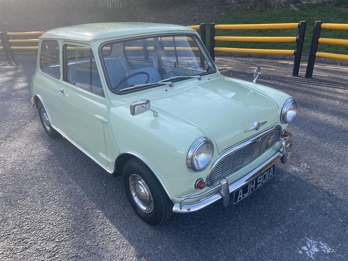 A stunning and very original MINI MINOR in period yellow with blue trim.