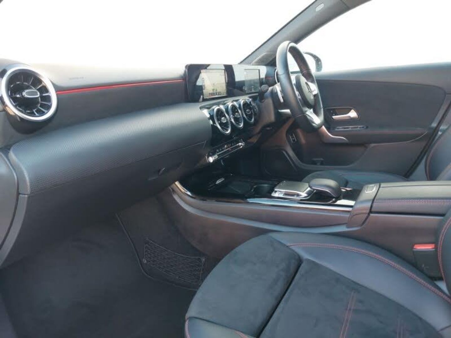 180 degree rear view camera with parking guidelines, Hard-disk navigation, Cruise control + speed limiter, Dual bluetooth interfaces, Two zone thermotronic luxury automatic climate control, DYNAMIC SELECT with a choice of driving modes (ECO, Comfort, Sport and Individual), Lowered comfort suspension, ECO start/stop function, 7" colour screen in instrument panel, 7" touchscreen media display, Active lane keep assist, Attention assist, Brake pad wear indicator warning light, Hey Mercedes Voice activation, 2 USB ports (type C) in rear stowage compartment and one in front of center console, DAB Digital radio, MBUX multimedia system with DAB digital radio and touchpad including satellite navigation, Mercedes-Benz sound system - 100W, Electric adjustable and heated door mirrors with integrated LED side indicators, LED high performance headlamps with integrated LED daytime running lights, 40:20:40 split folding rear seats, Height/reach adjustable steering column, Sports seats with adjustable head restraints, Light and sight pack - A Class, Seat comfort pack - A Class, ABS with Brake Assist, Active brake assist includes forward collision warning system with autonomous braking, Adaptive brake assist with hold function and hill start assist, Electronic parking brake, ISOFIX and top tether child seat fixing points in two outer rear seats, Tyre pressure monitoring system, Alarm system/interior protection/immobiliser, Keyless Go, Remote central locking and crash sensor with emergency opening function