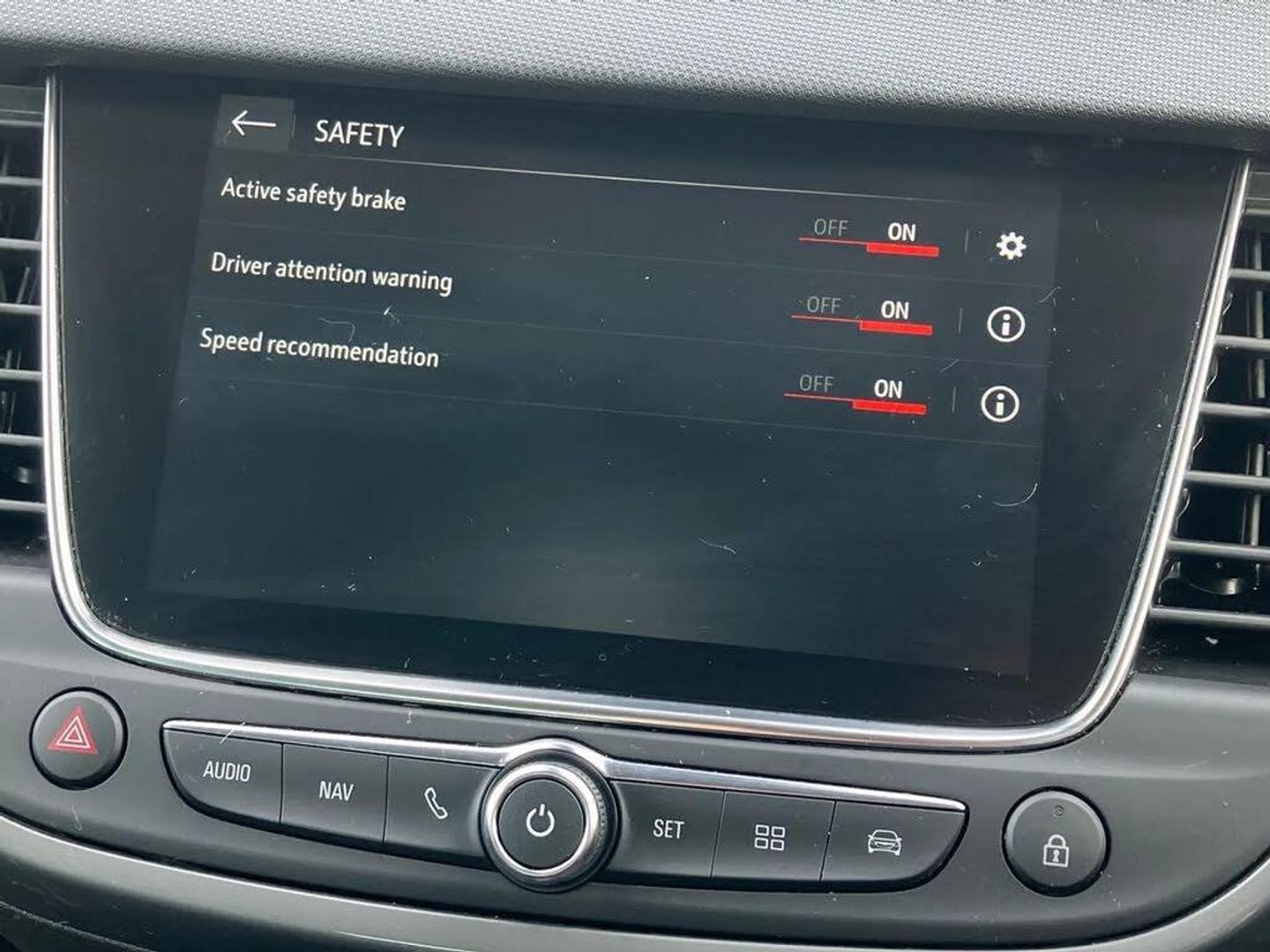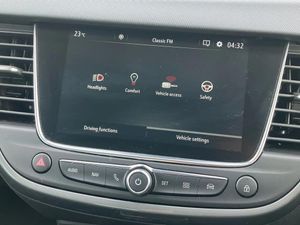 2D/3D street level mapping,3.5" colour instrument display,Advanced parking assist and blind spot detection with front and rear parking sensors,Audible lights on warning,Central facia display - Audio information, Digital clock with automatic RDS time adjustment and outside air temperature with ice warning function,Cruise control + speed limiter,Driver drowsiness alert system,Driver information display - Total mileage, service due indicator, oil life,E-call,European coverage,Forward collision warning,Front camera system,Instrumentation - Speedometer, rev counter, low fuel gauge warning light + water temperature gauge warning light, shift up/down indicate light,Lane departure warning with lane keep assist,Multi function trip computer,Multimedia sat nav pro with 8" colour touchscreen, AM/FM, Bluetooth streaming, Bluetooth mobile phone portal, apple CarPlay/Android Auto + 6 speakers,Panoramic rear view camera,Points of interest search and Map updates via USB,RDS with traffic programme,Refridgerant low indicator,Smartphone projection,SMS read out and reply,Speed sensitive power steering,Speed sign recognition,Start/stop system,Vauxhall connect,Vehicle microphone,Front suspension - Independent, Lightweight MacPherson struts with gas pressure dampers and coil springs with anti-roll bar,Front wheel drive,Rear suspension - Compound crank with coil springs and hydraulic dampers,2 x USB connections,DAB Digital radio,Steering wheel mounted audio/phone/cruise controls,2 speed wipers/wash wipe/intermittent wipe,Automatic anti dazzle rear view mirror,Automatic headlamp levelling system,Automatic high beam control with cornering light,Automatic lighting control,Black door mirror caps,Black griffin logo, vizor frame, rear lettering and skid plates,Body colour door handles,Body colour front and rear bumpers,Chrome effect upper window moulding,Collapsible windscreen wipers,Dark tinted rear side windows + tailgate window,Electrically adjustable, heated and power folding door mirrors,Electrically operated front and rear windows with safety auto reverse and one touch up/down facility,Flexible roof mounted aerial,Hazard warning lights,Headlamps for left side traffic,Heated rear window,Integrated tailgate spoiler,Intermittent rear wash/wipe,LED 3rd brake light,LED daytime running lights,LED front fog lights,LED Headlights,LED side repeat indicators,LED tail lights,Rain sensitive windscreen wipers,Rear fog lights,Rear side wing doors,Reversing light,Side window demist vents,Silver roof rails,Solar heat absorbing windscreen and windows,Upper and lower bumper design,Welcome lighting,Windscreen demist vents,12v power outlet - front,12V power outlets on rear seat,3 seat bench in 2nd row,3 spoke leather covered steering wheel,Air recirculation facility,Alcantara upholstery,Ambient lighting,Anti submarining ramps in front seats,Cabin particulate filter - removes dust, airborne particles and pollen,Centre console storage box with sliding lid,Centre console with two cup holders and open storage box,Chrome effect digital instrument cluster surround,Driver's vanity mirror with flip up cover,Dual zone electronic climate control,Ergonomic active driver’s and front passenger’s seat with AGR approved 8 way adjustable, seat cushion extension, 4 way electrical lumbar adjustment,Fade up/fade down on interior lighting,Four adjustable facia vents,Front and rear central courtesy light,Front centre armrest for drivers seat,Front door pockets with 1.5 litre bottle holder,Front map reading lights,Fully carpeted luggage area,Glovebox with lid,Height adjustable front/rear head restraints,Illuminated load area,Isofix system on outer rear seats,Jet black fabric side bolsters,Luggage compartment cover,Multi-speed fan with Illuminated control,Passenger assist handles,Passenger's illuminated vanity mirror with flip up cover,Reach + rake adjustable steering column,Rear dome lamp,Rear door pockets with 0.5 litre bottle holder,Rear floor ventilation ducts,Satin chrome effect bezel on steering wheel,Single front passenger seat,Storage pockets on front seat backs,Versatility pack - Crossland,Winter pack - Crossland,3x3 point rear seatbelts,ABS,Automatic emergency braking with pedestrian detection,Child locks on rear doors,CSC - Cornering stability control,Deactivate switch for side impact airbags,Deformation zones front and rear,Driver and front passenger airbags,Dual seatbelt pretensioners on front seats,EBD - Electronic brakeforce distribution,Energy absorbing steering column,Engine drag torque control,ESP + traction control,Front side impact airbag,Full size curtain airbags,Hill start assist,Hydraulic Brake Assist (HBA),Hydraulic brake boost,Inertia reel lap and diagonal seatbelts for all seats,Passenger airbag deactivate switch,Rear seat belt pretensioners,Reinforced passenger safety cell,Seatbelt load limiter,Side impact protection beams,Smart seatbelt reminder for front and rear seats,Tyre pressure monitoring system