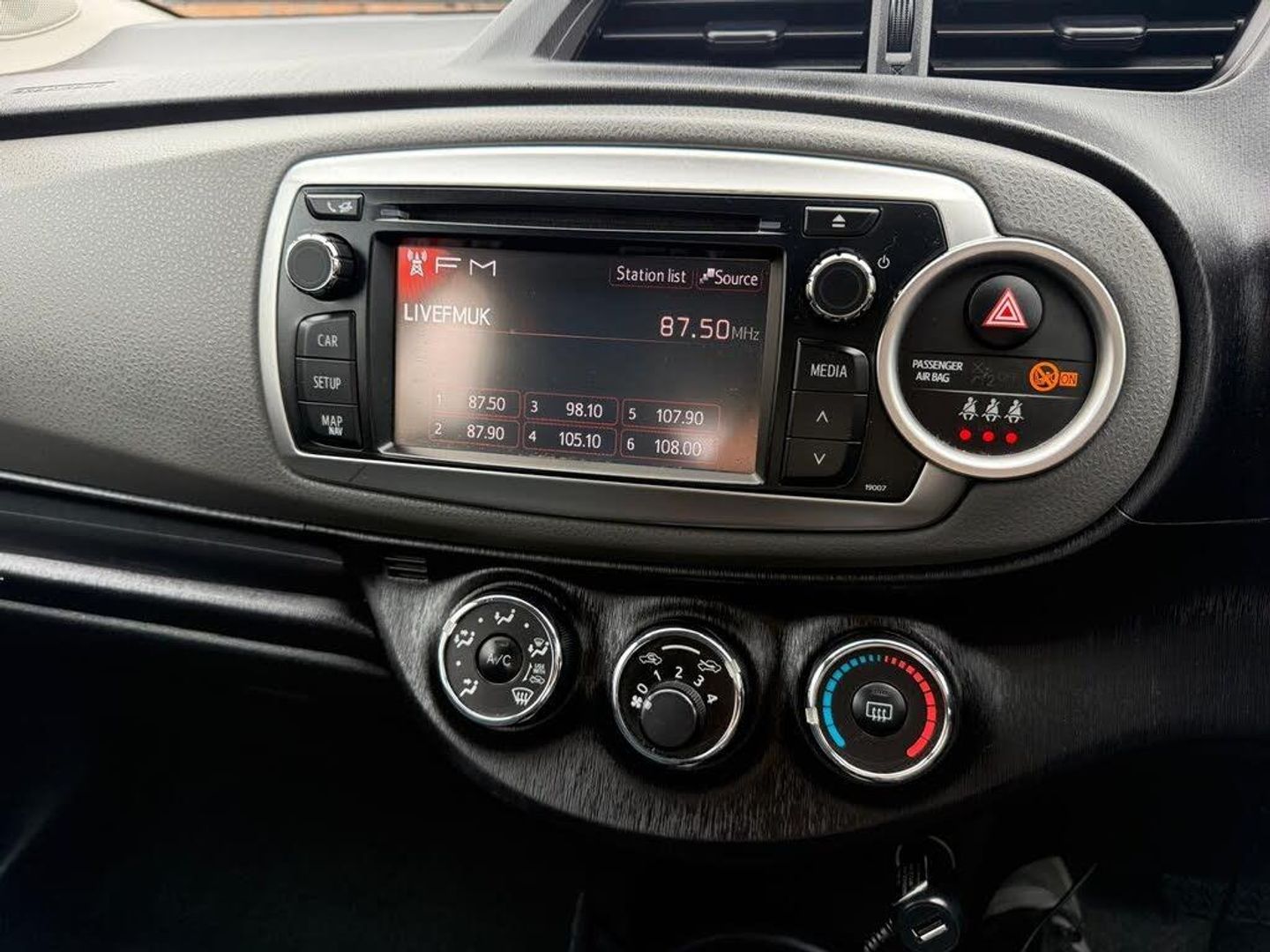 15in Alloy Wheels,Black Lower Front Grille,Chrome Surrounds on Front Fog Lights,Front Power Windows,Space Saver Spare Wheel,3-Spoke Leather Steering Wheel,Active Headrests,Audio Switches on Steering Wheel,Auto Up and Down Function on Drivers Window,Automatic Air Conditioning,Front and Rear Cupholders,Glovebox,Leather Gear Shift,Manual Rear View Mirror,Push Button Start,Rain Sensing Wipers,Rear Headrests x3,Seats - Drivers Height Adjustment,Seats - Sliding Front,Soft Touch Inner Door Garnish,Soft-Touch Instrument Panel,ABS - Anti Lock Braking System,Emergency Brake-Light Signal - EBS - Hazard Type,Front Passenger Airbag On-Off Switch,HAC - Hill Start Assist Control,ISOFIX Fixing Points,Immobiliser,Remote Door Locking,Seat Belt Reminder - Front and Rear,Supplemental Restraint System - SRS - Airbags - 7 Airbags,Toyota Safety Sense,VSC - Vehicle Stability Control,Bluetooth Connectivity,DAB Digital Radio,Speakers x6,TFT Colour Display,Toyota Touch 2,Cruise Control,Electric Power Steering -