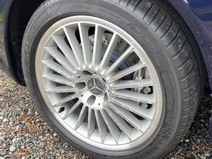 The colour is Tanzanite Blue paintwork with contrasting Alpaca Grey leather, Designo alcantara interior trims and light carpets. This Mercedes has the panoramic glass vario roof, parktronic system, ventilated and multi contour seating, Bi-xenon headlamps, CD Changer, alarm system, AMG body-styling, book pack and two keys.