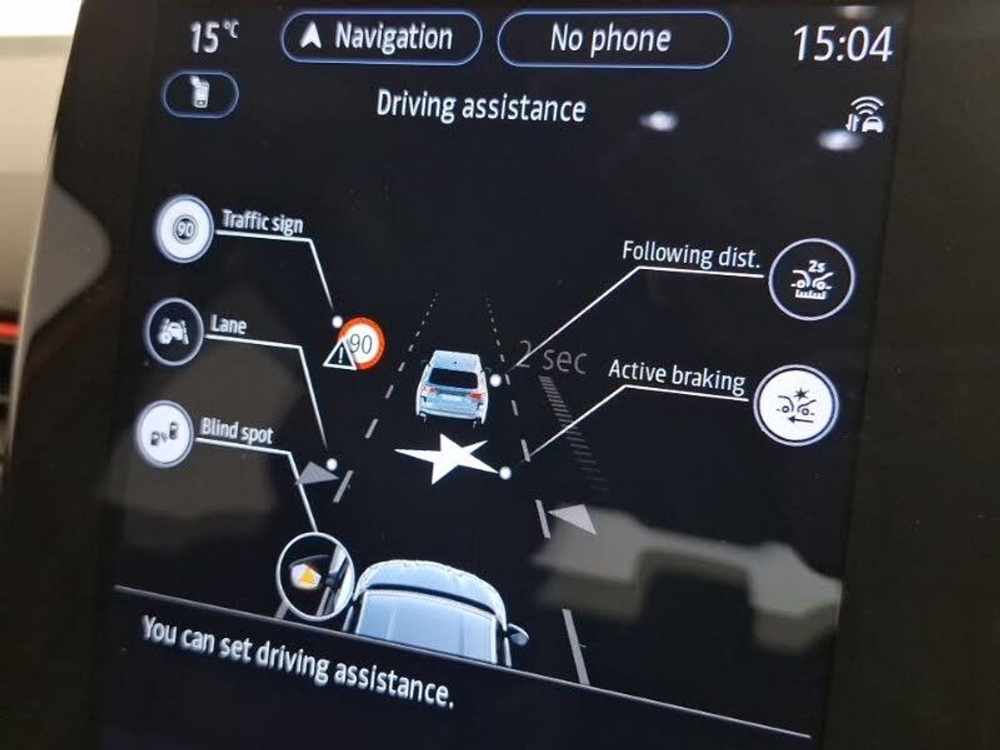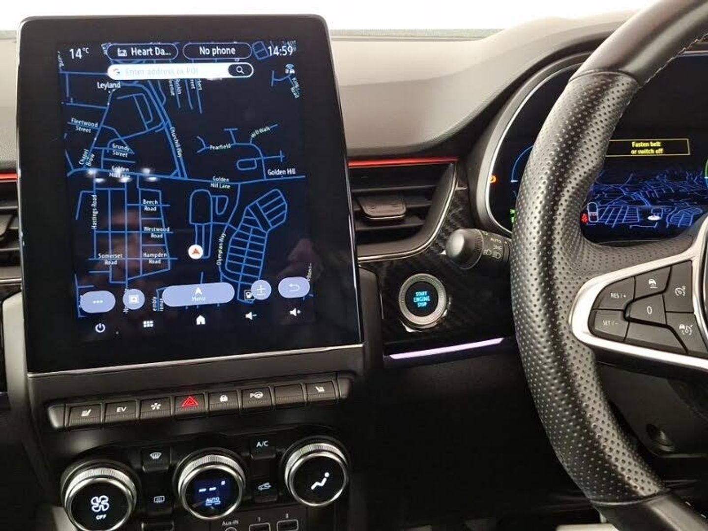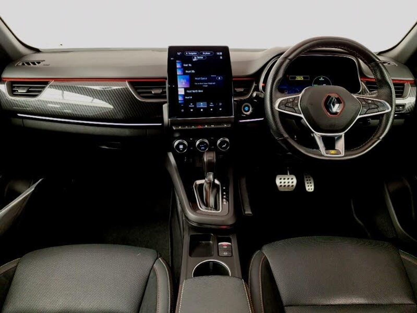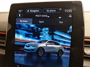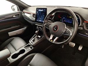 EASY LINK 9.3" portrait touchscreen with navigation, Google search and traffic information, Smartphone integration compatible with Apple CarPlay and Android Auto, Blind spot warning, Automatic climate control with combined filter, humidity sensor and AQS, Bluetooth system, Eco mode, Front and rear parking sensors, Lane departure warning, Lane keep assist, Multi-sense - 3 driving modes and 8 ambient lighting, Rear cross traffic alert, Rear view camera, Traffic sign recognition with over speed prevention, Wireless phone charger, DAB radio, Automatic headlights, Automatic windscreen wipers with rain sensor, Extra tinted rear windows and tailgate, Full LED headlights, R.S. Line badges on front wing and hatch door, Side mirrors adjustable electrically, electrically foldable, with defrosting and temperature sensor, automatically foldable at vehicle closure, Rain sensor, ISOFIX child seat fixing points on rear outermost seats, Parking Pack - Hands-free parking & flank protection - Arkana, Winter pack - Arkana, Hill start assist, 18" Silverstone diamond alloy wheels with red inserts