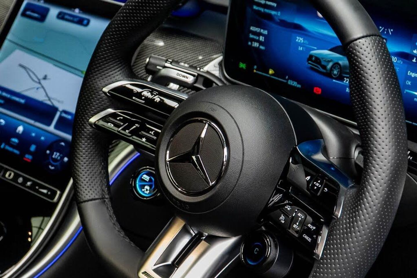 11.9in High Resolution Multimedia Colour Display, 12.3in Digital Individually Configurable Instrument Display, 2 USB-C Ports Under the Front Centre Armrest - Suitable for Data Transfer, 20in Alloy Wheels - AMG 5-Twin-Spoke Design - Light Alloy - Painted Tantalite Grey with a High-Sheen Finish, ABS - Anti-Lock Braking System, AMG Bodystyling - Front and Rear Apron - Side Skirts, AMG Dynamic Select with a Choice of Driving Modes - Comfort-Sport-Sport Plus-Slippery and Individual, AMG Lip Spoiler, AMG Steering Wheel Buttons, ATTENTION Assist, Active Bonnet - Pedestrian Safety Measure which Detects an Impact and Raises Bonnet, Active Brake ASSIST PLUS, Active Parking Assist including PARKTRONIC, Adaptive Brake Assist with Hold Function and Brake Drying Function, Adaptive Brake Lamps, Agility Control - Sports Suspension with Adaptive Damping System, Ambient Lighting, Automatic Child Seat Recognition Sensor, Brake Calipers with Mercedes-Benz Lettering, Burmester 3D Surround Sound System, Central Locking with Interior Switch - Automatic Locking and Crash Sensor with Emergency Opening Function, Childproof Locks - Manually Operated for Rear Doors and Electrically Operated for Rear Power Windows, DAB Digital Radio Tuner, Dashboard - ARTICO Man-Made Leather, Dashcam, Dual-Stage Airbags - Driver and Front Passenger - Sidebags in Front Seats - Driver Kneebag - Pelvis Bag and Windowbags for Driver - Front Passenger and Rear Passengers, ESP - Electronic Stability Programme, Electric Panoramic Glass Sunroof, Electric Parking Brake, Electric Windows - 4 - With One-Touch Opening and Closing - including Obstruction Sensors, Electronic Key - Chrome Surround, Exhaust System - Two Round Twin Tailpipe Trim Elements in High Gloss Chrome, Extended MBUX Functions, Exterior Mirrors - Heated and Electrically Adjustable, Fingerprint Sensor, First Aid Kit and Warning Triangle, Floor Mats - Black with AMG Lettering, Front Door Sill Panels - Illuminated, Front Seats - Electrical Height and Backrest Adjustment and Four-Way Lumbar Adjustment, Full LED Tail Lights, GUARD 360 Vehicle Protection, Gearshift Paddle on Steering Wheel, Head-Up Display, Headlamps - LED Digital Lamps with Projection Function, Heat and Noise Insulating Acoustic Glass, Heated Front Seats, ISOFIX Child Seat Attachment Points with Top Tether in Rear, Interior Lighting Package, KEYLESS GO - Keyless Comfort Access Feature, Luggage Net in Boot and Folding Box Under Luggage, MBUX Augmented Reality for Navigation, MBUX Navigation Premium, MBUX Voice Control Activated by Keywords - Hey Mercedes, Memory Package, Mercedes Me Connect - Vehicle Set-Up and Vehicle Monitoring, Mirror Package, Outside Temperature Display, Parking Package with 360-Degree Camera, Powerdomes in Bonnet, Pre-Installation for Digital Key Transfer, Radiator Grille - Diamond Grille with Integrated Mercedes-Benz Star - Chrome Pins, Radio Aerial Integrated into Rear Window, Remote Boot Release, Remote Services, Residual Engine Heat Utilisation, SPEEDTRONIC Cruise Control and Variable Speed Limiter, Seat Belts - Red, Seat Comfort Package, Seats - AMG Sports, Seats - Rear Split Folding 40-20-40, Service Indicator ASSYST, Smartphone Integration, Sound Personalisation, Sports Direct-Steer System with Speed Sensitive Steering, Sports Pedals in Brushed Stainless Steel with Rubber Studs, Status Display for Rear Seat Belts in Instrument Cluster, Steering - Rear Axle, Steering Column - Electrically Adjustable for Height and Reach, Steering Wheel - 3-Spoke AMG Steering Wheel in Black Nappa Leather, Steering Wheel - Multi-Function with Audio and Onboard Settings Control, Stowage - Double Cup Holder in Centre Console, Stowage - Front Centre Armrest with Stowage Compartment, Stowage - Illuminated Glove Compartment, Stowage Package, Summer Tyres, Sun Visors with Illuminated Vanity Mirrors, THERMOTRONIC - Automatic Climate Control - Four-Zone, TIREFIT with Tyre Inflation Compressor, Tinted Glass All Round - Green, Top Surround of Side Windows
