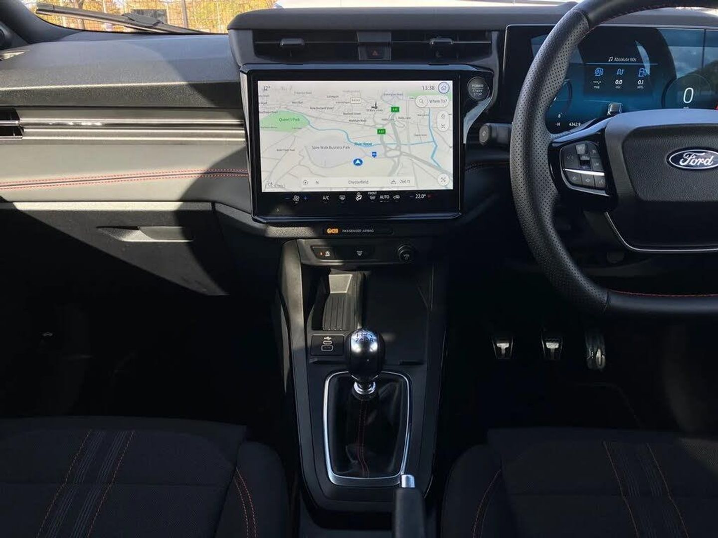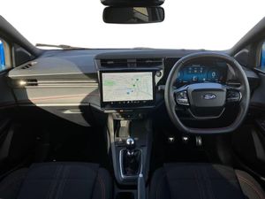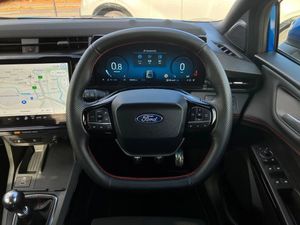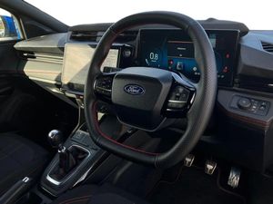 Driver impairment monitor,Emergency call service,Ford easy fuel,Full digital 12.8" instrument cluster,Lane keeping aid with lane departure warning,Power assist steering,Selectable drive modes(Normal, sport, Eco, trail, slippery),Speed sign recognition,Sport suspension,12" landscape touchscreen display with wireless apple car play and android auto 6 speaker audio system,Ford pass connect and emergency assistance,Ford SYNC4 with connected navigation,Automatic headlights with rain sensing wipers and auto high beam,Front fog lamps,LED daytime running lights,LED rear lamps,LED third brake light,Power foldable heated door mirrors with puddle lamps and puma logo protection,Quickclear heated windscreen,Rear privacy glass,Rear side wing doors,Rear wiper,ST-Line body styling kit with unique grille,3 seat bench in 2nd row,Centre console with armrest and stowage,Electronic automatic temperature control (EATC),Ford megabox extended bootspace,Front and rear head restraints,Front floor mats,Manual 4 way driver seat adjust with lumbar adjustment,Single front passenger seat,ST- Line cloth trim with red stitching,3 rear seatbelts,Child safety lock,Electronic stability control (ESC) and hill start assist,Pre-collision assist with autonomous emergency braking, pedestrian/cyclist detection & post-collision braking,Tyre pressure monitoring system (TPMS),Thatcham alarm,Cloth - Black with Red Stitching