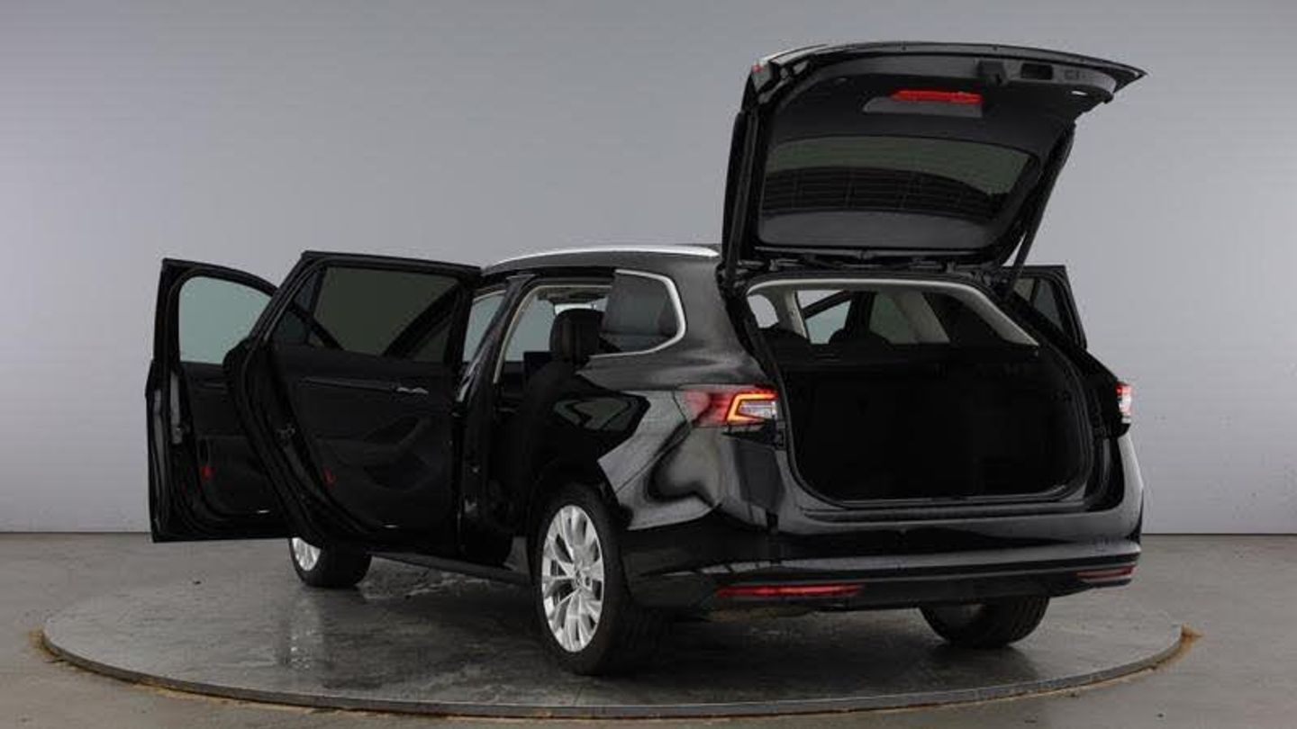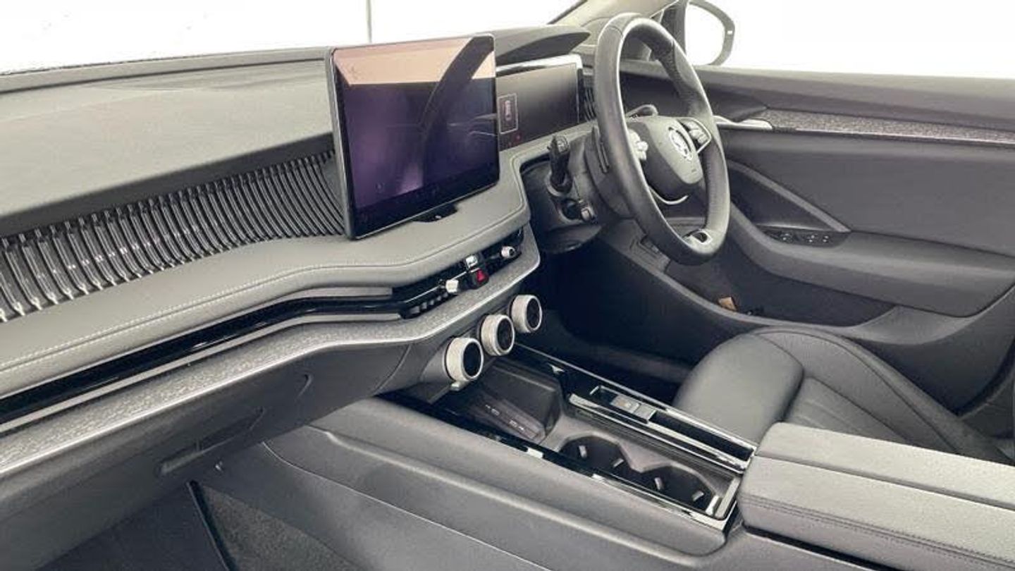 Body colour door handles, Chrome window surround, Rear side wing doors, Unique dark chrome grille surround with dark chrome rib elements, 3rd brake light, Dynamic range control with poor weather light and integrated fog light, Light assistant (coming/leaving home/tunnel light), Rear fog lights (x2), ESC including ABS, EBV, MSR, ASR, EDS, HBA, DSR, RBS, CBC, multi-collision brake (MKB) and Auto hold, Adaptive cruise control with speed assist, lane assist plus and traffic tram assist, PAS, Body coloured door mirrors, Electrically adjustable, heated, folding and driver side auto-dimming door mirrors with memory function, integrated indicators and logo projection, 3 rear seatbelts, 8 Airbags - Front driver and passenger, front side driver and passenger, centre, curtain front and rear, drivers knee, Driver and passenger seatbelts with warning light, Power operated child lock in rear doors, 4x USB-C ports (2x in front centre console and 2x in rear) (45W), Bluetooth system, CareConnect and Emergency Call, Voice control system, DAB Digital radio, 13 touchscreen display with satellite navigation, Stop/start engine system, Wireless charging for one smartphone (15W) with cooling function, Virtual Cockpit - 10.25 digital display, Wireless smartlink apple carplay, SmartLink+ android auto, Decorative front door sills, 14-way electrically adjustable, memory, front seats with 4-way pneumatic lumbar support, and extendable thigh support with smart comfort entry aid, 3 seat bench in 2nd row, 60:40 Split folding rear seats, Front sports comfort seats, Height adjustable front and rear head restraints, Height adjustable front passenger seat, Isofix child seat fittings on outer rear seats, Single front passenger seat, Storage pockets on back of front seats, Tri zone climate control, 12V socket 1x centre console 1x boot, 2 spoke multifunction steering wheel with DSG paddles, Bottle holders in the front doors 1.5 litre bottle and rear 1.5 litre bottle, Cup holder in front with easy open mat, Ice scraper, Umbrella in driver's door, Front and rear footwell illumination, Illuminated glovebox, Interior lights with control switches, LED front and rear reading lights, Multi colour ambient lighting, Sun visors with illuminated vanity mirrors, Light and view package - Superb, Transport package - Superb Estate, Alarm with interior monitoring tilt sensor and back up horn, Electronic engine immobiliser, Keyless start/stop, Remote central locking with SAFE system, Third key, Walk away locking, Tow bar preparation, [Audio and Communications]FM radio connection, Web radio connection, 12V socket and 2x cargo elements in boot, [Drivers Assistance]Blind spot detection with door exit warning, Rear view camera with washer, Traffic sign recognition, Driver fatigue sensor, [Exterior]Acoustic side windows and interior noise suppression, Front windscreen with heat-insulating glass, Privacy glass, Chrome roof rails, Rear spoiler, [Illumination]Light assist with High beam control, [Interior]Windscreen wipers with rain sensor, Backdrop lighting, Frameless auto-dimming rear view mirror with USB-C, Display cleaner, Electrically operated boot with virtual pedal, Advanced massage function for front seats, Heated and ventilated front seats, 4x foldable bag hooks in boot, Front armrest with storage box, Ticket holder on A Pillar, Backrest remote release from trunk, [Safety and Security]Rear windscreen wiper, Electronic parking brake, Hill hold assist, Front assist with extended predictive pedestrian protection, Front cross traffic assist, Turn assist with evasive assistance, Crew protect assist