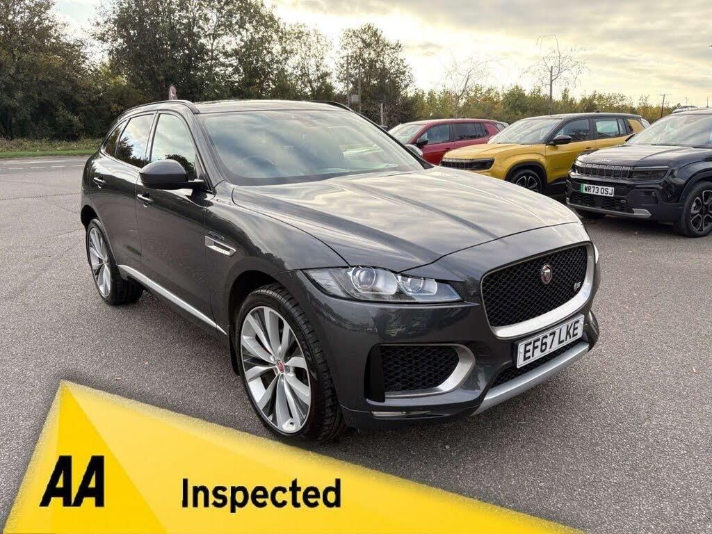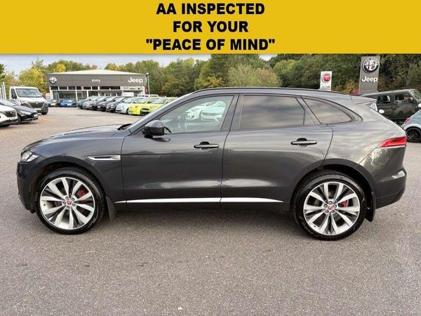 10-Way Electric Front Seats, 2-Zone Climate Control, 20in Alloy Wheels - 5 Spoke Style 5035 with Grey Diamond Turned Finish, 22in Alloy Wheels - 15 Spoke Style 1020 with Grey Finish and Contrast Inserts, 3-Flash Lane Change Indicators, 350mm Front Brakes, 40-20-40 Split Fold Rear Seat, 5in Display with Instrument Panel, ABS - Anti-locking Braking System, Adaptive Dynamics, AEB - Autonomous Emergency Braking, Airbags - Front Side, Airbags - Full Length Side Window Curtain, Ambient Interior Lighting, Approach Illumination, ASPC - All Surface Progress Control, Auto-Dimming - Power Fold - Heated Door Mirrors with Approach Lights, Auto-Dimming Interior Rear View Mirror, Bluetooth Audio Streaming, Bluetooth Telephone Connectivity, Brake Pad Wear Indicator, Bright Metal Pedals, Centre Console - Side Stowage, Centre Console - Storage Surround Finishers - Satin Chrome, Centre Console with Armrest, Configurable Dynamics, Corris Grey, Cruise Control with Speed Limiter, Digital Audio Broadcast - DAB - Radio, Door Mirrors - Body Coloured, Door Trim - Luxtec, Dual Tailpipes with 84mm Finishers, Dynamic Stability Control and Traction Control, Dynamic Volume Control, EBA - Emergency Brake Assist, Ebony Morzine Headlining, ECO Driving Style Assistant, Electric Windows - Front and Rear with One-Touch Open-Close and Anti-Trap, EPAS - Electric Power Assisted Steering, EPB - Electronic Parking Brake - Drive Away Release, Fixed Panoramic Roof, Front Airbags with Passenger Seat Occupant Detector, Front Fog Lights, Front Headrests - S Branded Embossing, Front Parking Aid, Gloss Black Roof Rails, Gloss Black Side Window Surround, Grained Black Radiator Grille with Satin Chrome Surround, Green Tinted Glass, Hazard Lights Under Heavy Braking, Heated Front Seats, Heated Front Windscreen, Heated Rear Window, Hill Launch Assist, Hook in Loadspace, InControl Apps, Interior Front Door Handles with Separate Locking Switches, ISOFIX Rear, Jaguar Script and Leaper, Jaguar Tyre Repair System, JaguarDrive Control, Keyless Entry, Lane Departure Warning, LED Tail Lights, Loadbay - Luggage Tie Downs, Lockable Glovebox with Jaguar Script Finisher, Luxtec Wrapped Instrument Panel Topper, Manually Adjustable Steering Column, Meridian Sound System - 380W, Meshed Aluminium Trim Finisher, Metal Treadplates with S Branding, Navigation System, Outside Temperature Gauge, Overhead Lighting Console, Passive Front Head Restraints, Perimeter Alarm, Power Boot Lid, Power Operated Child Locks, Power Sockets, Power Tailgate, Premium Carpet Mats, Protect for Warranty Period, Push Button Start, Rain Sensing Windscreen Wipers, Rear Air Vents, Rear Armrest with Twin Cupholders, Rear F-Pace Badge, Rear Fog Lights, Rear Parking Aid, Rear View Camera, Red Brake Calipers, Remote Premium for Warranty Period, Reversible Boot Floor - Carpet-Rubber, S Badge Front and S AWD Badge Rear, S Body Kit, S Branded Soft Grain Leather Steering Wheel, Satin Chrome Side Power Vents, Satin Chrome Touchscreen Surround, Seat Belt Reminder, Seats - Sports, Second Row Centre Headrest, Single View 8in Touchscreen for Touch, Speed Proportional Steering, Start Up Sequence with Movement - Dials and Lighting, Steering Wheel - Multi-Function, Steering Wheel - Satin Chrome Paddles, Torque Vectoring, Traffic Sign Recognition with Intelligent Speed Limiter, Trailer Stability Assist, Trip Computer, Twin Front Cupholders with Cover, Tyre Pressure Monitoring System, Valet Mode, Variable Intermittent Wipers, Vehicle Immobiliser, Wi-Fi Hotspot, Xenon Headlights with LED Signature