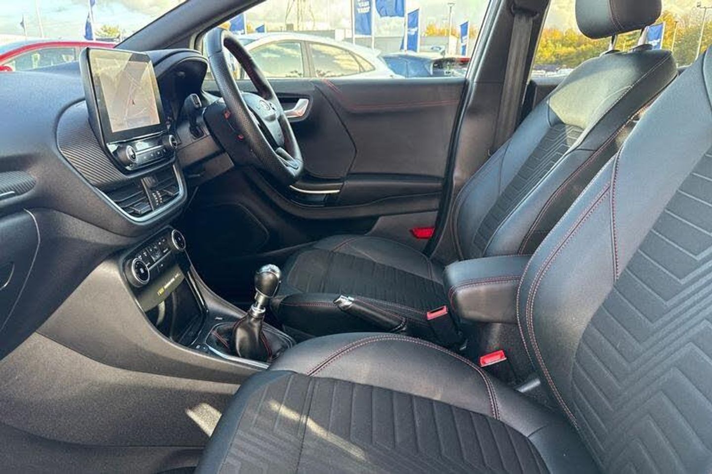 18in Alloy Wheels - 5-Spoke - Matt Black Machined Finish, ABS - Anti-lock Braking System, Acoustic Laminated Windscreen, Active Grille Shutter, Automatic Dimming Rear View Mirror, Automatic Headlights with Rain-Sensing Wipers and Auto High Beam, B&O Premium Audio System and Ford SYNC 3 Navigation, Carbon-Look Interior Deco Spears, Centre Console - Premium with Openable Stowage Area with USB Connectivity - 2 Cupholders and 12v Power Point, Courtesy Lights - Ambient LED Courtesy Lighting - Single Colour, Cruise Control with Intelligent Speed Assist, Drivers Manual 4-Way Seat Adjustment with Manual Lumbar Adjust, ESC - Electronic Stability Control and Hill Start Assist, Ecoboost Hybrid Tailgate Badge, Electric Windows - Front and Rear, Electronic Air Temperature Control - EATC, Emergency Brake Warning - Automatic Hazard Warning Lights, First Aid Kit Strap, Floor Mats - Front and Rear, Ford MegaBox Extended Bootspace, Ford Power Starter Button, Front Bumper - Unique ST-Line Sport Design - Body Colour, Front Fog Lights with Cornering lights and LED Rear Lamps, Front Seats - Sports Style, Full Digital 12.3in Instrument Cluster, Gear Knob - Aluminium, Handbrake - Black Sensico Trimmed with Stitching, Headliner - Deluxe, Instrument Panel - High Level, Intelligent Speed Assistance, Lane Keeping Aid with Lane Departure Warning, Large Rear Spoiler - Body Colour with Centre High Mounted Stop Light, Locking Wheel Nuts, Lower Bodyside Moulding - Body Colour, Passenger 4-Way Seat with Lumbar Adjustment, Post Collision Braking, Power Steering, Power-Foldable Heated Door Mirrors with Puddle Lamps, Pre-Collision Assist with Autonomous Emergency Braking and Pedestrian-Cyclist Detection, Privacy Glass, Projector Headlamps with LED Daytime Running Lights, Puma Badge, Quickclear Heated Windscreen, Rear Bumper Body Colour - Diffuser, Rear Parking Sensors, Rear Seats - 2-Way Head Restraint Up-Down, Rear Seats - Second Row 60-40 Folding Seats, Remote Central-Double Locking, Restrain Device Pack, ST-Line Badge, ST-Line Body Styling Kit, ST-Line Flat-Bottomed Leather Steering Wheel with Unique Red Stitching, Selectable Driving Modes - Normal - Eco - Sport - Slippery and Trail, Soft-feel Gearshift Boot with Red Stitching, Speed Limiter, Sports Suspension, Tailgate - Manual, Thatcham Alarm, Traction Control and Emergency Braking Assistance, Trip-Fuel Computer, Tyre Inflation Kit, Tyre Pressure Monitoring System - TPMS, Wireless Charging Pad with Electronic Air Temperature Control EATC