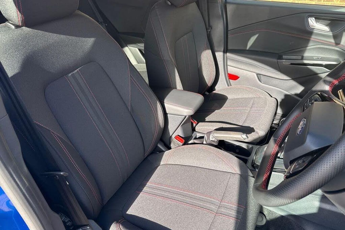 Cloth - Black with Red Stitching, Comfort Pack, 12in Landscape Touchscreen Display - Wireless Apple CarPlay and Android Auto - 6 Speakers - Ford SYNC Navigation - FordPass Connect and Emergency Assist, 17in Alloy Wheels - 5x2 Spoke - Black Machined Finish, ABS - Anti-lock Braking System, Airbags - Driver and Front Passenger, Automatic Headlights with Rain-Sensing Wipers and Auto High Beam, Cruise Control with Intelligent Speed Assist, Drivers Manual 4-Way Seat Adjustment with Manual Lumbar Adjust, Electric Windows - Front and Rear, Electronic Automatic Temperature Control - EATC, Ford MegaBox Extended Bootspace, Ford Power Start Button, Instrument Cluster - 12.8 Full Digital, LED Headlights with Daytime Running Lights, LED Rear Lights, Lane Keeping Aid with Lane Departure Warning, Passengers Seat - 2-Way, Power Steering, Power-Foldable Heated Door Mirrors with Puddle Lamps and Puma Logo Projection, Pre-Collision Assist with Autonomous Emergency Braking and Pedestrian-Cyclist Detection, Privacy Glass - Rear, Quickclear Heated Windscreen, Rear View Camera with Rear Parking Sensors, ST-Line Body Styling Kit with Unique Grille and Large Body Colour Rear Spoiler, Selectable Driving Modes - Normal - Eco - Sport - Slippery and Trail, Sports Suspension, Tailgate - Manual, Tyre Inflation Kit