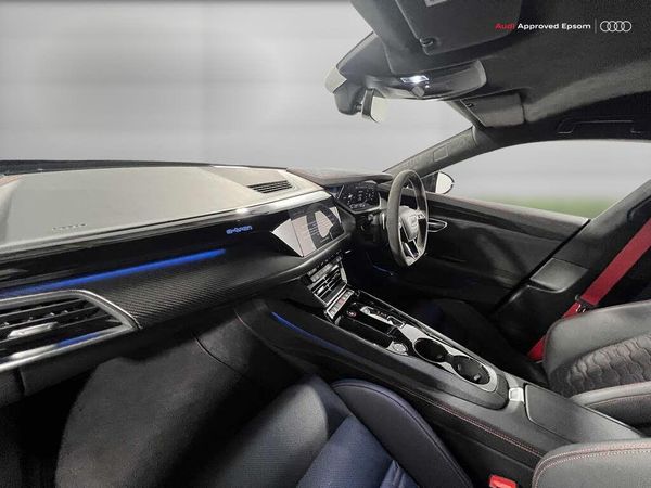 All wheel steering, Audi connect safety and service (e-call), Audi drive select, Audi phone box light with wireless charging, Audi virtual cockpit with 12.3" colour display, Audi wireless smartphone interface and app store with alexa integration, Bluetooth interface, Electromechanical power steering plus, Lane departure warning system, MMI navigation plus with MMI touch + MMI search, Navigation system with 10.1" colour display, Night vision assistant, Power operated tailgate, Traffic sign recognition, 11KW onboard charger, AC access point on drivers side and second AC and DC charging access point on passenger side, Adaptive air suspension, Compact e-tron charging system, E-tron sport sound, Household plug type G (GB), Industry plug CEE 32 A/230 V straight, Mode 3 AC charging cable, Quattro all wheel drive with torque vectoring, quattro with regulated rear-axle differential lock, Bang & Olufsen premium sound system, DAB Digital radio, Acoustic glazing for front and rear side windows, Active rear spoiler, Carbon mirror housings, Carbon roof, Daytime running lights, Electrically adjustable heated and folding + automatically dimming exterior mirrors with memory function, Fixed panoramic glass roof, Frameless auto dimming interior rear view mirror, Illuminated front and rear gloss carbon door sill trims inlays with RS logo at the front, LED 3rd brake light, LED rear lights with dynamic light configuration and dynamic indicators, Matrix LED headlights with Audi laser light, dynamic light sequencing and dynamic indicator, Privacy glass, Radiator grille painted in body colour, Rear boot, Rear side wing doors, Windscreen with heat insulating and acoustic glazing, 2 USB C ports with data and charging function in the front, 2 USB ports with charging function in the rear, 3 bench rear seats in 2nd row, 3 zone climate control, 40:20:40 split folding rear bench seat, Centre rear armrest with cup holder, Comfort remote pre conditioning, Driver seat memory function, Electric steering column with memory, Headlining in black dinamica microfibre, Heat pump, Heated front and rear seats, ISOFIX and i-Size child seat mounting with top tether for the outer rear seats, Massage and ventilation function for front seats, Shaped outer rear seats and an additional centre seat with manually height-adjustable head restraints, Single front passenger seat, Stainless steel pedals and footrest, Sunvisors with illuminated vanity mirrors, Vehicle inlet Combo 2, Ambient Lighting Package plus - e-tron GT, City assist pack - e-tron GT, Gloss carbon styling pack - e-tron GT, Parking assistance pack with remote parking pilot - eTron GT, RS Design pack - e-tron GT, Tour pack - e-tron GT, Acoustic vehicle alerting system, Audi pre sense front and basic, Child locks on rear doors, Driver and front passenger airbags, Front and rear side airbags and head airbag system, Tyre pressure monitoring system, Warning triangle and first aid kit, Anti theft alarm with tow away protection, Anti-theft wheel bolts and wheel loosening detection, Keyless Go, Tyre repair kit