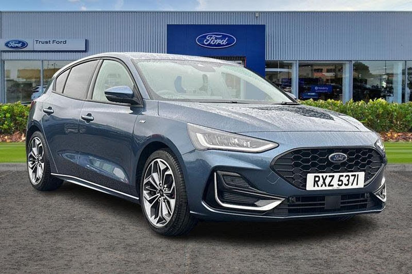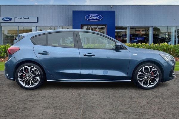 12.3 Digital instrument cluster, Bluetooth system, Digital clock, Easy fuel capless refuelling system, Eco mode, Ford SYNC4 Nav with 13.2'' touchscreen, DAB, Emergency Assistance, Apple Carplay & Android Auto, B&O Premium Audio with 10 speakers, FordPass Connect, Lane keeping system - lane keeping alert and lane keeping aid, PAS, Rev counter, Selectable drive mode, Service interval indicator, Trip computer, Wireless charging pad, Auto headlamps (on/off), Body coloured door handles, Electrically operated front and rear windows with one touch opening and closing, Electrically operated heated power fold door mirrors with puddle lamp with side indicators, Front variable intermittent wipers with electric wash, Heated rear window, LED daytime running lamp, LED rear lamps, LED third brake light, Polished twin tailpipe, Privacy glass, Quickclear heated windscreen, Rain sensor, Rear side wing doors, Tailgate wash/wipe, Unique ST-Line grille, full bodystyling kit, and large body coloured rear spoiler, 3 rear headrests, 3 seat bench in 2nd row, Dual zone electronic air temperature control, Full sensico premium upholstery, Height adjustable front headrests, Isofix child seat preparation, Load through ski hatch, Manual 4-way passenger seat adjusts, Power 4-way driver seat adjust, with power lumbar adjust, Reach + rake adjustable steering column, Single front passenger seat, 3x3 point rear seatbelts, ABS+Electronic Brake force Distribution, Auto hold function, Driver airbag, EDL traction control, Electronic parking brake, Electronic stability control, Front and rear seatbelt reminder, Front inertia reel height adjustable seatbelts with pre-tensioners, Front passenger airbag, Front side airbags, Passenger airbag deactivate switch, Post collision braking, Pre collision assist with autonomous emergency braking and pedestrian/cyclist detection, Red brake calipers, Remote/power child rear door locks, Side curtain airbags, Three rear inertia reel lap/diagonal seatbelts, Tyre pressure monitoring system