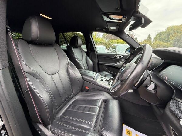 20GB Hard Disc Drive HDD Memory, 22in Alloy Wheels - M Light V-Spoke Style 747 M Bicolour with Mixed Tyres, Active Guard Plus, Active Protection, Adaptive Air Flap Control Bar - High-Gloss Black, Adaptive M Suspension, Air Conditioning - Automatic with 2.5 Zone Control, Airbags - Driver - Front Passenger- Rear and Side, Alarm System - Thatcham 1 with Remote Control and Engine Immobiliser, Ambient Interior Lighting, Armrest - Front and Rear Integrated into Door Trim, Attentiveness Assistant, Automatically Dimming Rear View Mirror, BMW Connected Package Professional, BMW ConnectedDrive Online Services, BMW Individual High-Gloss Shadowline, BMW Individual Roof Rails High-Gloss Shadow Line, BMW Legal Emergency Call, BMW Live Cockpit Professional, BMW TeleServices, Brake Force Display, Brake System, Brake-Pad Wear Indicator, Centre Armrest - Rear - Foldable with 2 Cupholders and Storage Compartment, Centre Console includes Storage Compartment, Centre Lock Switch - Driver and Front Passenger Door, Child Seat ISOFIX Attachment - Outer Rear Seats - includes Top Tether, Closing System with Central Locking, Compartment in Front of Cupholder, Crash Sensor - Activating Central Locking Release - Hazard Warning Lights - Fuel Cut Off - Interior Lighting and Activation of the Safety Battery Clamp, Cruise Control with Brake Function, Cup Holders - Front x2 and Rear x2, DAB Tuner, DSC - Dynamic Stability Control - Stabilises the Vehicle in Extreme Situations - Controls Traction, Daytime Running Lights - LED, Deformation Zones - Front and Rear, Door Pockets - Front and Rear, Door Sill Finishers with Illuminated M50d Designation - Front and Rear, Drive Performance Control with ECO PRO - Comfort and Sport, Dynamic Brake Lights with LED Technology, EPS - Electric Power Steering with Servotronic, Electric Windows - Front and Rear with Open-Close Fingertip Control - Anti-Trap Facility and Comfort Closing Function, Electrical Steering Column with Adjustable Height and Length, Electro-Mechanical Parking Brake with Automatic Drive-Away Release and Auto-Hold Function, Exhaust Tailpipes - Single - Left and Right - Cerium Grey, Expanded Exterior Mirror Package, Exterior Mirror Housing - Cerium Grey, Favourite Buttons, First Aid Kit and Warning Triangle, Follow Me Home Headlight Function, Footwell Lights - Front, Head Airbags - For First and Second Row Seats, Head Restraints - Front Anti-Whiplash, Headlights - Adaptive LED, Headlining - Anthracite, Heated Windscreen Washer Jets, Instrument Panel in Sensatec, Interior Light - Rear Centre, Interior Trim - Aluminium Tetragon, Kidney Grille - Cerium Grey, Knee Airbag, LED Fog Lights, LED Rear Lights, Light Inside Glove Compartment, Lockable Glove Compartment, Luggage Compartment - Light, Luggage Compartment Floor Panel with Integral Storage Tray, M Aerodynamic Bodystyling, M Badge on Left and Right Side Panels - Cerium Grey, M Leather Steering Wheel, M Seat Belts, M Specific Key, M Specific Pedals, M Specific Steering Wheel, M Sport Braking System, M Sport Differential, M Sport Exhaust System, M50d Badge on Tailgate - Right - Cerium Grey, Make-Up Mirror Lights, Mechanical Childproof Lock - Rear Doors, Multi-Function Controls for Leather Steering Wheel, Multifunctional Hooks, Non Smokers Package, OBC - On Board Computer, Oil Sensor For Level and Grade, PDC - Park Distance Control - Front and Rear, Parking Assistant, Passenger Seat Airbag Deactivation - Front, Passive Protection for Pedestrians, Power Sockets 12v - 2x Centre Console - 1x Luggage Compartment, Rain Sensor with Automatic Headlight Activation and Windscreen Wiper Control, Reading Lights - Front, Safety Battery - Terminal Clamp, Seat Adjustment - Front Electric with Driver Memory, Seat Back with Flap Pocket, Seat Belts Front and Rear - Seat Belt Tensioner - Front and Outer Rear Seats - Belt Force Limit, Seat Heating for Driver and Front Passenger, Side Elements - High Gloss Black, Side Gill - Cerium Grey, Side Impact Protection, Side Window Graphics - Satin Aluminium, Speaker System - Harman Kardon, Speed Limit Display, Speed Limiting Function, Split Folding Rear Seats 40-20-40 Configuration, Sport Seats for Driver and Front Passenger, Start-Stop Toggle - Diamond-Shaped Trim Finisher in Pearl Chrome, Storage Tray and Compartment with Lid in Centre Console, Sun Visors with Illuminated Vanity Mirrors, TPMS - Tyre Pressure Monitoring System, Tailgate Automatic - Two Part Top-Hinged Section Which Can Be Opened Separately and Manual Bottom-Hinged Section, Third Brake Light - Spoiler, Toolkit Located in Luggage Compartment, Two Tone Horn, Tyre Repair Kit, USB Connection - USB Type A 1.5A in Cupholder - USB Type C 3A in Centre Armrest, Welcome Light Carpet, WiFi Hotspot Preparation, X5 on Tailgate - Left, iDrive Touch Controller with Shortcut Buttons, xDrive Designation on Tailgate - Right, Active Air Stream Kidney Grille, Enhanced Bluetooth Telephone Preparation with Wireless Charging, Exterior Mirrors - Electrically Adjustable - Automatic Parking Function - Heated and Drivers Anti-Dazzle, Launch Control, Locking Wheel Bolts, M Specific Floor Mats, Outer and Centre Air Intakes on Front Bumper - High-Gloss Black with Pearlescent Chrome Finish, Passenger Seat Occupancy Sensor For Driver and Passenger Side, Sport Button, Steering Wheel - Gearshift Paddles, Telephony with Wireless Charging, Perforated Vernasca Leather - Black-Black, Sun Protection Glazing, Technology Package