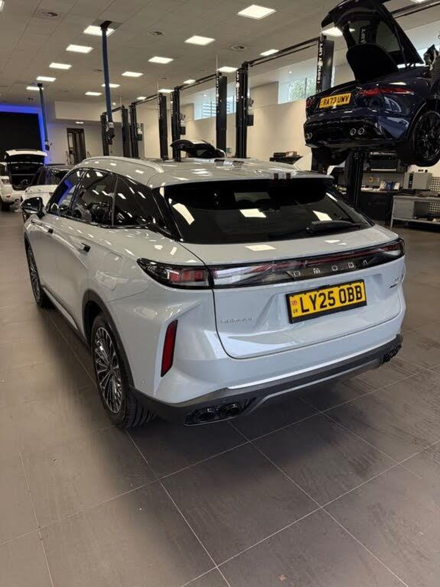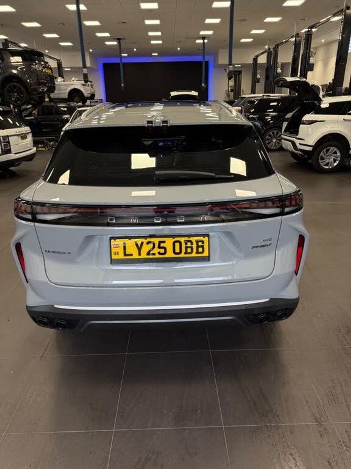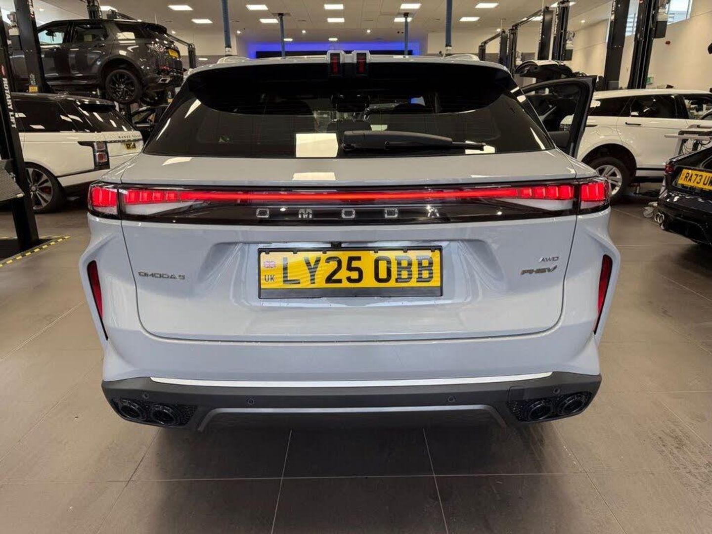 This 2025 Omoda OMODA 9 T SHS Noble is a unique find, being a single owner vehicle. It boasts a 1.5 litre petrol plug in hybrid engine paired with a Four Wheel Drive drivetrain, meeting Euro 6 emission standards. This Noble trim level comes equipped with automatic headlights featuring auto high beam functionality, alongside LED headlights for enhanced visibility. For convenience, it includes Bluetooth hands free connectivity and air conditioning with a second row outlet. Parking is made easier with a comprehensive system of six front and six rear parking sensors. Experience impressive performance with this Omoda OMODA 9, capable of accelerating from 0 to 60 miles per hour in just 4.9 seconds, a figure that sets it apart from many similar vehicles. Furthermore, the generous boot space offers practicality for all your needs, indicating its superior versatility compared to other cars in its class.
