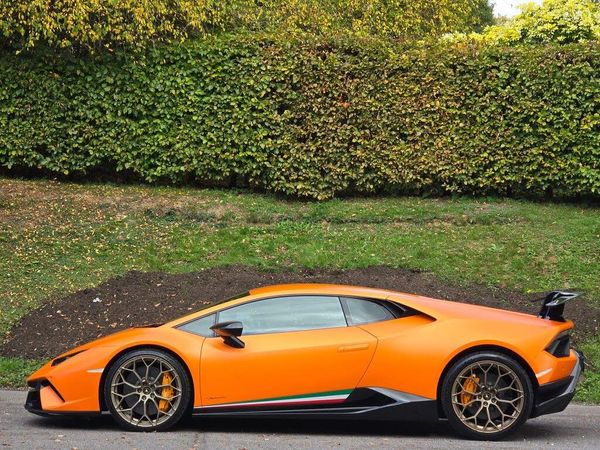 This 2018 Lamborghini Huracan V10 LP 640-4 Performante is a remarkable example of Italian engineering. Featuring a potent 5.2 litre petrol engine and a sophisticated four wheel drive system, this Euro 6 compliant supercar offers exhilarating performance. The Performante trim level enhances the already impressive Huracan, bringing with it a suite of advanced features. These include the Lamborghini Sound System Sensonum for an immersive audio experience, full LED lighting for superior visibility, and comprehensive parking assistance with front and rear sensors and a rear view camera. Connectivity is also seamless thanks to Bluetooth preparation for hands free calls.The performance of this Huracan is truly exceptional, with a breathtaking 0-62mph acceleration time of just 2.9 seconds. This rapid acceleration demonstrates the advanced engineering and power delivery that sets this model apart from its contemporaries. The combination of its potent V10 engine, advanced drivetrain, and aerodynamic design ensures a driving experience that is both thrilling and precise, making it a standout choice for any discerning driver.This model is 1 of 199 world wide finished in Colour - Arancio Anthaeus matteOnly 199 Incredible specification from factory Includes Front lift Cruise control Reverse camera Dark Chrome package Full alcantara interior Lamborghini logo and sticking to the seats Light weight forged narvi wheels finish in bronze Full lamborghini service history Just had a full service at lamborghini less than 1k miles ago 1 year extended warranty comes included cost £3800 2 keys Full ppf paint protection film This is truly a stunning example and not to missed.Part exchange welcome Great finance options available Visit our website or give us a call to arrange a appointment to view Vgperformancecars.co.uk-RARE COLOUR + 1 YEAR WARRANTY