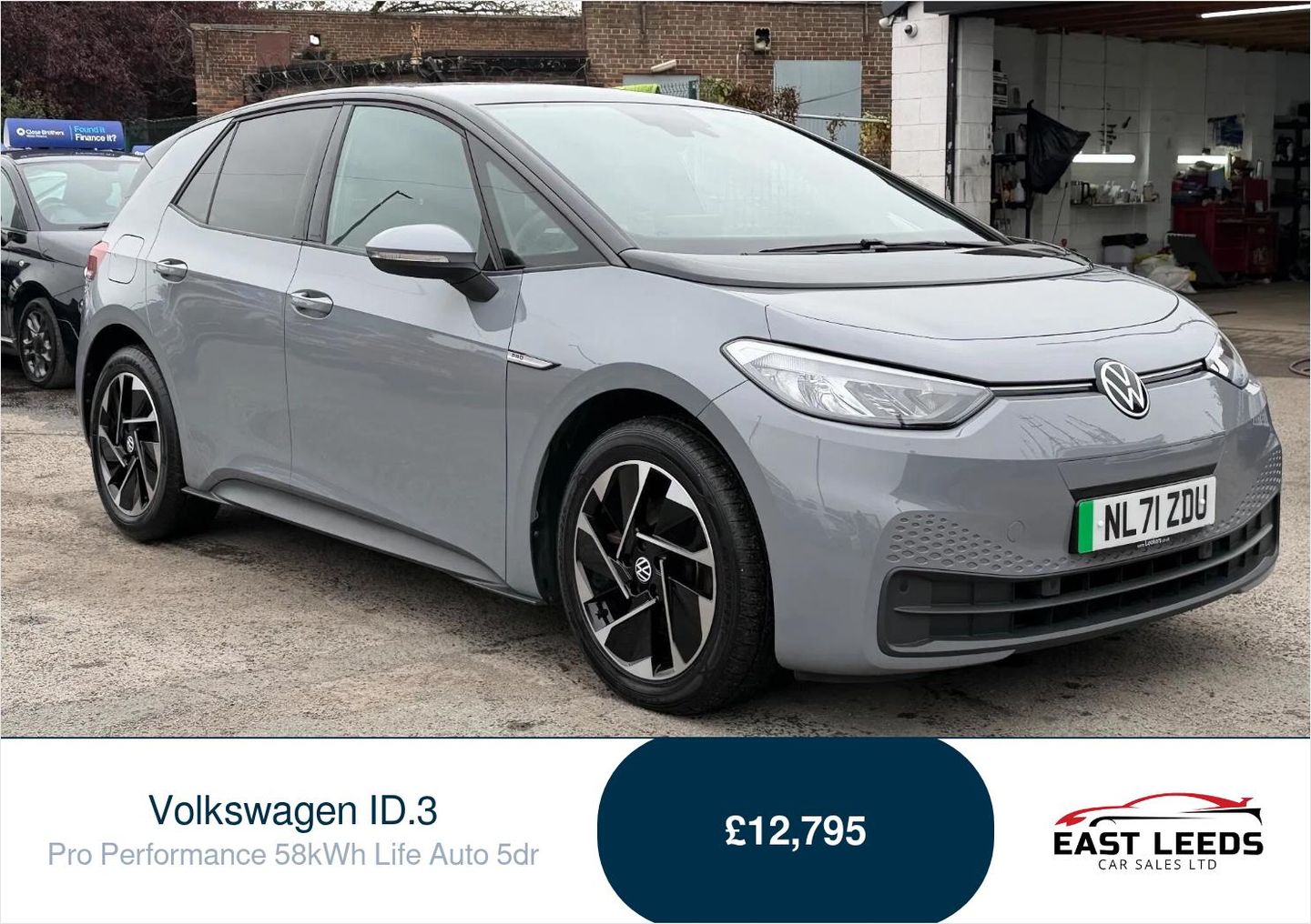 With a full service history and a recent service completed in October 2025 at 52,537 miles, this 2022 Volkswagen ID.3 Pro Performance Life is ready for its next owner. This electric vehicle boasts a 62 kWh battery, offering a maximum range of 265 miles when new. It comes equipped with a 1-Zone Climatronic system for comfortable cabin temperatures, Adaptive Cruise Control with Front Assist for safer journeys, and a Comfort Package including heated seats and steering wheel. Parking is made easier with front and rear parking sensors, and all LED headlights provide excellent visibility. The ID.3 Pro Performance Life offers impressive performance, accelerating from 0 to 62mph in just 7.3 seconds, demonstrating its dynamic capability. Its electric powertrain ensures a smooth and quiet driving experience, with a full charge at home taking approximately 9 hours and 30 minutes using a 7kW charger. For quicker top ups, public charging can achieve an 80% charge from empty in as little as 37 minutes. This model also features a large boot space, providing ample room for luggage or shopping. This vehicle is covered by a 6 month warranty. This Car Will Come Fully Valeted & Ready to Go To Its New Owner. Any Inspection Welcome, Part Exchange Welcome. ZERO Deposit Low Rate Finance Packages Are Available On This Car. 3 Months Warranty. East Leeds Car Sales has been open and trading from the same location for over 15 years. With lots of repeat customers returning to us over the years. Please give us a call with any inquiry you may have