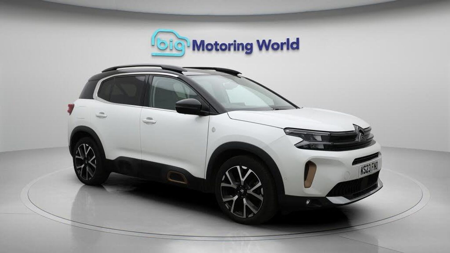 19'' Alloy wheels,Leather Seats-Our Citroen C5 Aircross comes with optional extras worth £720. Specification includes a range of fantastic features including 19'' Alloy wheels, Leather Seats, Apple CarPlay, Adaptive Cruise Control, Electric Panoramic Roof, Android Auto, Satellite Navigation, Privacy Glass, Rear View Camera, Bluetooth Specification information is supplied by CAPHPI and may vary to the actual car. This data does not form any part of a buying contact. Please check specification prior to purchase in-store. The MOT is valid until April 2026, visit bigmotoringworld.co.uk for more photos, a 360 tour, service history and a free HPI report.Were BIG on peace of mind and this White Citroen C5 Aircross has completed our comprehensive 200 point inspection and passed all checks. Its ready for you to drive away with immediate collection in-store. We include a 90-day warranty as standard plus an option to extend for up to 3 years.Reserve this car exclusively for you, safely and securely at bigmotoringworld.co.uk, with a fully refundable £99 deposit. Test drive before you buy, with no commitment, no hassle and a completely haggle free experience. Still searching and want to see thousands more cars? We are BIG on choice with over 8000 cars to choose from.Visit our award winning web site bigmotoringworld.co.uk.Were Big Motoring World and were BIG on what matters to you.