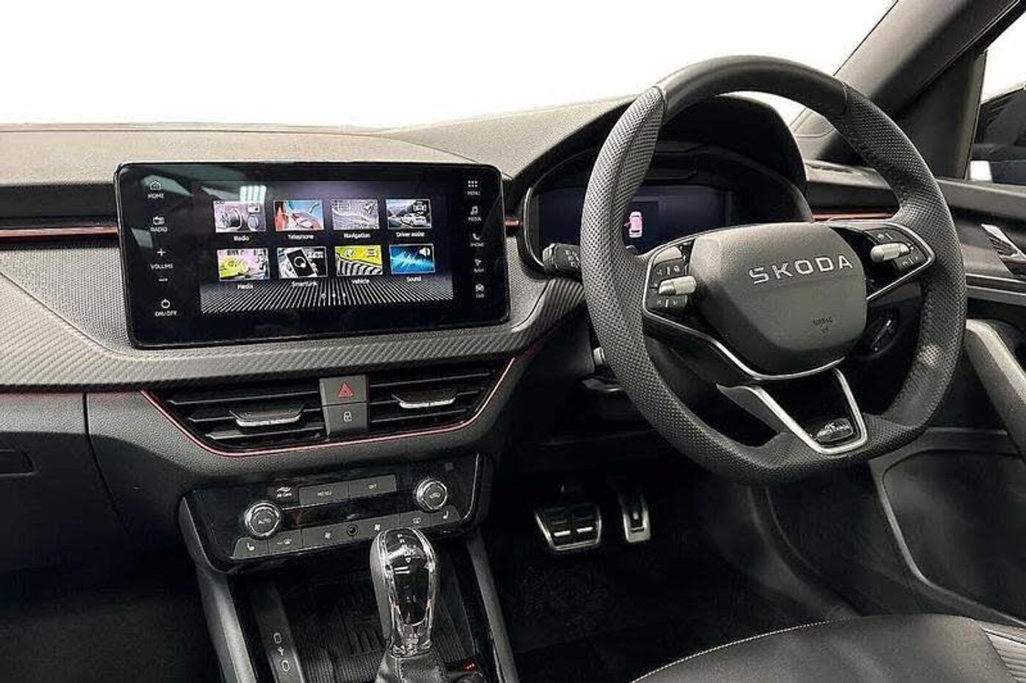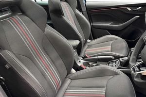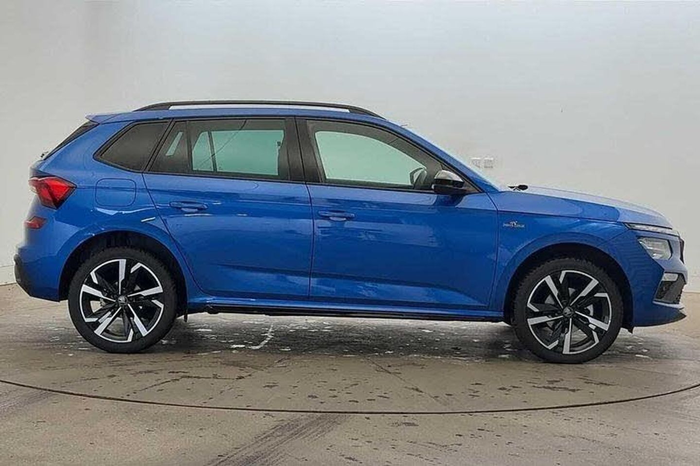 Metallic paint, Winter premium pack - Kamiq - Monte Carlo DSG, Metallic - Race blue, Monte Carlo cloth - Black + Black with white armrest stiching + Black ceiling, Extended tailgate glass, Light sensors, Rear wiper, Ticket holder inside windscreen, Black radiator grille, Black rear diffuser, Body colour bumpers, Body colour door handles, Boot lettering in black, Panoramic sunroof with black roof rails, Rear side wing doors, Automatic headlight control with coming home and leaving home feature, LED daytime running lights, LED high beam, LED low beam, LED third brake light, ESP, Extended and predictive pedestrian/cyclist protection, Hill hold control, Traction control, Front assist system, PAS, Speed limiter, Black door mirrors, 3x3 point rear seatbelts, Airbags - driver and front passenger, Front passenger airbag deactivation switch, Front side airbags with curtain airbags, Manual rear child locks, Seatbelt reminder for driver an co-driver, Tyre pressure monitor, 12V socket in luggage compartment, Art leather carbon decor inserts, Art leather carbon door inserts, Black roof lining, Chrome inner door handles, Glove compartment with illumination, Leather gearknob and handbrake lever, Monte Carlo cloth upholstery, Rake/reach adjustable steering wheel, Rear centre armrests, Red hotstamping, Umbrella in driver's door, Ambient lighting in white/red, Front and rear roof lights, Reading lights, Driver and passenger sun visors with vanity mirror, Bluetooth system, E-call, Voice control system, 4 USB C ports, 8 Speakers, 9.2 Skoda navigation display, DAB Digital radio, Service indicator, Virtual cockpit with 10.25 display, Light and view plus package - Kamiq, 3 seat bench in 2nd row, Front head restraints, Height adjustable driver seat, Height adjustable front passenger seat, ISOFIX on front passenger seat, Pocket on the back of both front seats include mobile phone pockets, Single front passenger seat, Sports seats, Anti-theft alarm system with interior monitoring, backup horn, towing protection and remote central locking with SAFE system, Anti-theft wheel bolts, Electronic engine immobilizer, 18 Ursa black diamond cut alloy wheels, [Audio and Communications]Wireless smartlink, [Drivers Assistance]Advanced driver attention and drowsiness monitor, Rear parking sensors, Rear view camera, Traffic sign recognition, [Exterior]Front and rear electric windows, Heated rear window, Privacy glass, Black roof spoiler, Monte carlo plaque, [Interior]Manual leather parking brake, Auto dimming rear view mirror, Textile floor mats, Dual zone climate control, Inner circulation control with pollen filter, Aluminium pedals, Cargo elements, Front centre armrest, Ice scraper, Net package and top tether hooks in boot space, Net under rear shelf, Manual lumbar support for front seats, Third rear headrest, [Safety and Security]Disc brakes, One tone horn, Isofix preparation for back seats, Top tether for front passenger seat