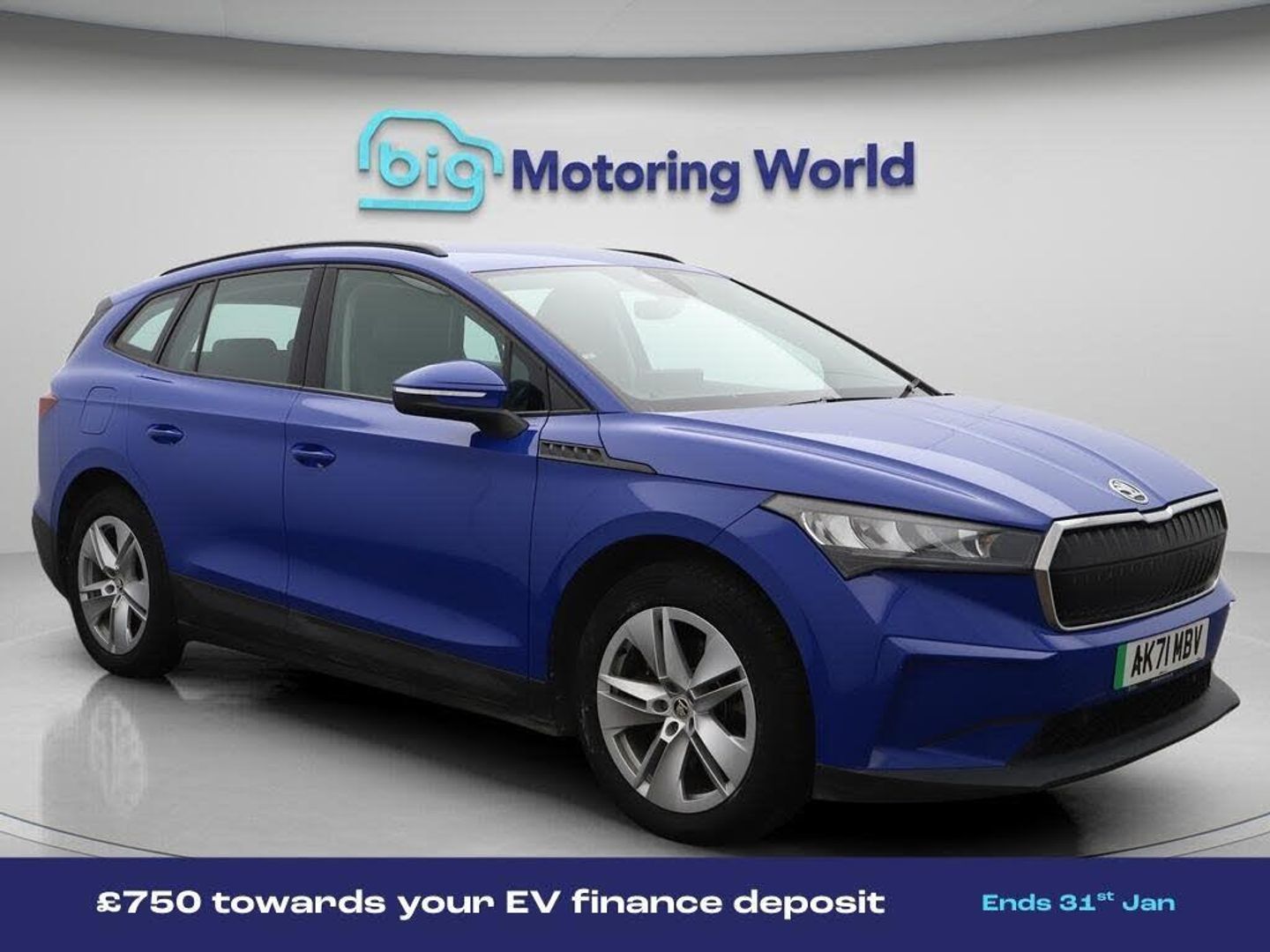 £750 towards your finance depo-Our Skoda Enyaq is finished in Blue. Specification includes a range of fantastic features including £750 towards your finance deposit, Part Leather Seats, Apple CarPlay, Cooled Glovebox, Android Auto, Satellite Navigation, Gesture Control, Bluetooth, Parking Sensors, Ambient Lighting Specification information is supplied by CAPHPI and may vary to the actual car. This data does not form any part of a buying contact. Please check specification prior to purchase in-store. The MOT is valid until October 2026, visit bigmotoringworld.co.uk for more photos, a 360 tour, service history and a free HPI report.Were BIG on peace of mind and this Blue Skoda Enyaq has completed our comprehensive 200 point inspection and passed all checks. Its ready for you to drive away with immediate collection in-store. We include a 90-day warranty as standard plus an option to extend for up to 3 years.Reserve this car exclusively for you, safely and securely at bigmotoringworld.co.uk, with a fully refundable £99 deposit. Test drive before you buy, with no commitment, no hassle and a completely haggle free experience. Still searching and want to see thousands more cars? We are BIG on choice with over 8000 cars to choose from.Visit our award winning web site bigmotoringworld.co.uk.Were Big Motoring World and were BIG on what matters to you.