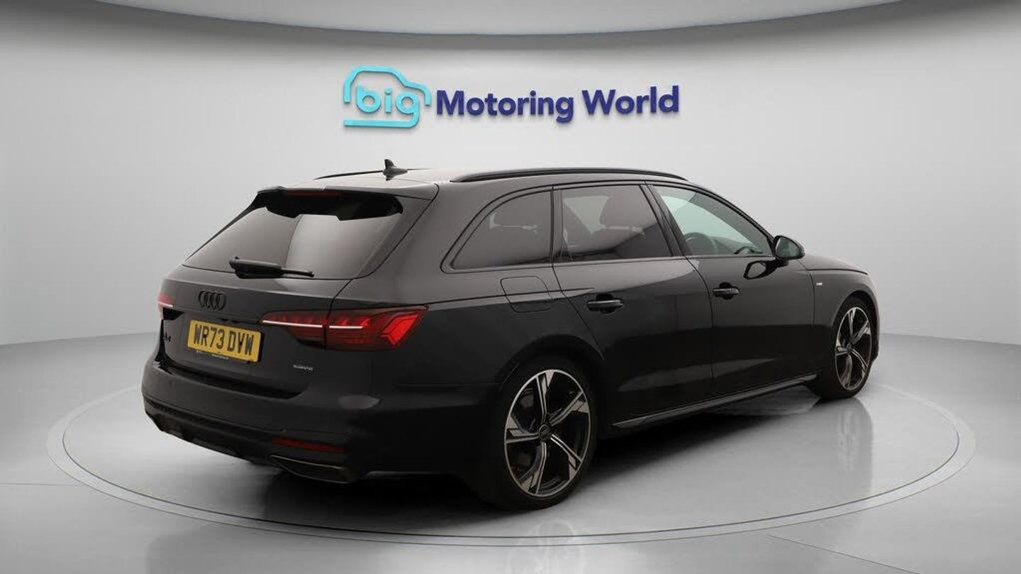 All Wheel Drive,Part Leather S-Our Audi A4 Avant is finished in Black. Specification includes a range of fantastic features including All Wheel Drive, Part Leather Seats, Apple CarPlay, Bang & Olufsen Speakers, Lane Assist, S Line Body Styling, Android Auto, Satellite Navigation, Privacy Glass, Heated Seats Specification information is supplied by CAPHPI and may vary to the actual car. This data does not form any part of a buying contact. Please check specification prior to purchase in-store. The MOT is valid until October 2026, visit bigmotoringworld.co.uk for more photos, a 360 tour, service history and a free HPI report.Were BIG on peace of mind and this Black Audi A4 Avant has completed our comprehensive 200 point inspection and passed all checks. Its ready for you to drive away with immediate collection in-store. We include a 90-day warranty as standard plus an option to extend for up to 3 years.Reserve this car exclusively for you, safely and securely at bigmotoringworld.co.uk, with a fully refundable £99 deposit. Test drive before you buy, with no commitment, no hassle and a completely haggle free experience. Still searching and want to see thousands more cars? We are BIG on choice with over 8000 cars to choose from.Visit our award winning web site bigmotoringworld.co.uk.Were Big Motoring World and were BIG on what matters to you.