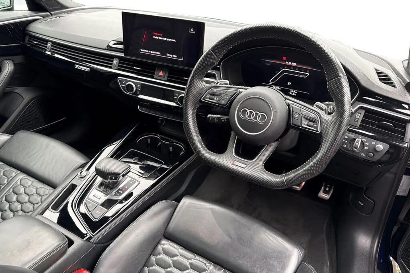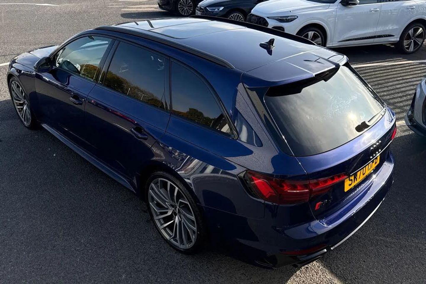 Advanced Safety, Panoramic / Sunroof, Alloys, Lane Assist, Park Assist, Cruise Control;Here at Carlisle Audi, we are pleased to offer Audi RS 4 Avant Vorsprung 450 PS tiptronic in Navarra Blue. This impressive estate car boasts a powerful 2.9 litre petrol engine and a four wheel drive drivetrain, ensuring excellent performance and handling, and meeting Euro 6 emission standards. The Vorsprung trim level comes equipped with a host of desirable features, including a Bluetooth interface, automatic headlights and rain sensing wipers, and the Comfort and Sound Package which offers keyless entry, Bang & Olufsen sound system, and 360 degree parking assistance. The RS4 Avant TFSI V6 Vorsprung truly excels in its performance capabilities, accelerating from 0 to 62 miles per hour in a remarkable 4.1 seconds. This rapid acceleration highlights its superior performance compared to many other vehicles in its class. Further enhancing the driving experience are the advanced Matrix LED headlights with dynamic front and rear indicators, complemented by LED rear lights. For convenience, it includes the Audi Phone Box with wireless charging, ensuring your devices stay powered up on the go. ?This vehicle is compliant with the Clean Air Zone (CAZ) or Ultra Low Emission Zone (ULEZ) standards! Not only will it help you avoid penalties and fines when traveling in the city, but it also means you'll be doing your bit to help reduce emissions. With compliance standards becoming increasingly strict, making sure your car is up to scratch is more important than ever.